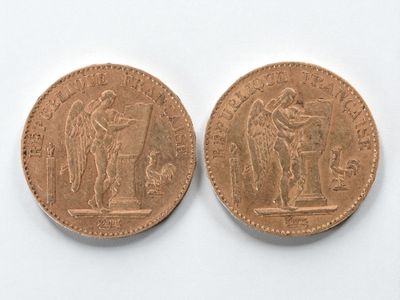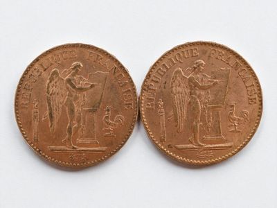 Two 20 franc gold Napoleon III head, 1864 and 1868.