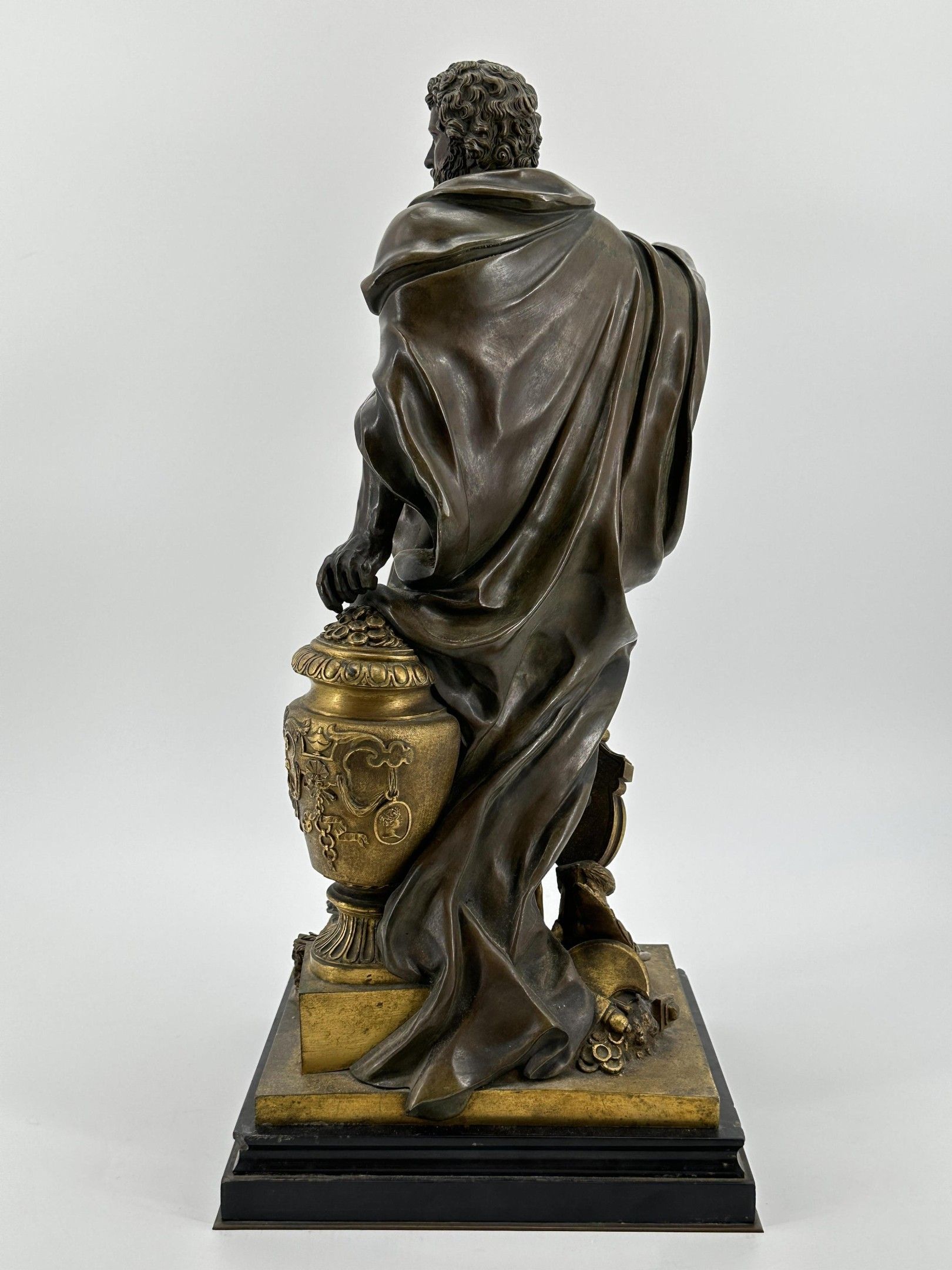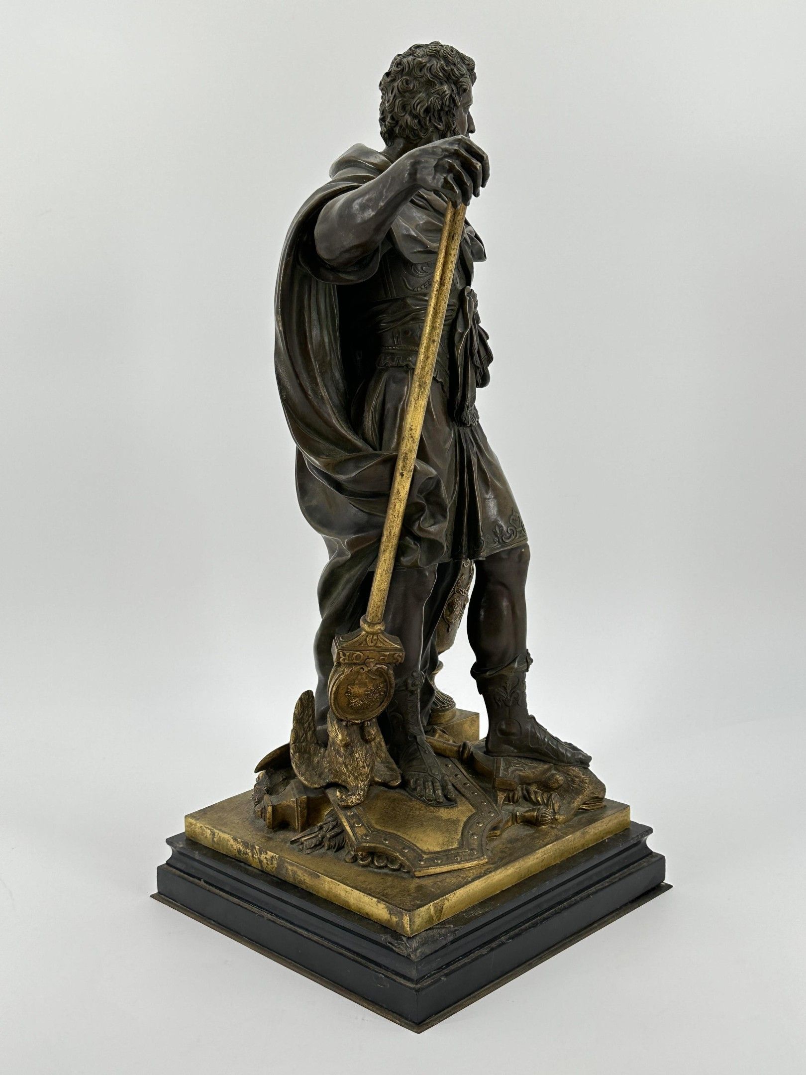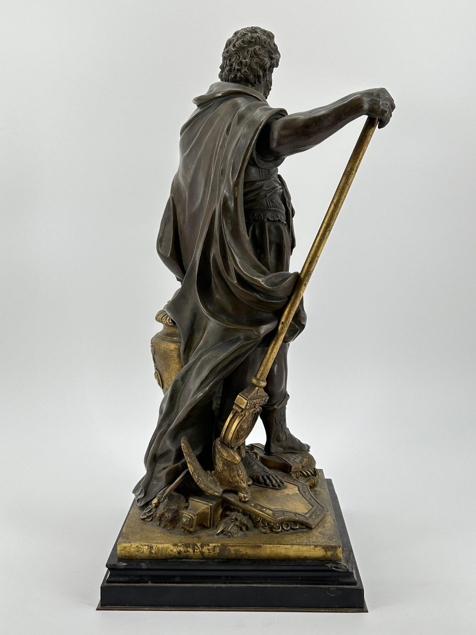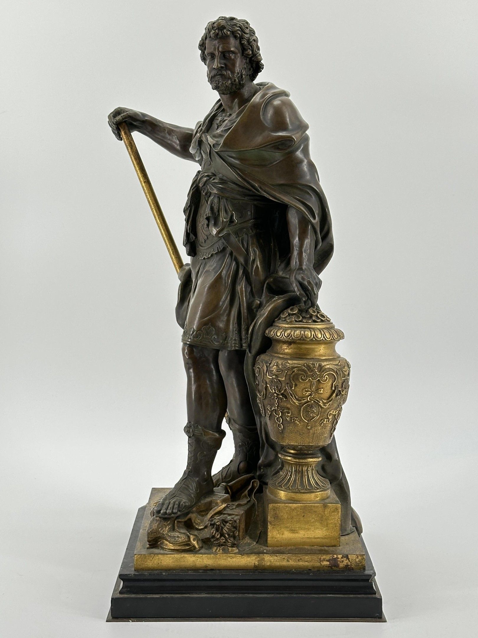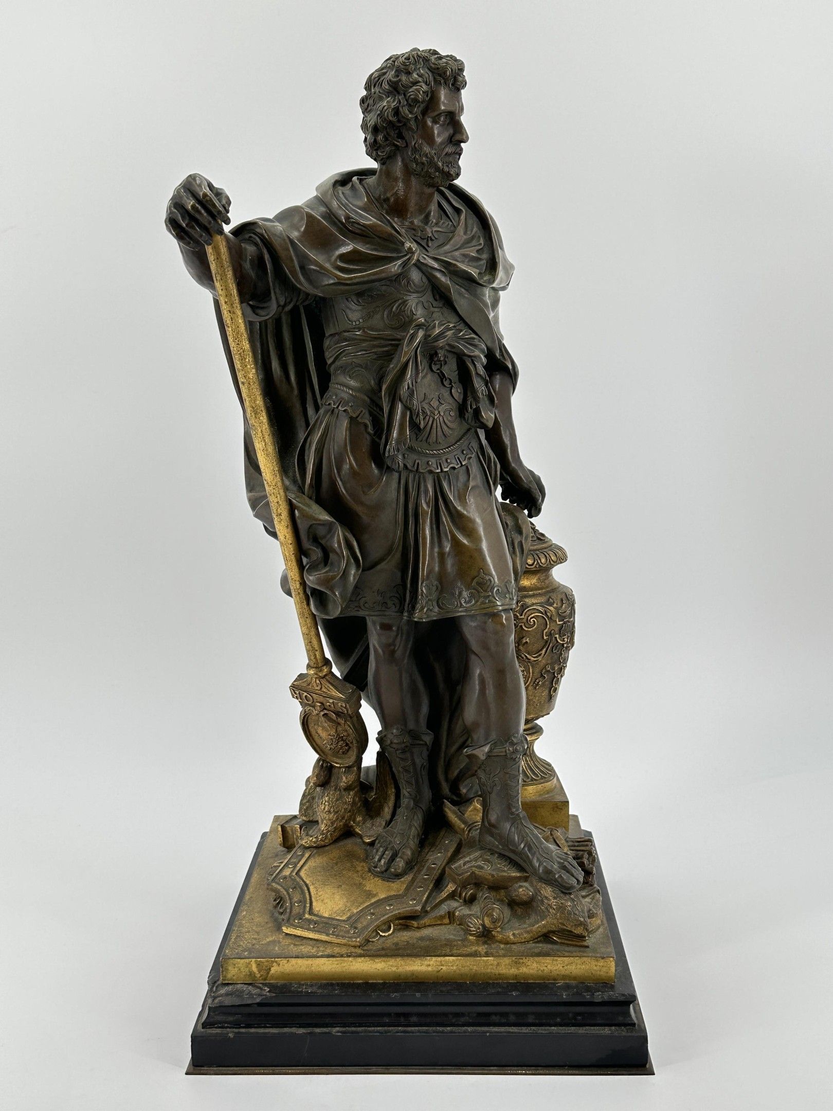 Sebastian SLODTZ (1655-1725). After . Hannibal counting the rings of the Roman warriors killed at the battle of Cannae. Evocation of the famous battle of 216 BC. Bronze sculpture with brown and gilded patina. Height: 53 cm. Total height: 59 cm.