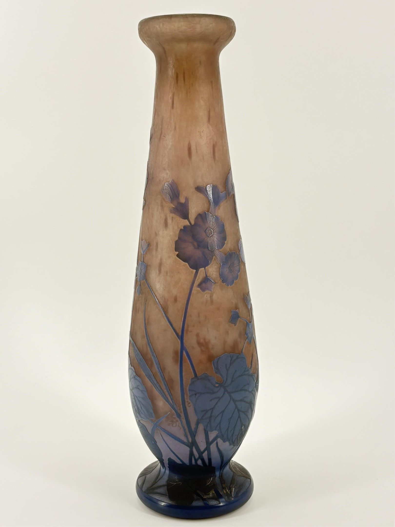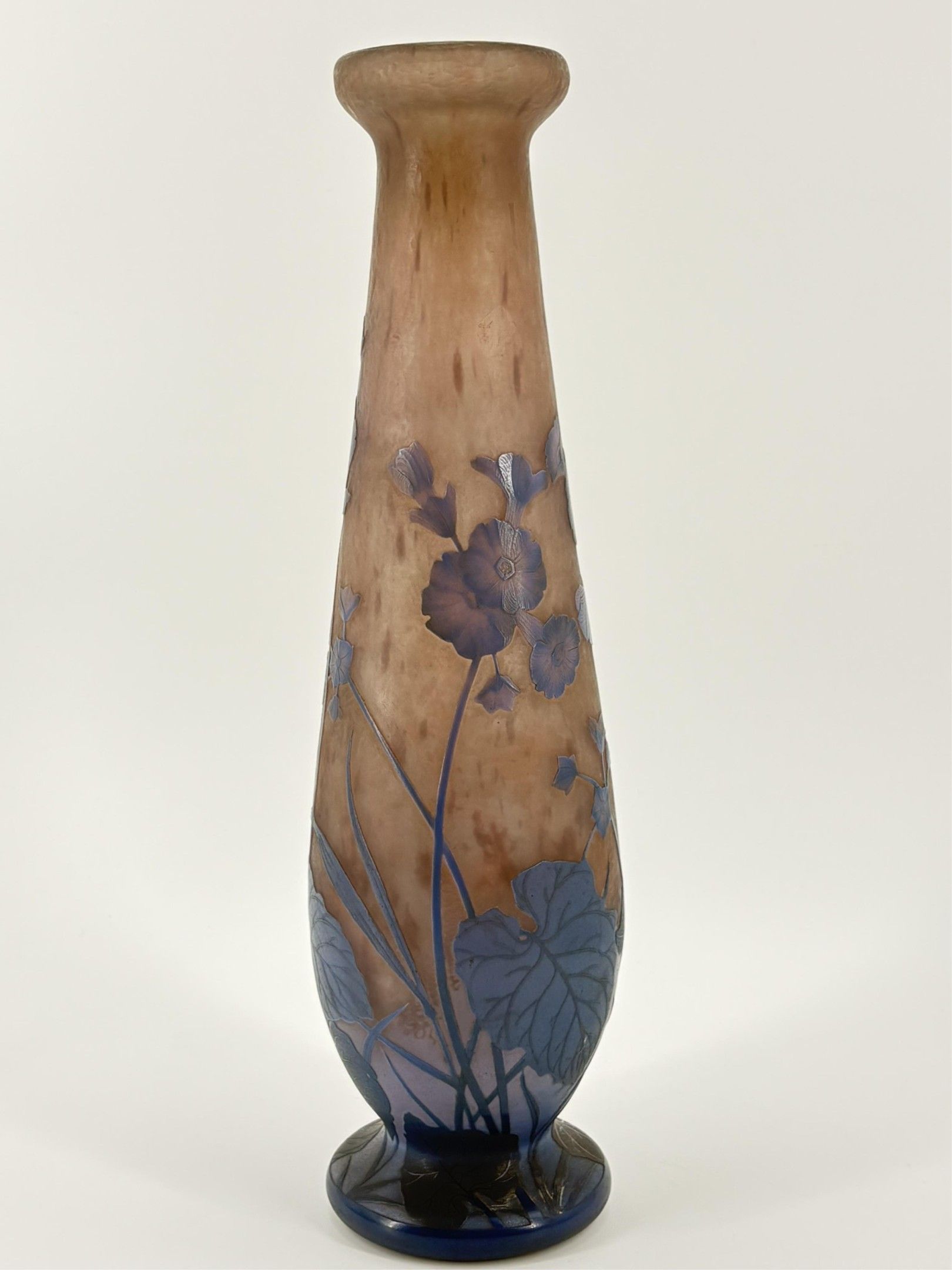 Antonin DAUM (1864-1930). Art Nouveau vase in multi-layered glass with plant decoration. Height: 45 cm.