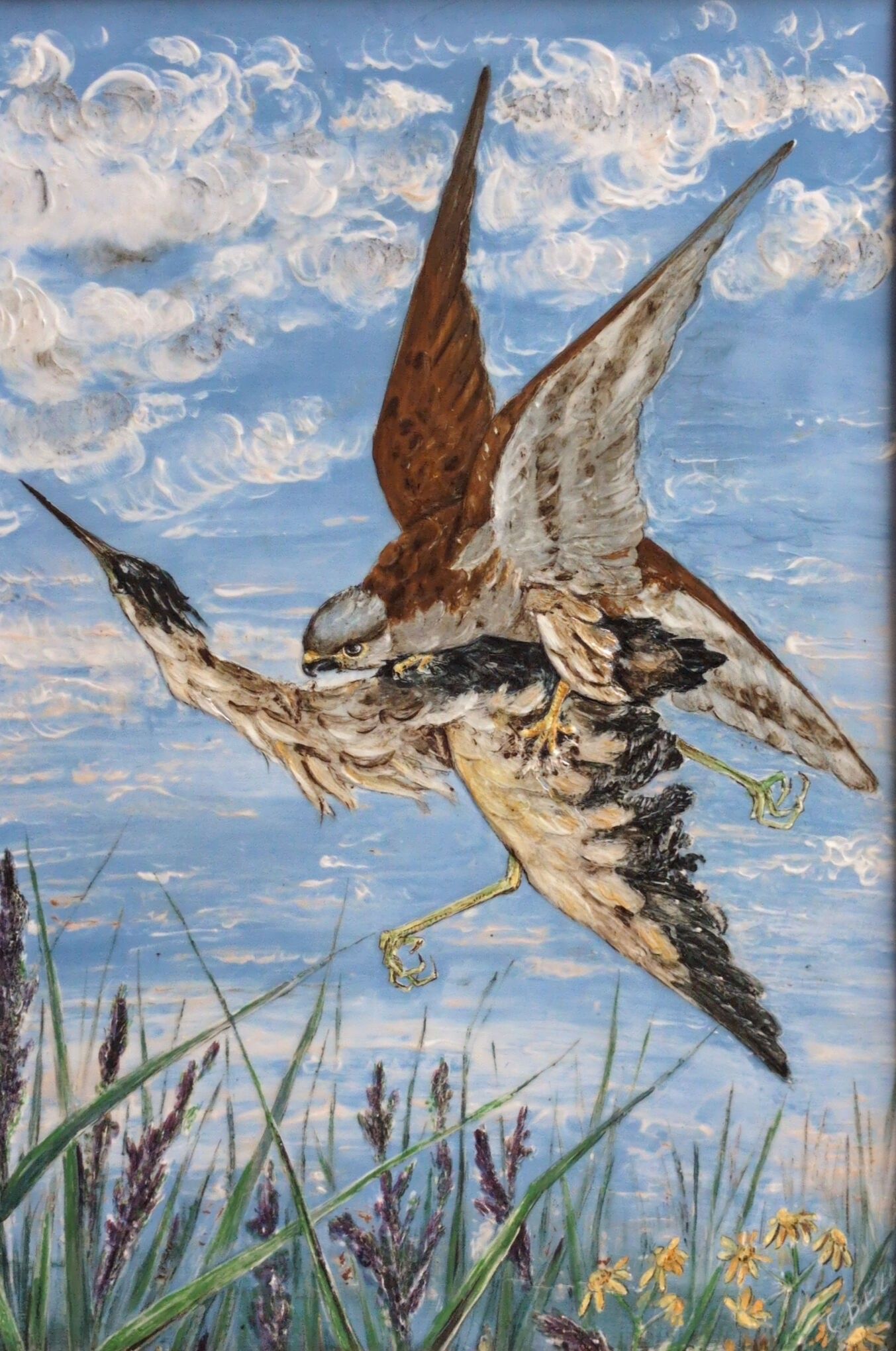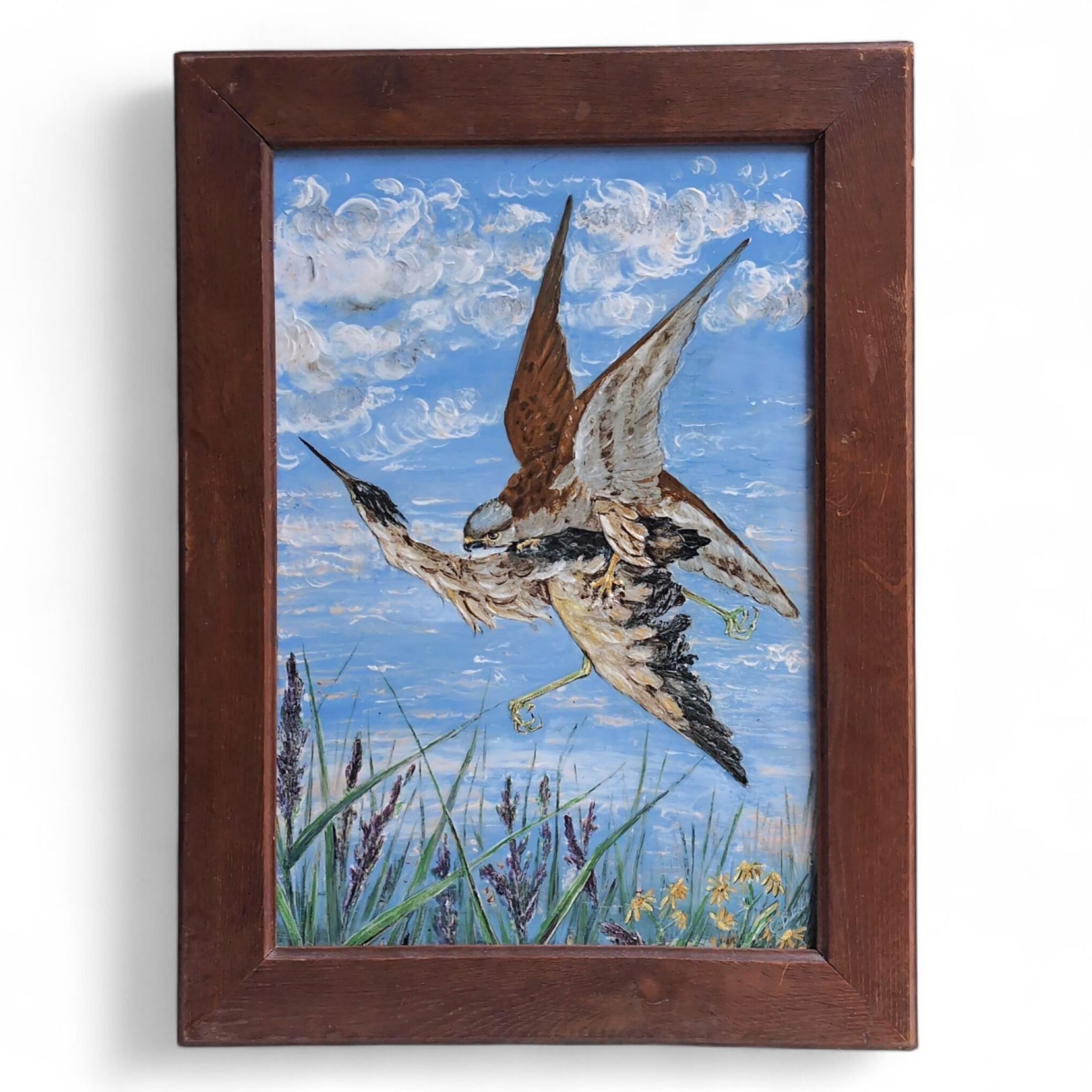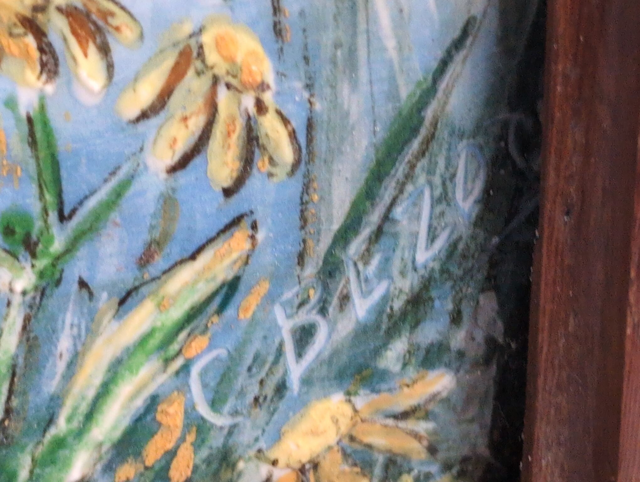 Large rectangular earthenware plaque with polychrome decoration, monogrammed on the reverse