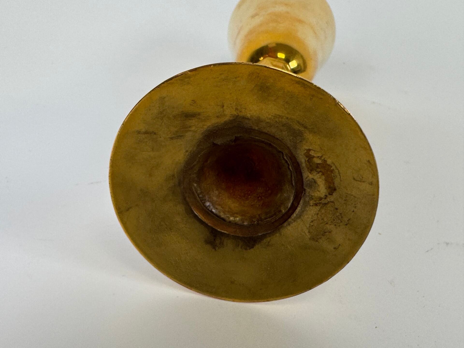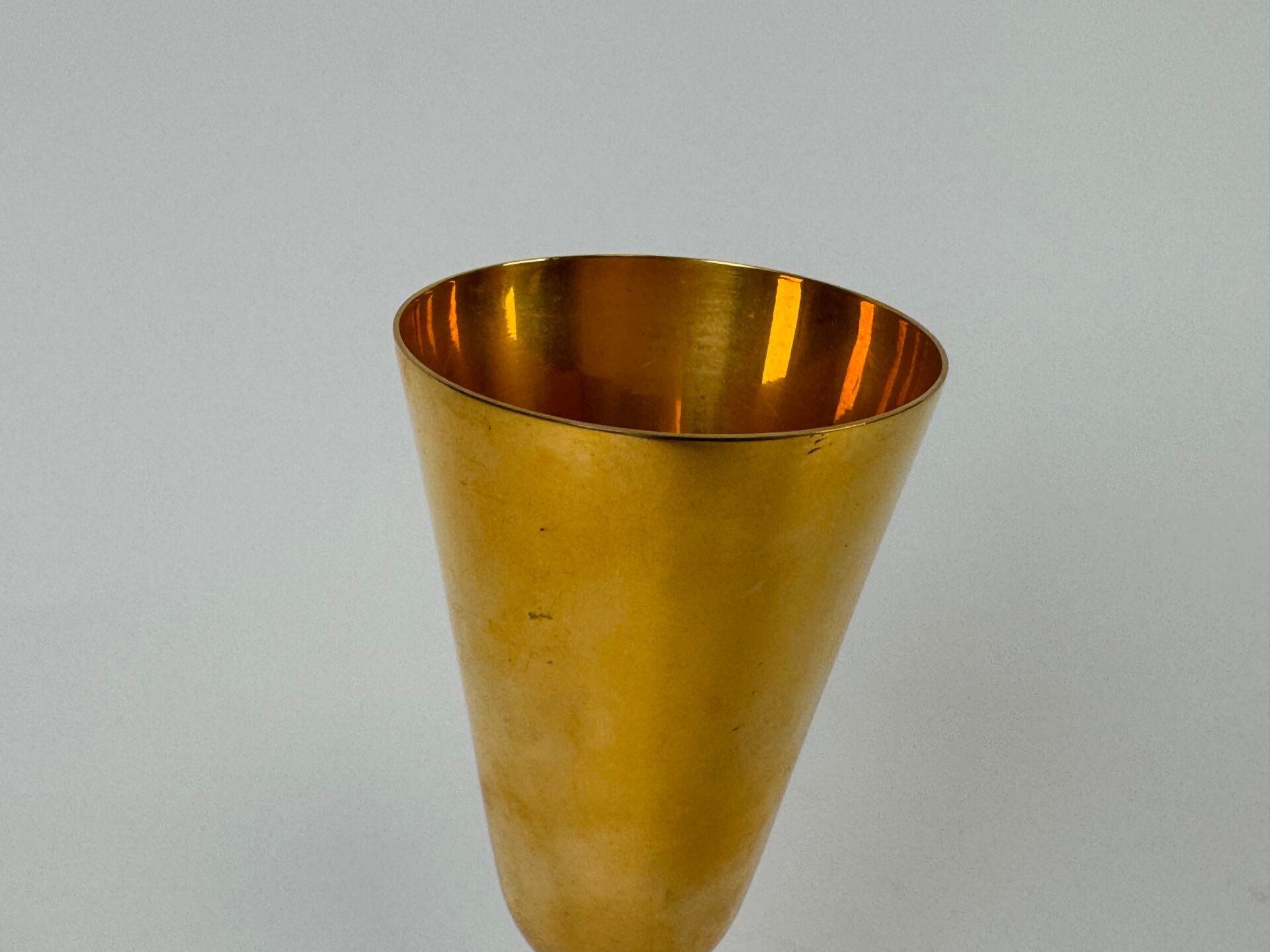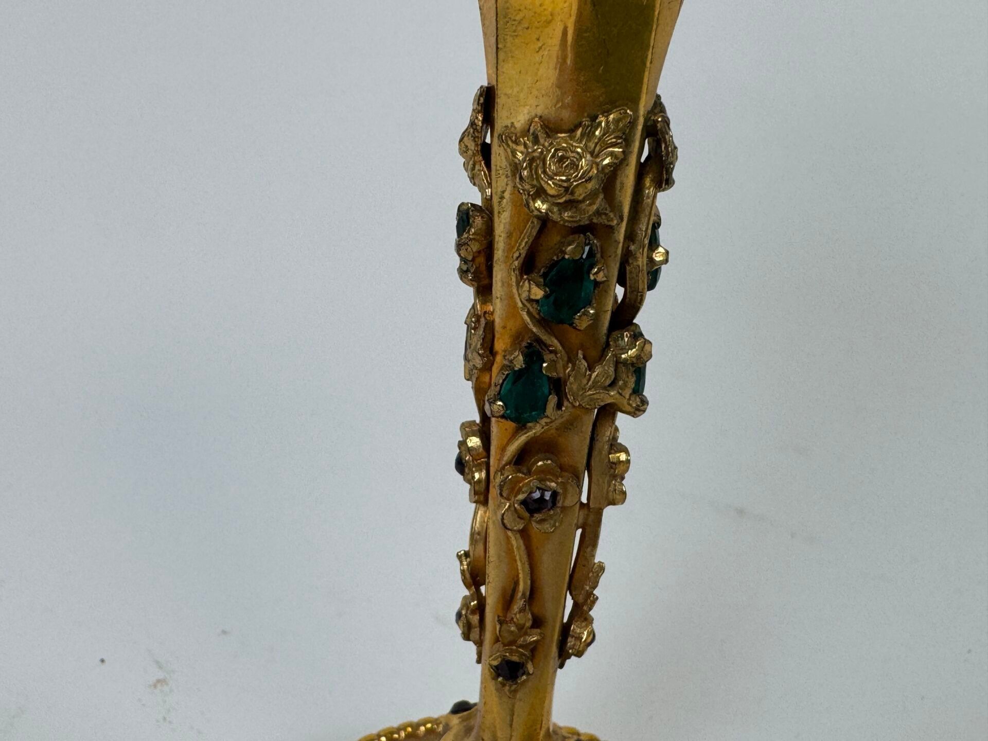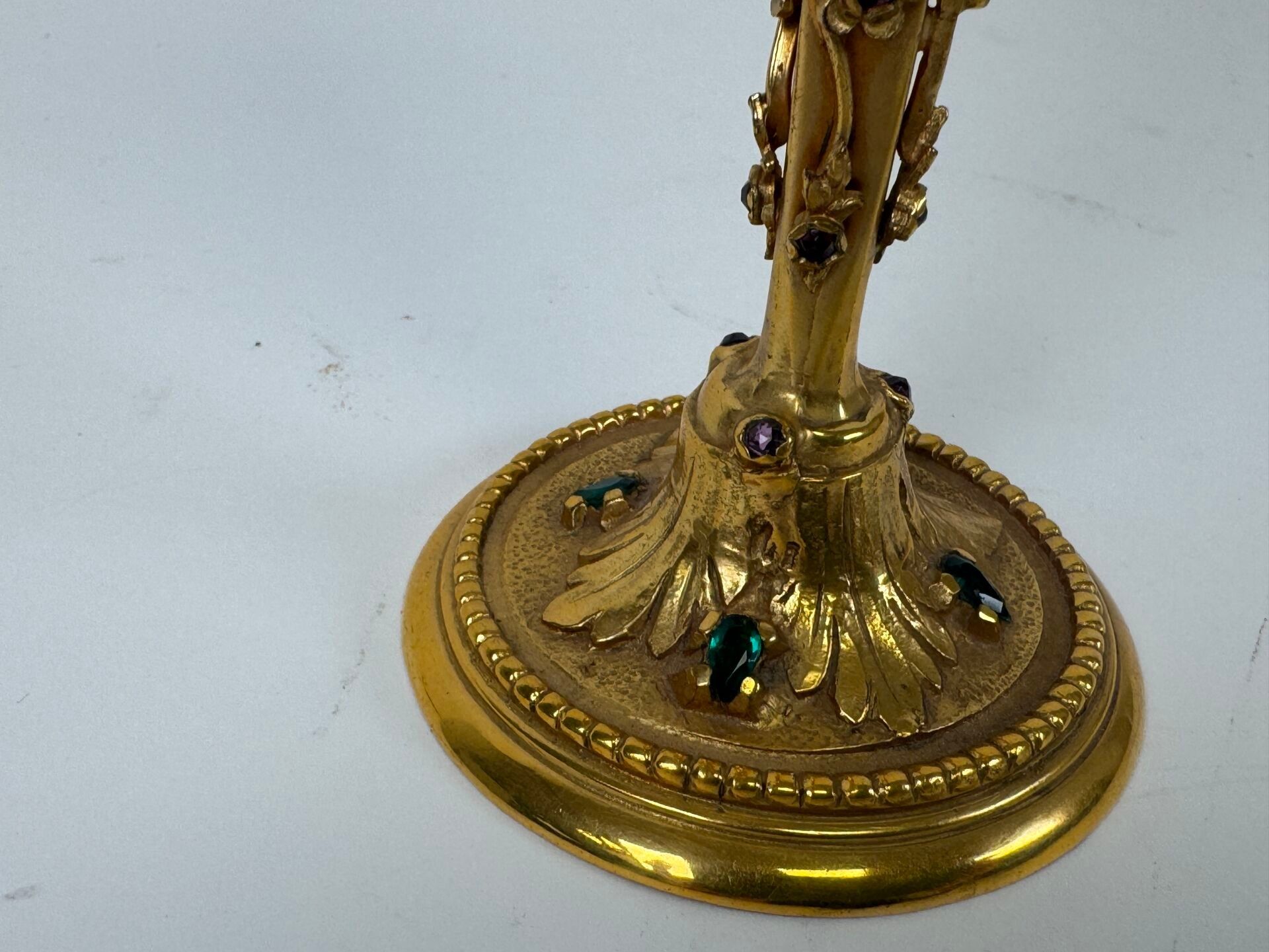 An ormolu champagne flute, the foot decorated with coloured stones and stylised flowers, the circular base with a row of pearls.