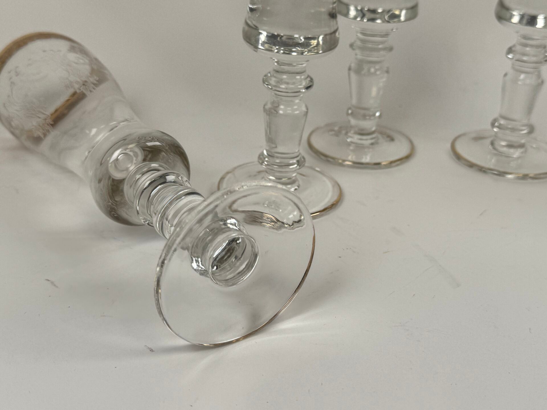 Suite of 6 champagne flutes in chased and gilded glass with …