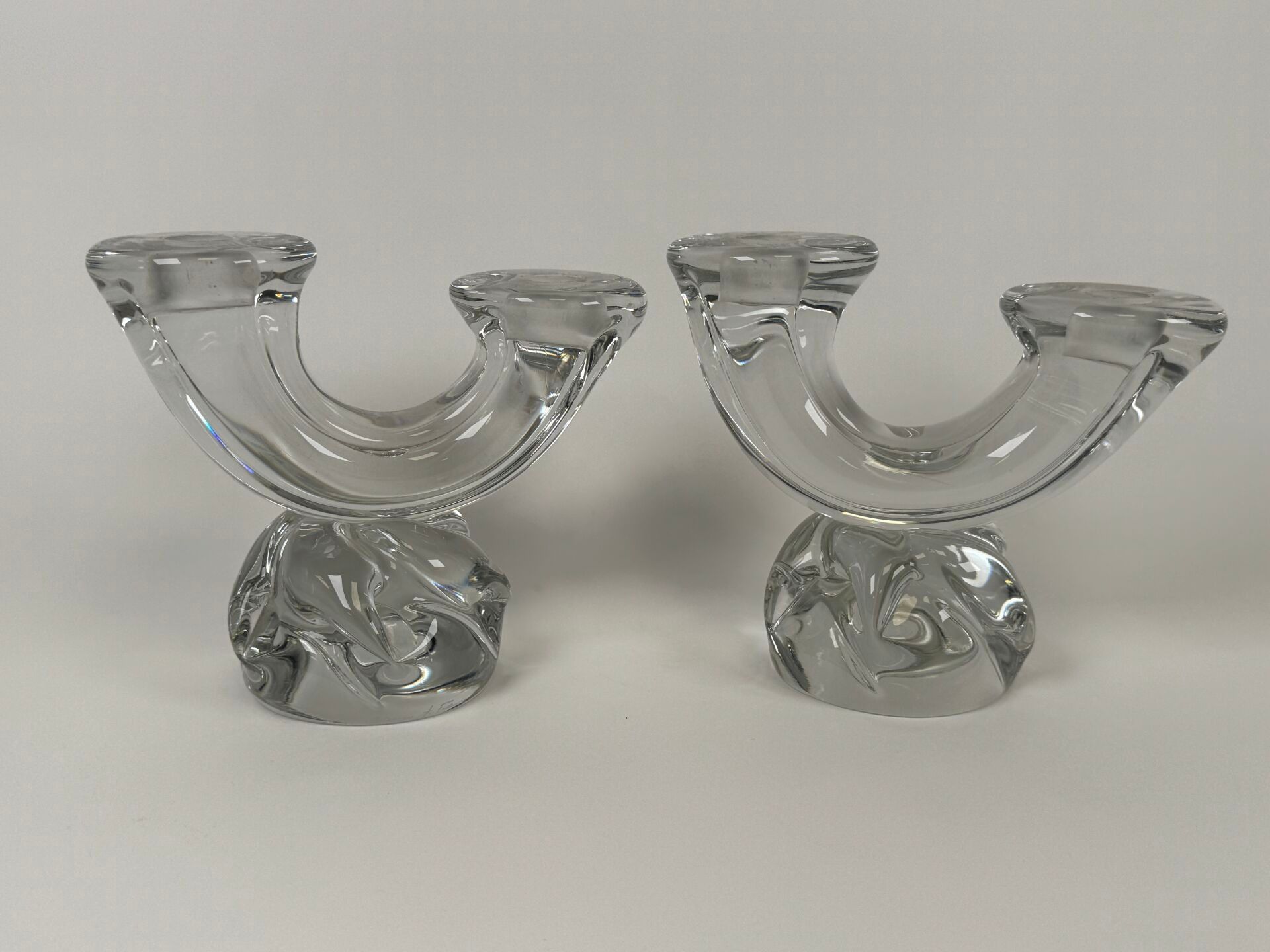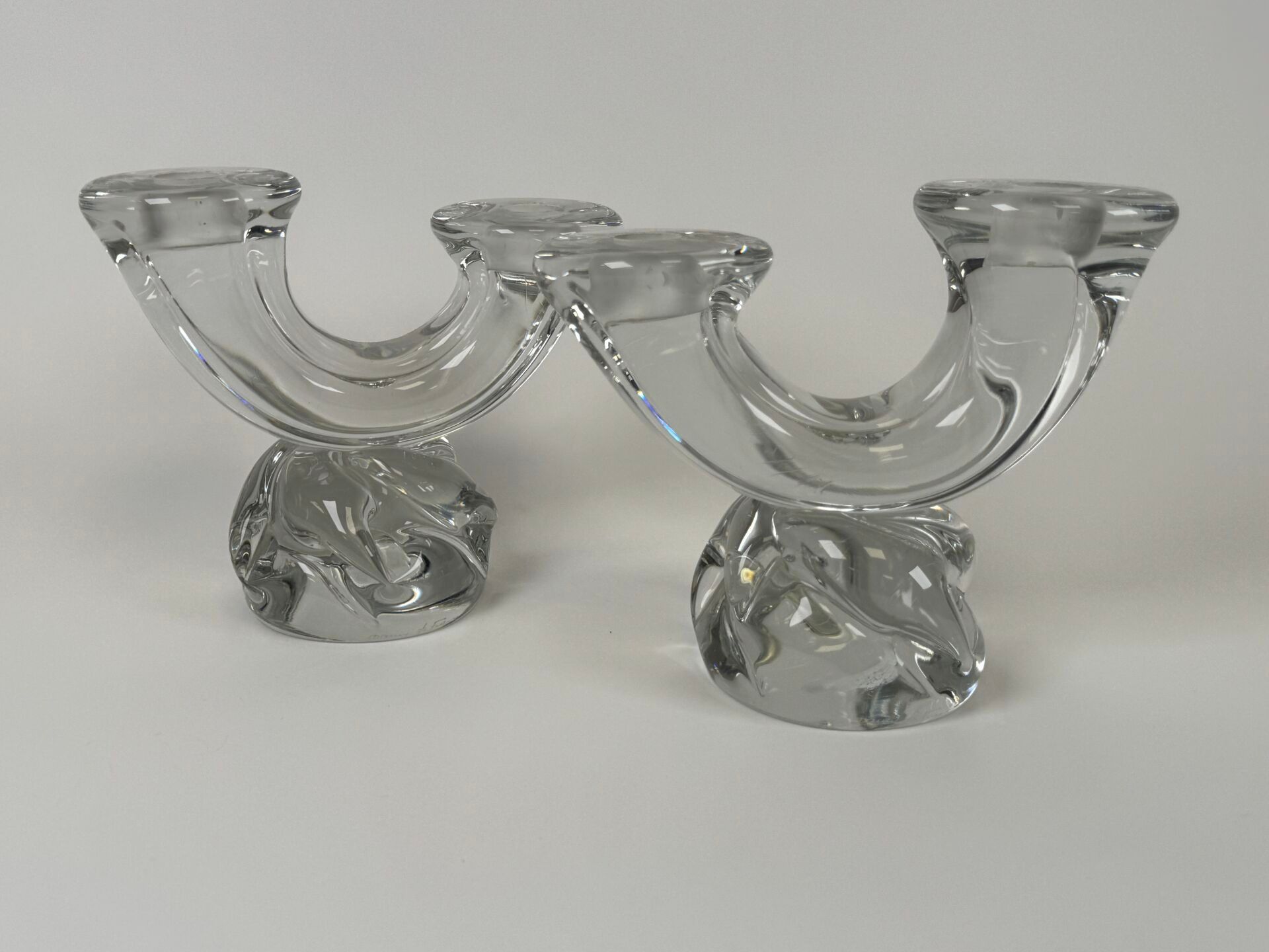 DAUM France. Pair of two-light candlesticks in moulded and p…