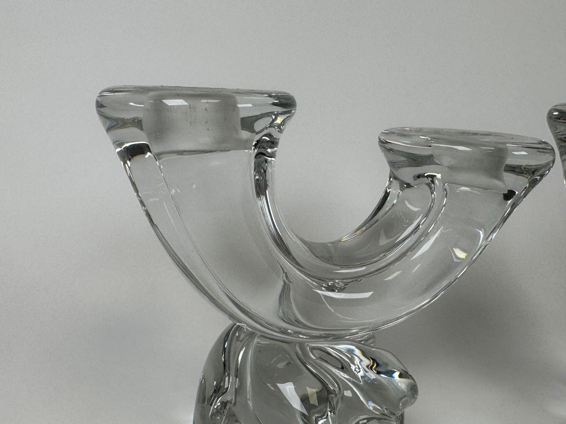 Pair of two-light candlesticks in moulded and pressed crystal.
