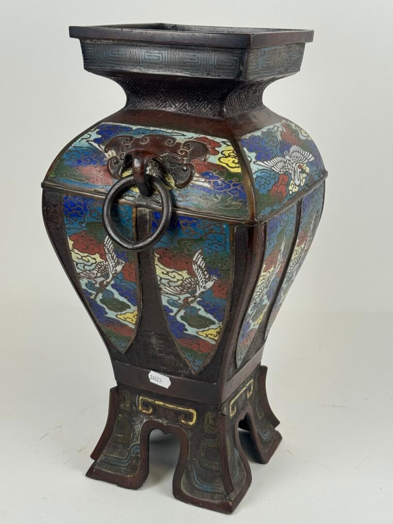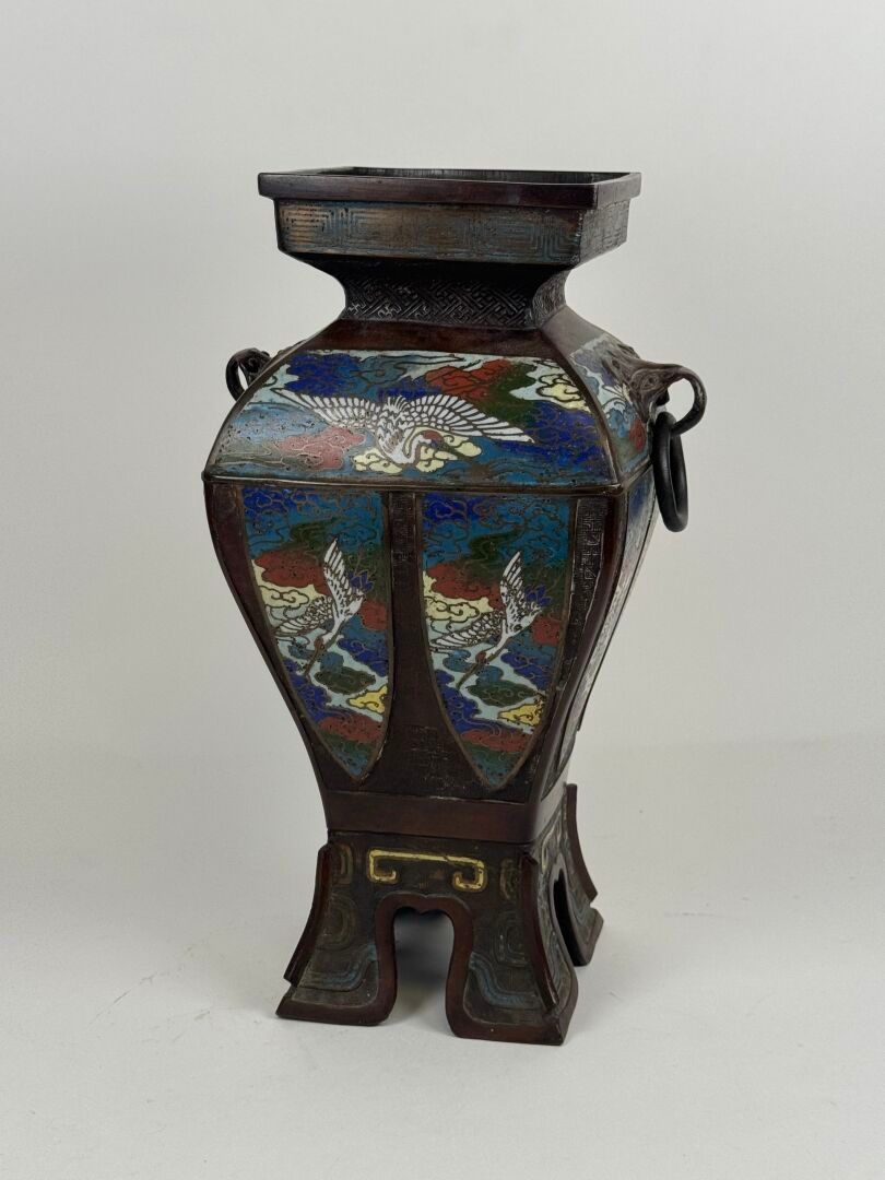 JAPAN, circa 1900. A large cloisonné bronze vase with two op…