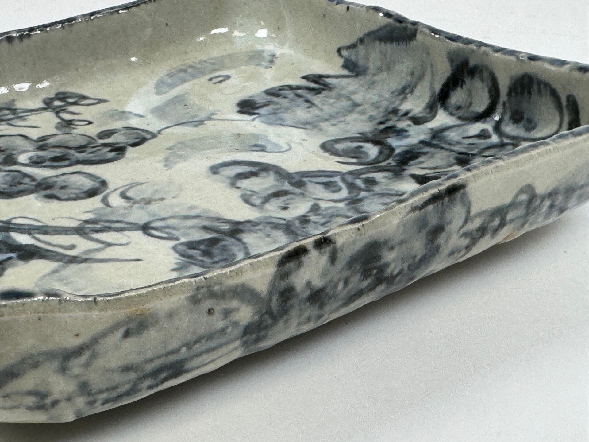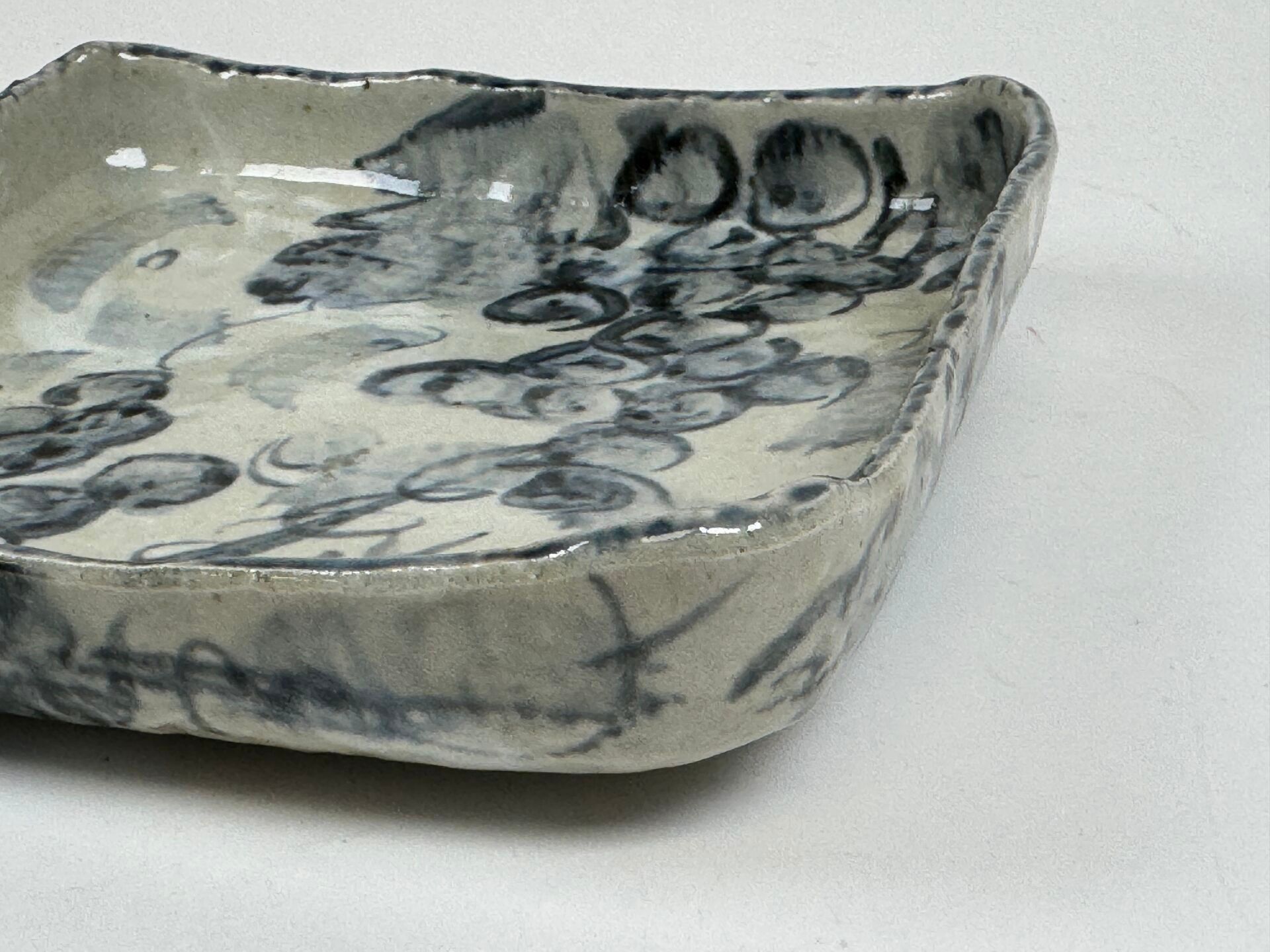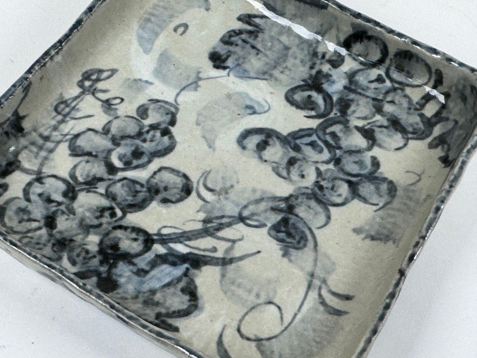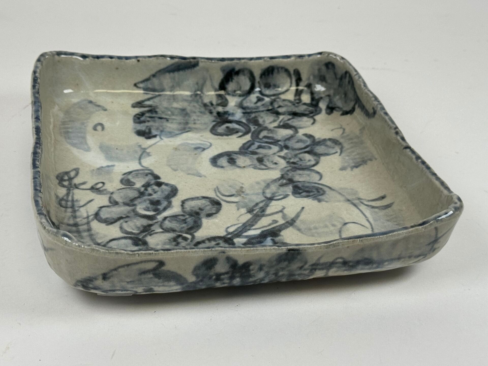 Square dish in polychrome porcelain.