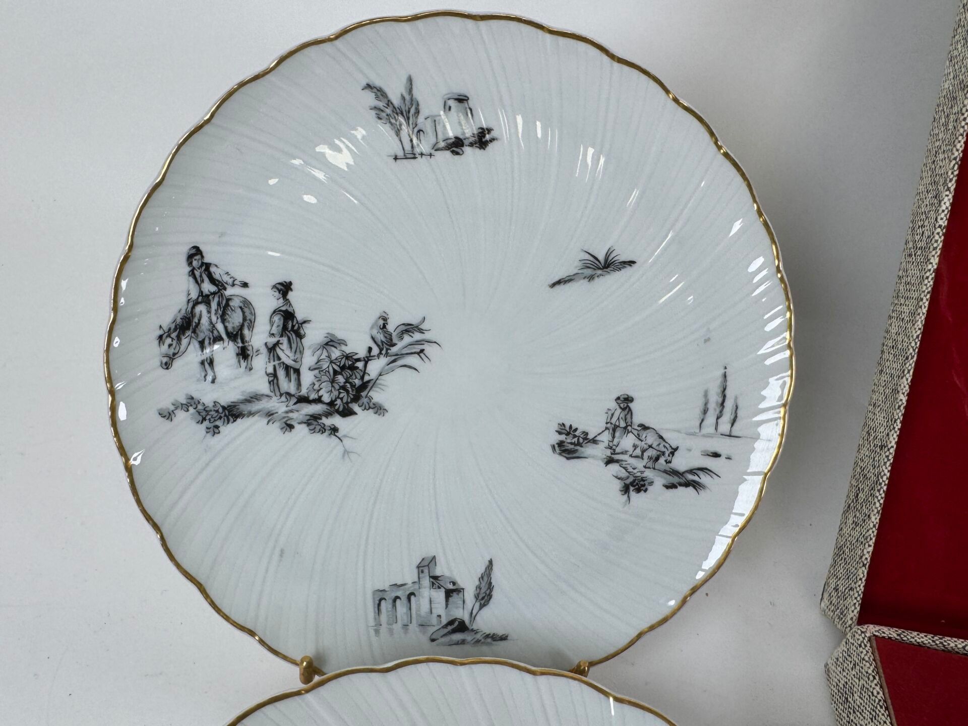 Part of a polychrome porcelain dessert service decorated with figures comprising :