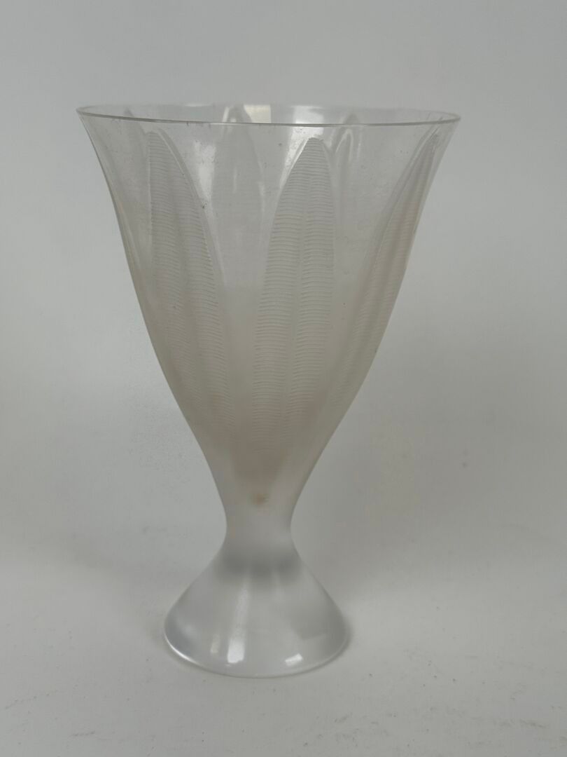 Moulded and pressed crystal vase, partially frosted, with foliage decoration.