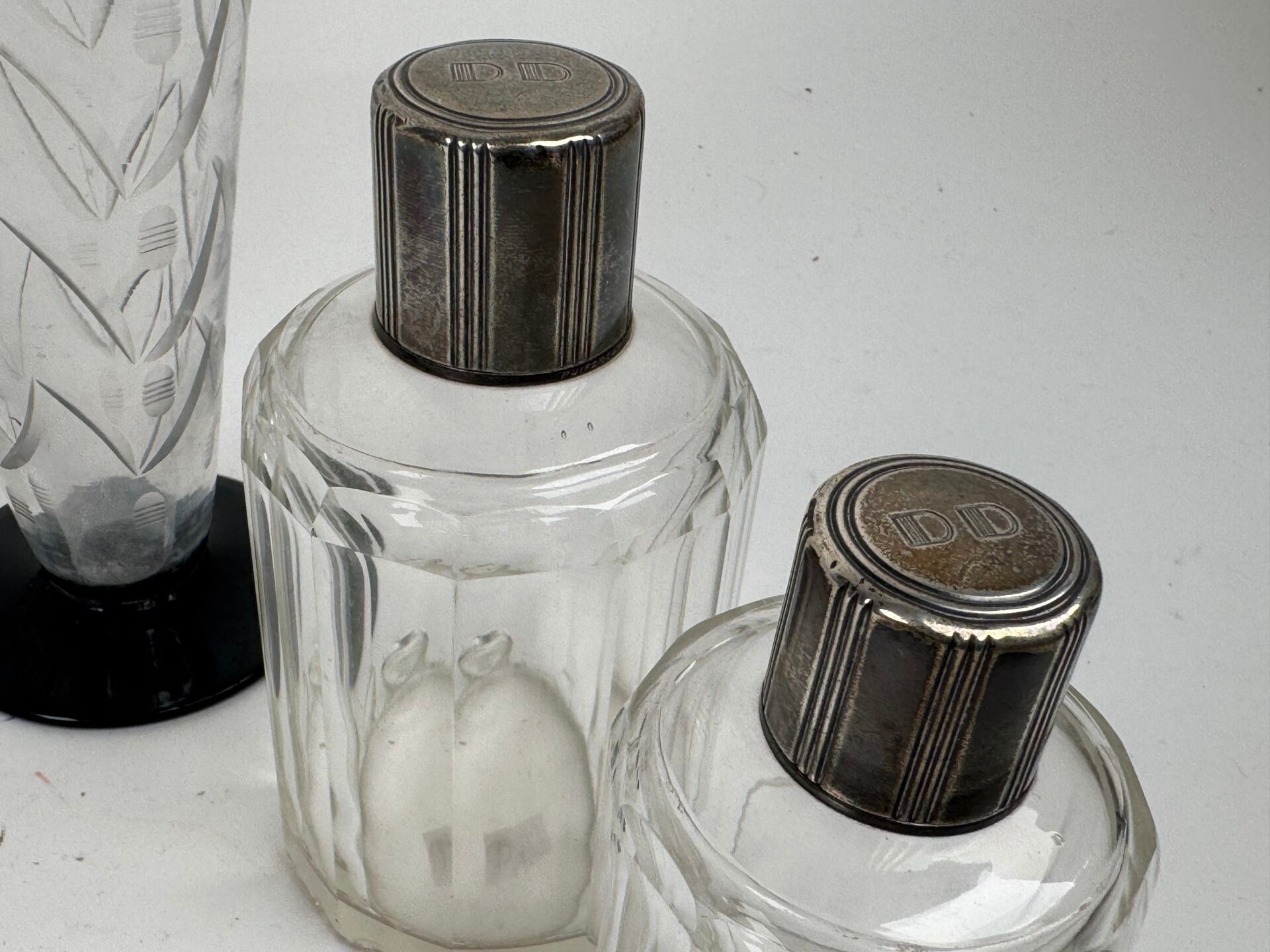 Two flasks, the mountings in silver 950/1000, Minerve hallmark.