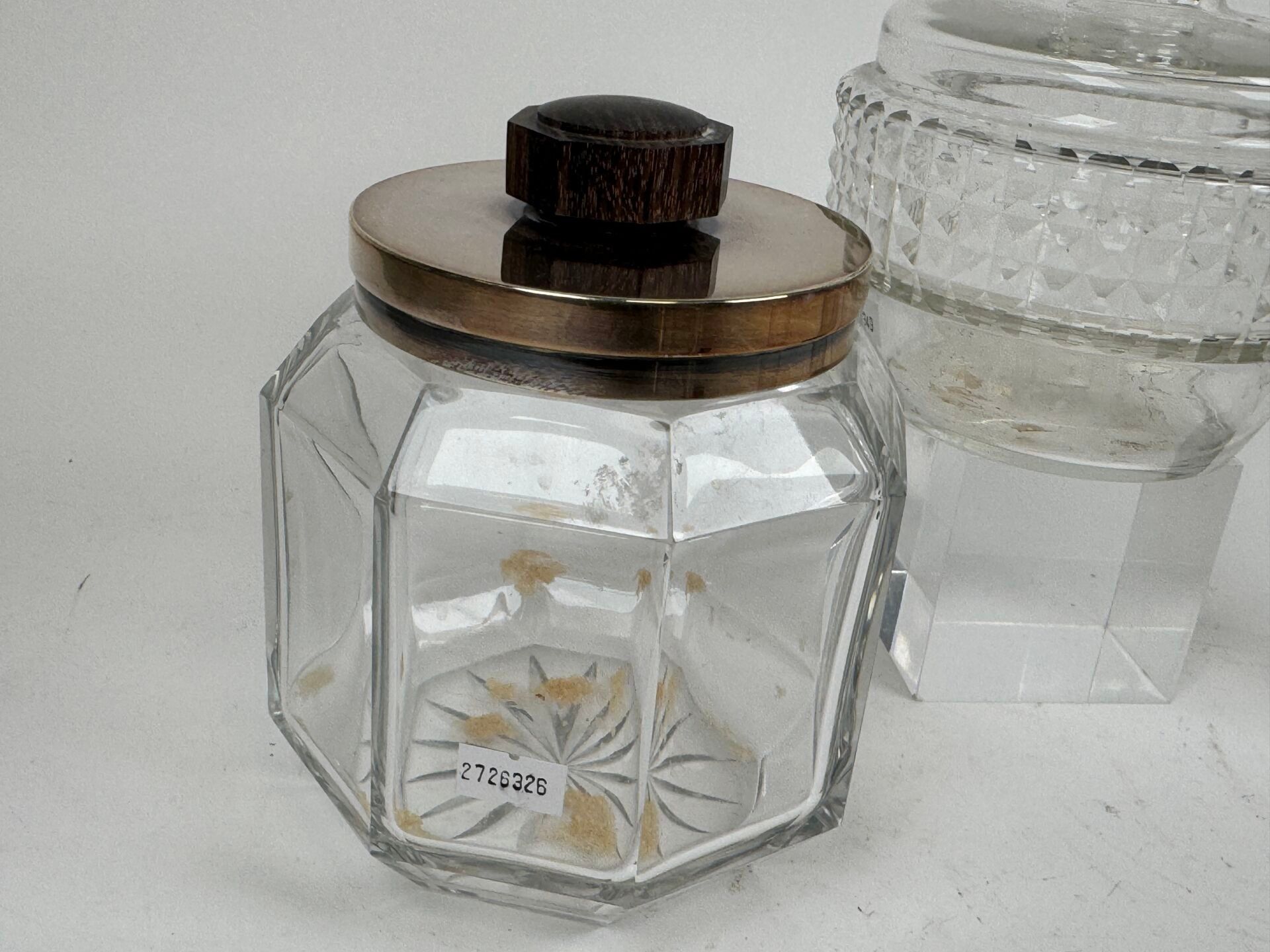 - a jar, the lid in silver plated metal, the handle in exotic wood.