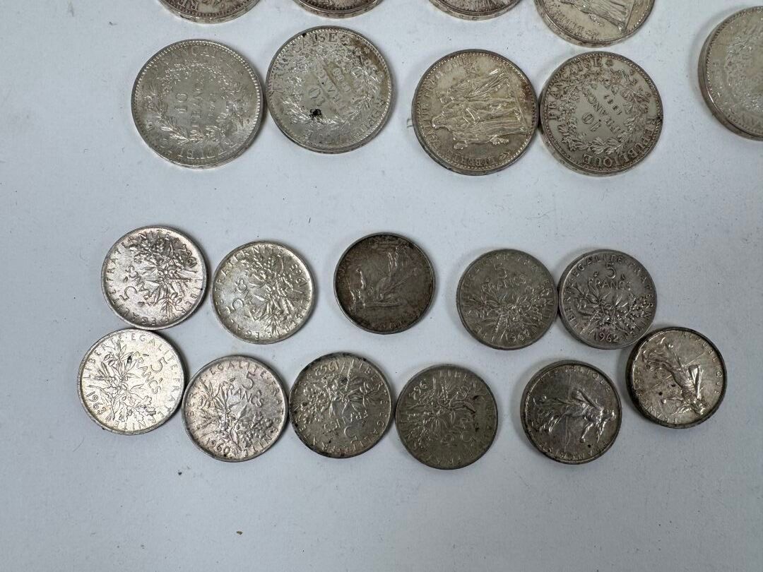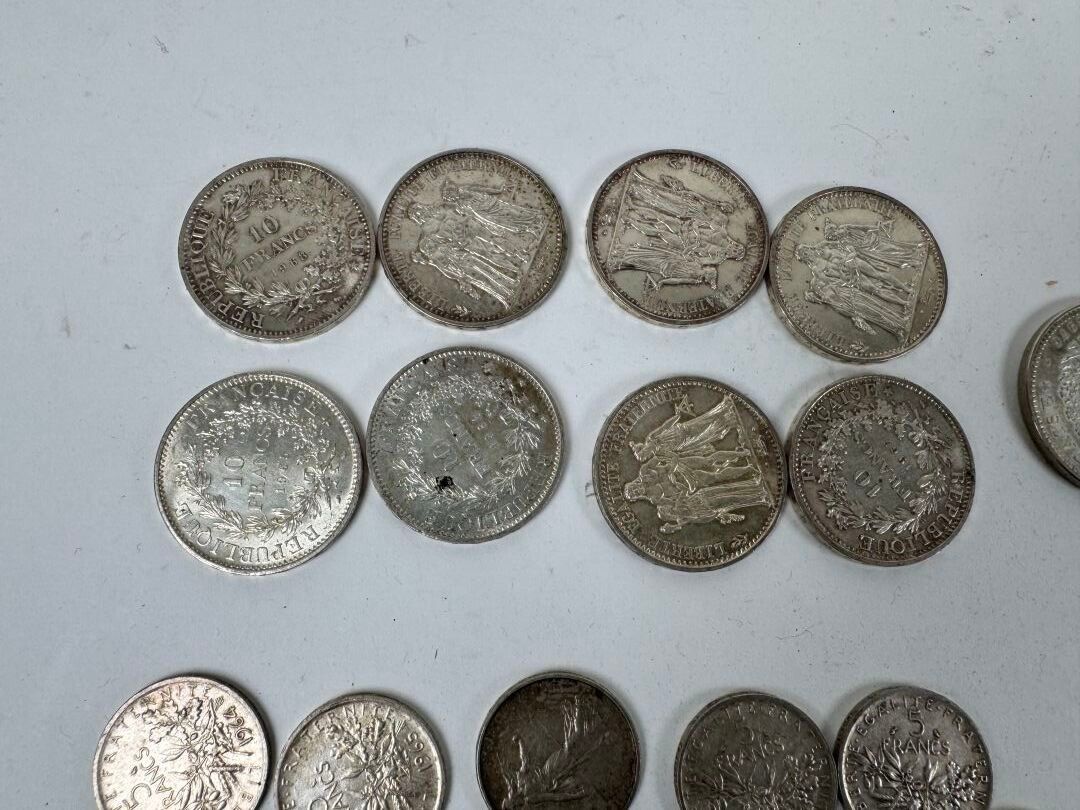 - 11 coins of 5 Francs Semeuse in silver. Weight : 132,2 g.