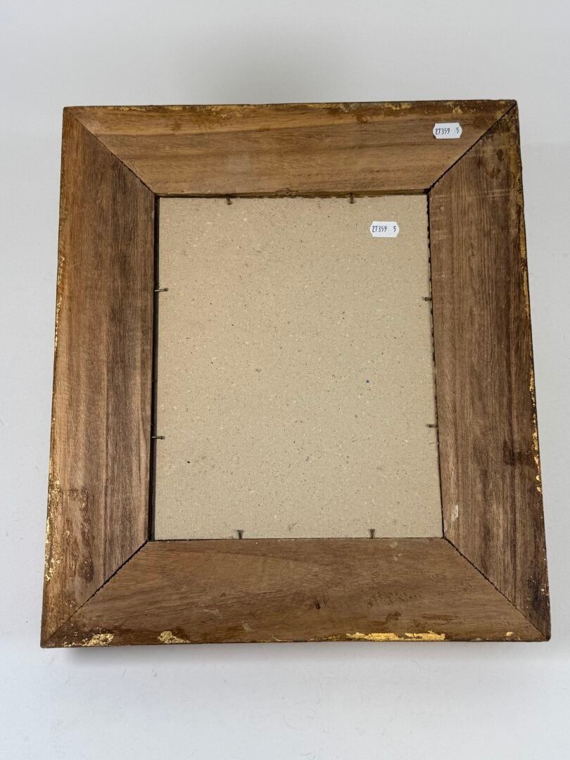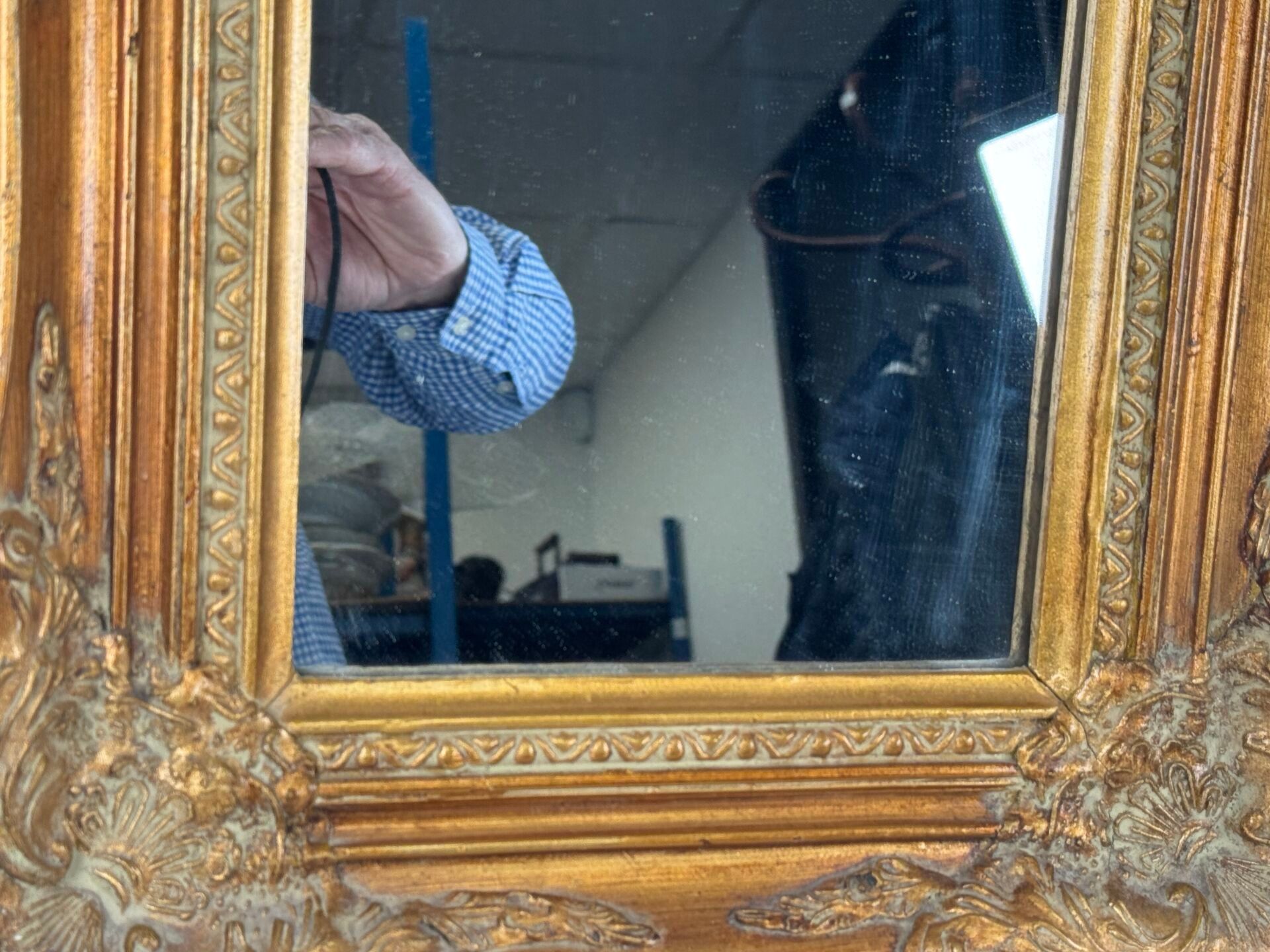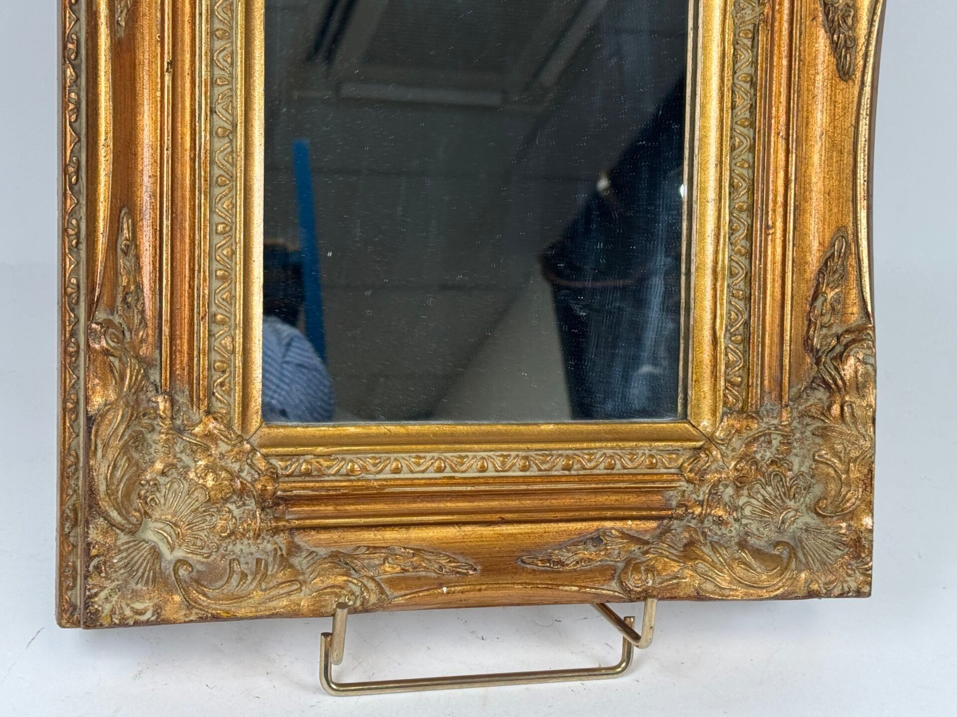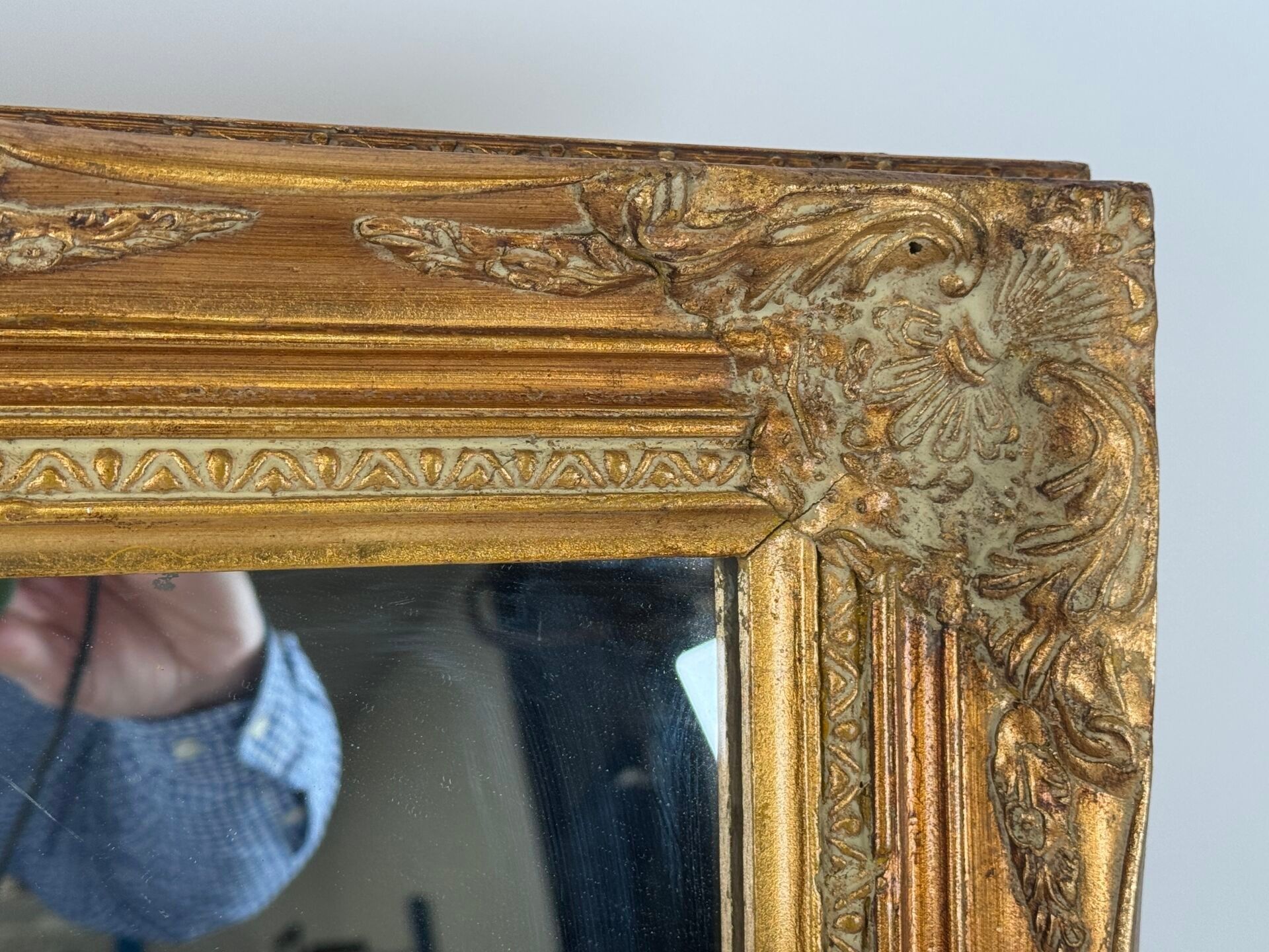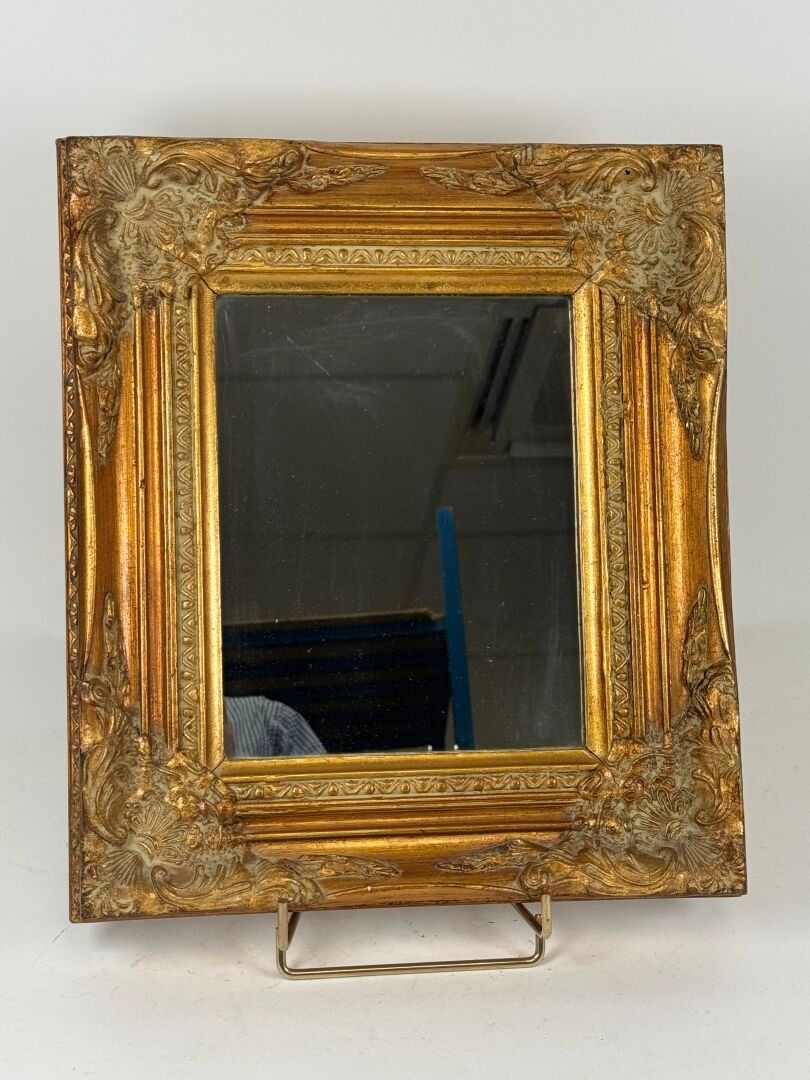 Rectangular giltwood mirror with foliate decoration in the corners.