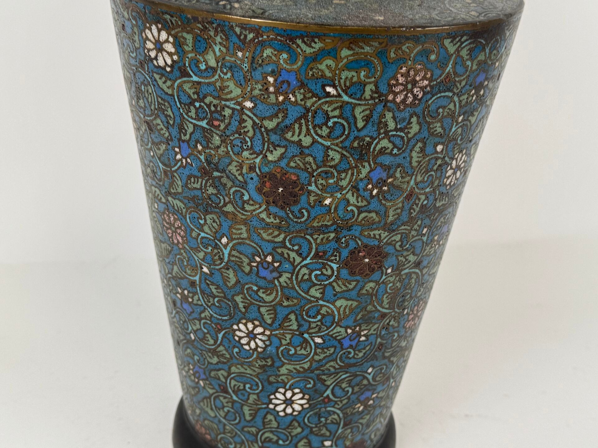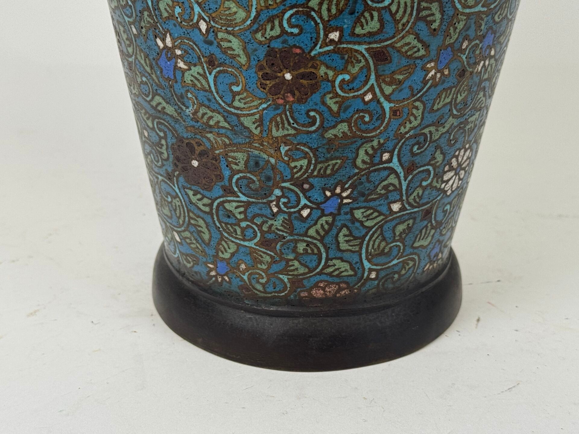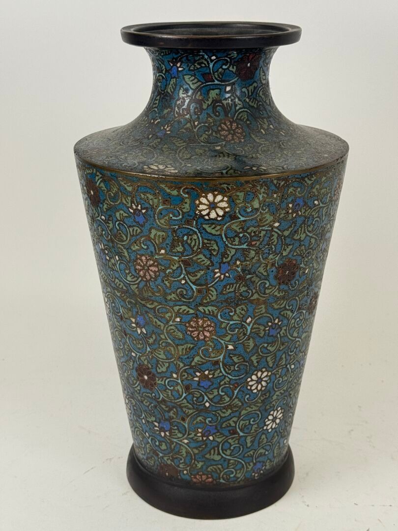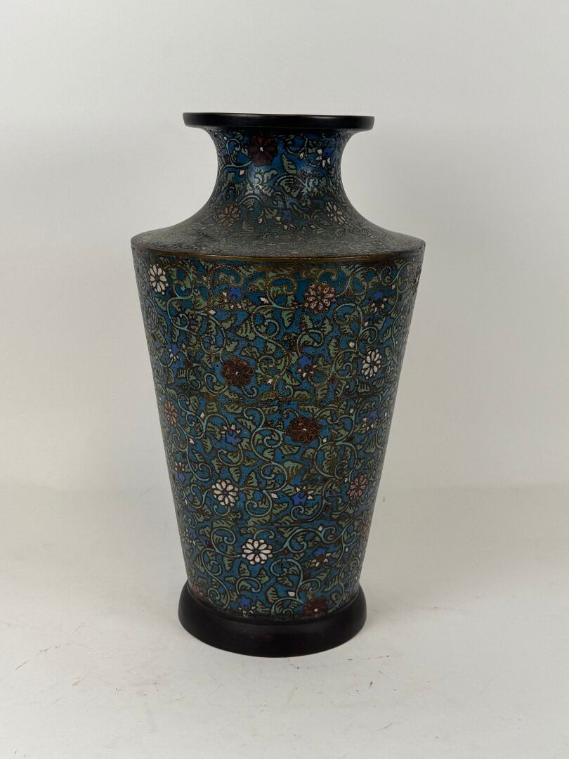 A large cloisonné bronze baluster vase decorated with foliate scrolls.