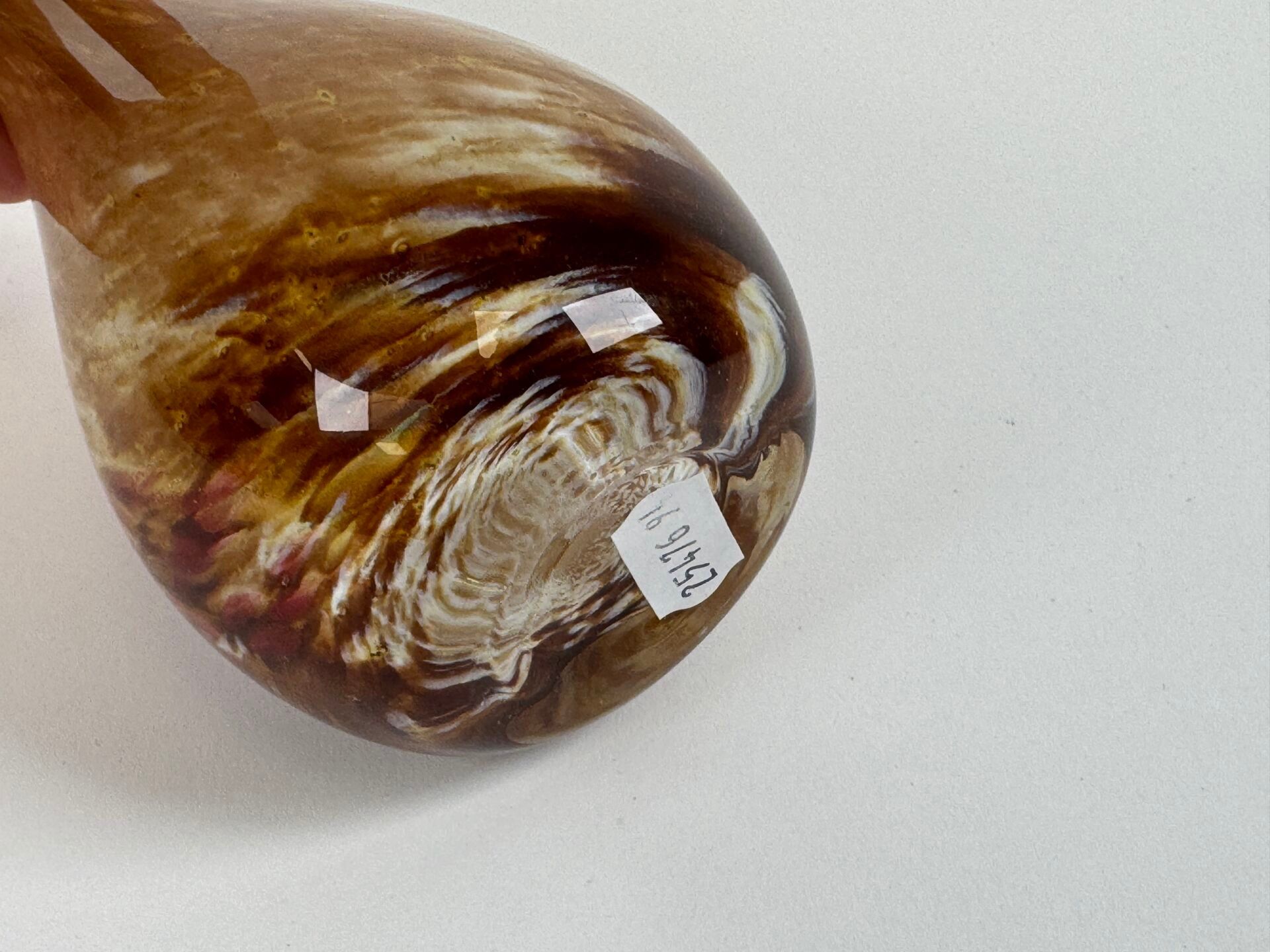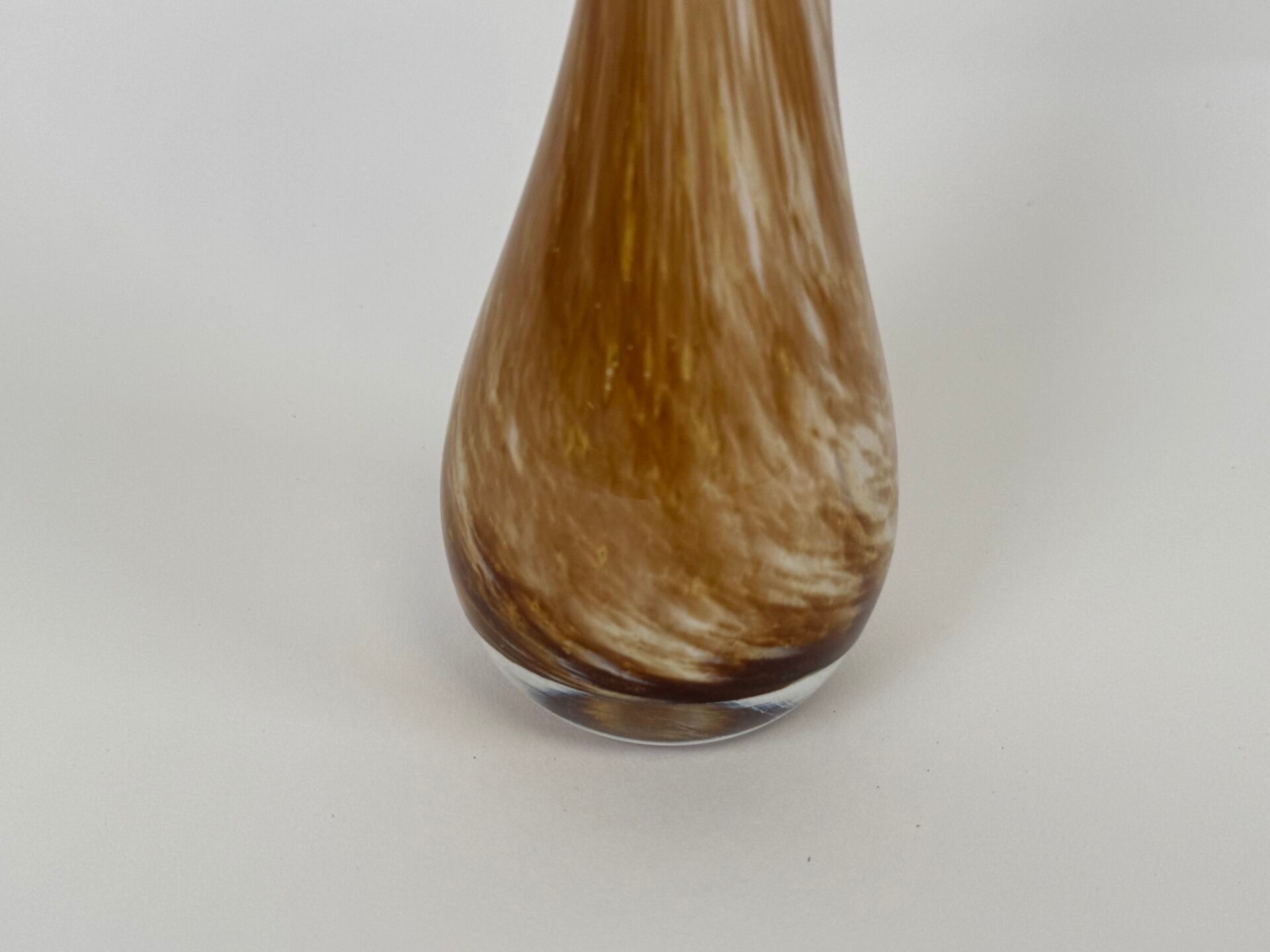 Blown glass vase with an internal gob of metallic oxides in shades of brown and pink.