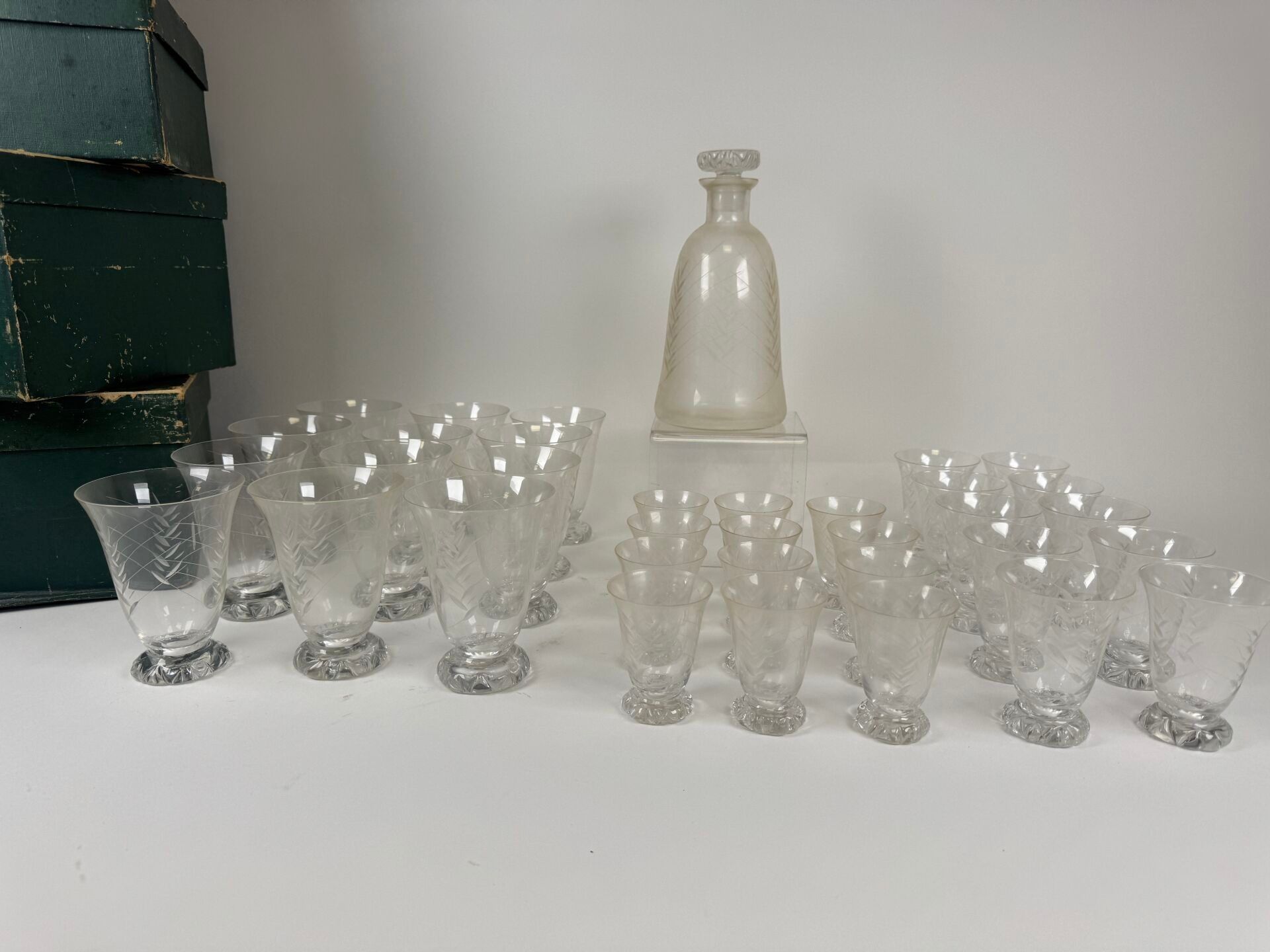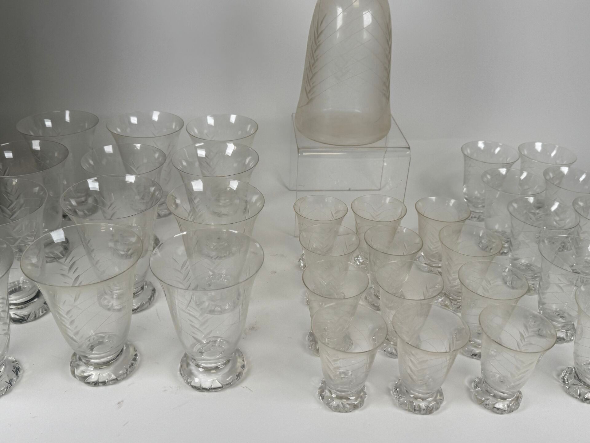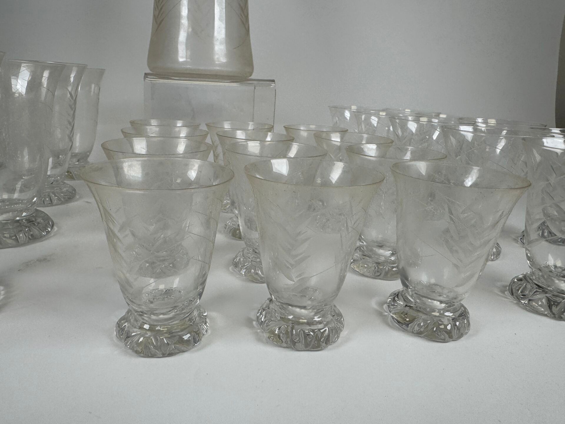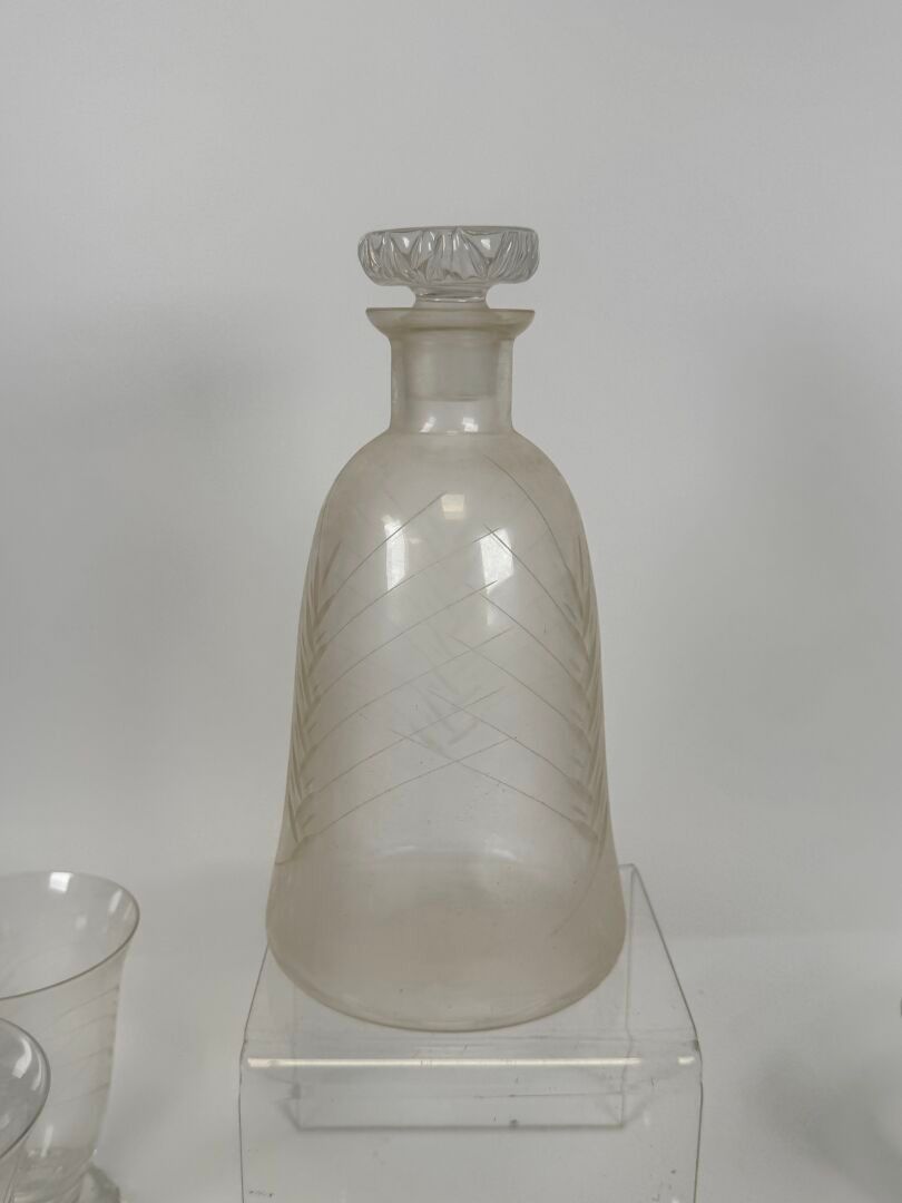 Set of crystal glasses engraved with stylised foliage comprising :