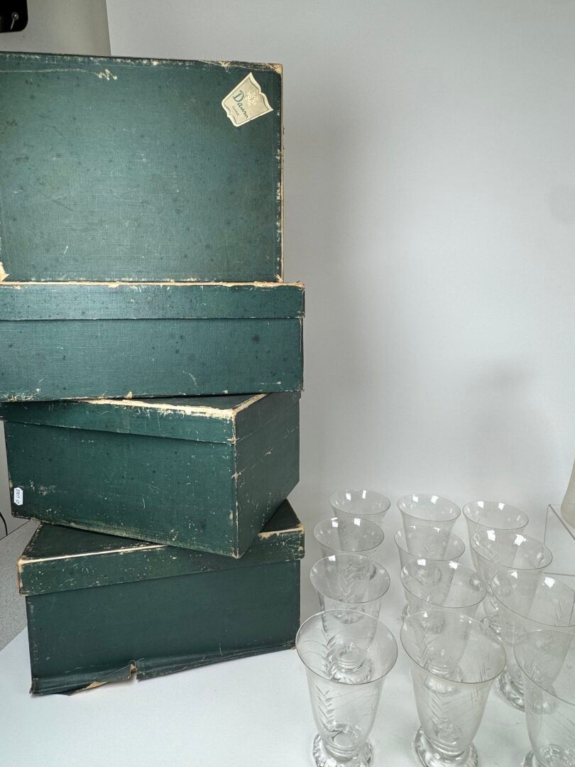 DAUM France. Set of crystal glasses engraved with stylised f…