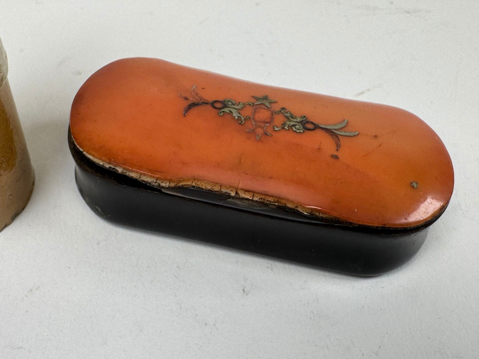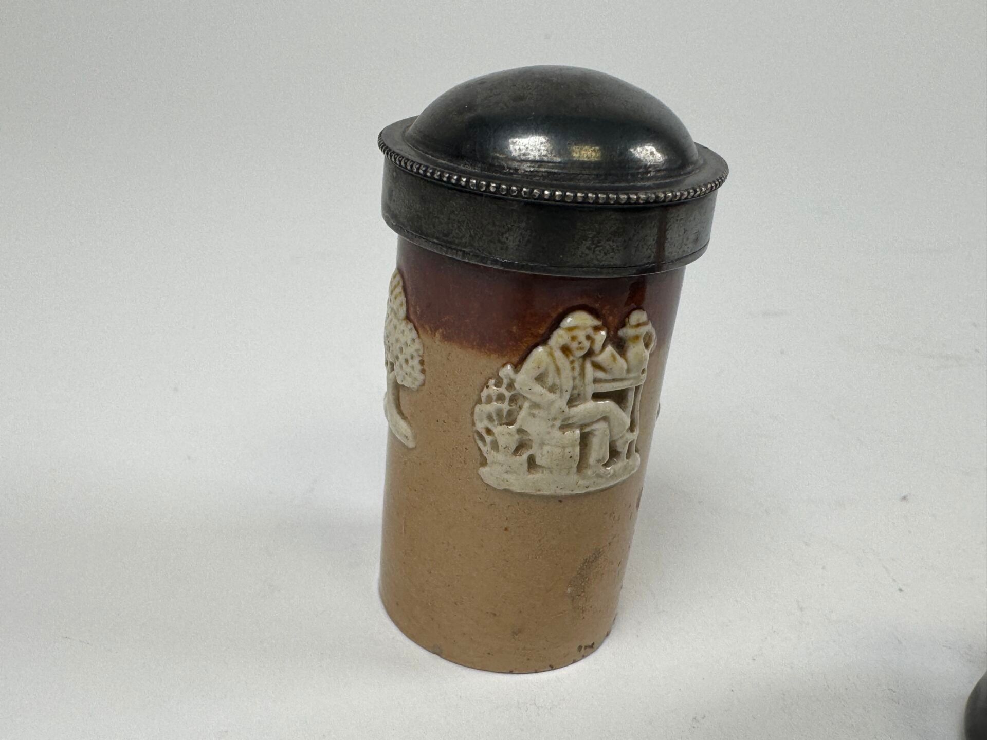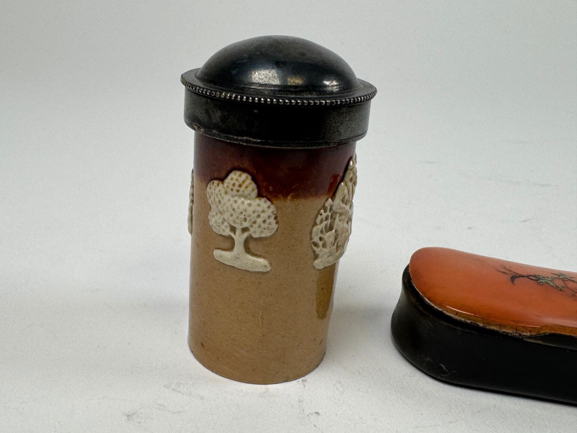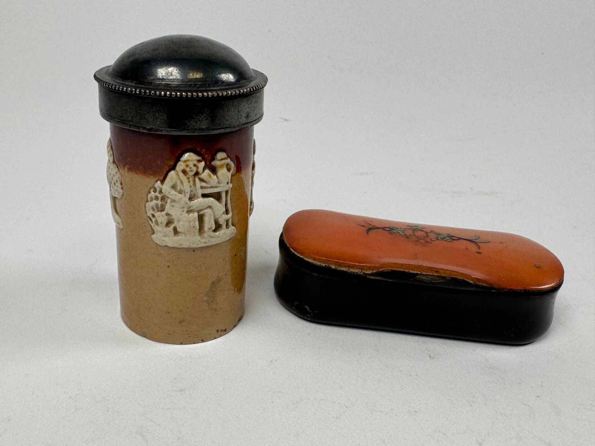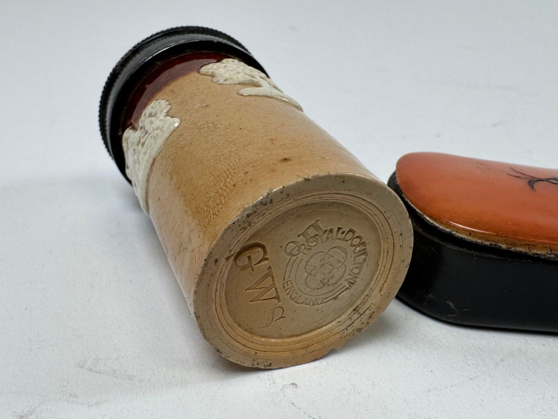 ROYAL DOULTON. Terra cotta snuffbox with silver-plated metal…