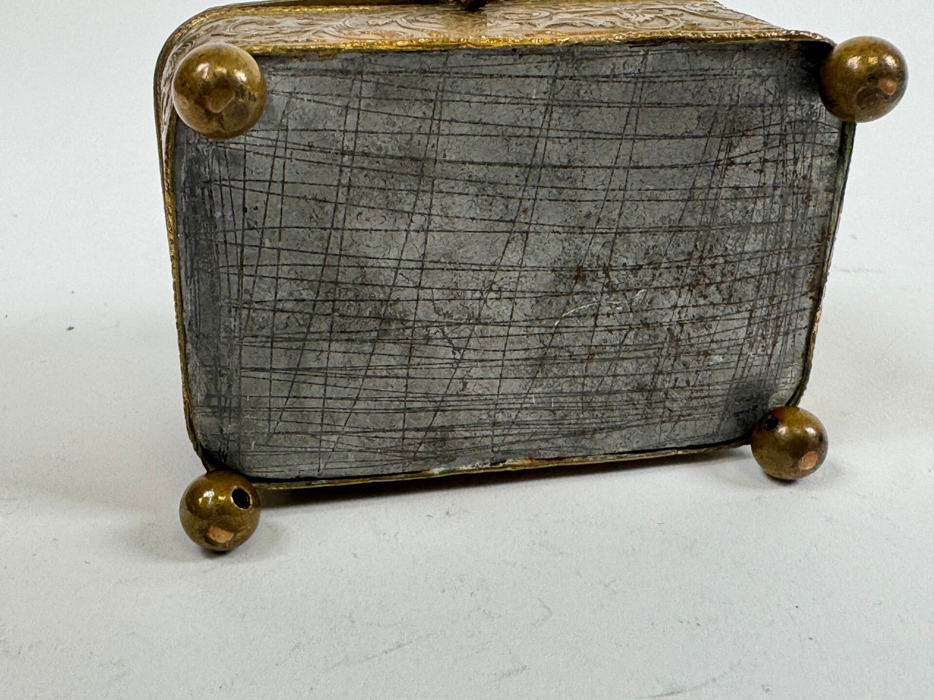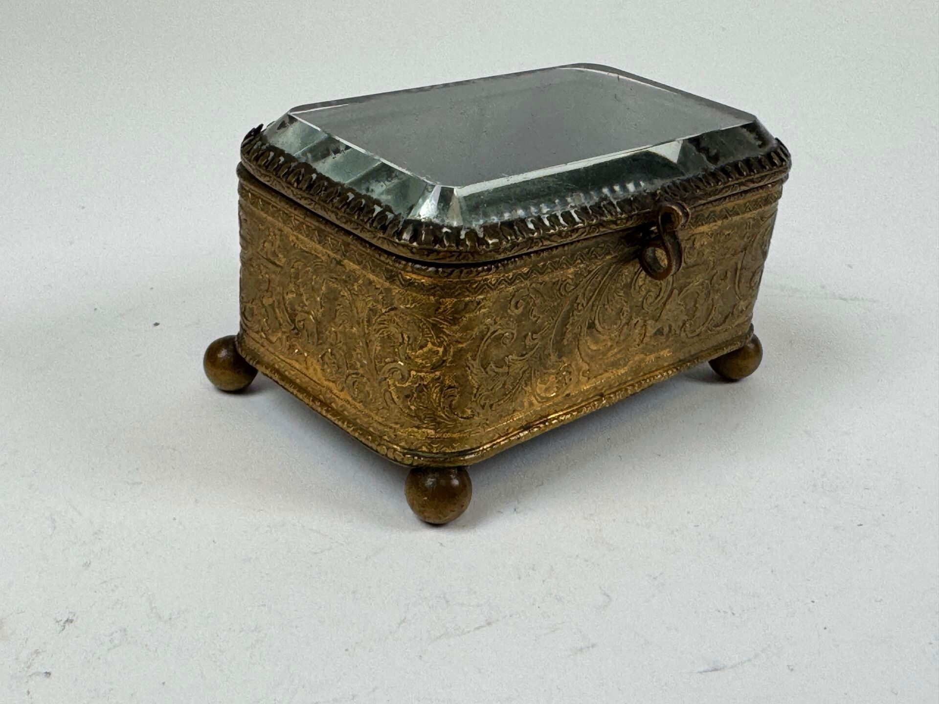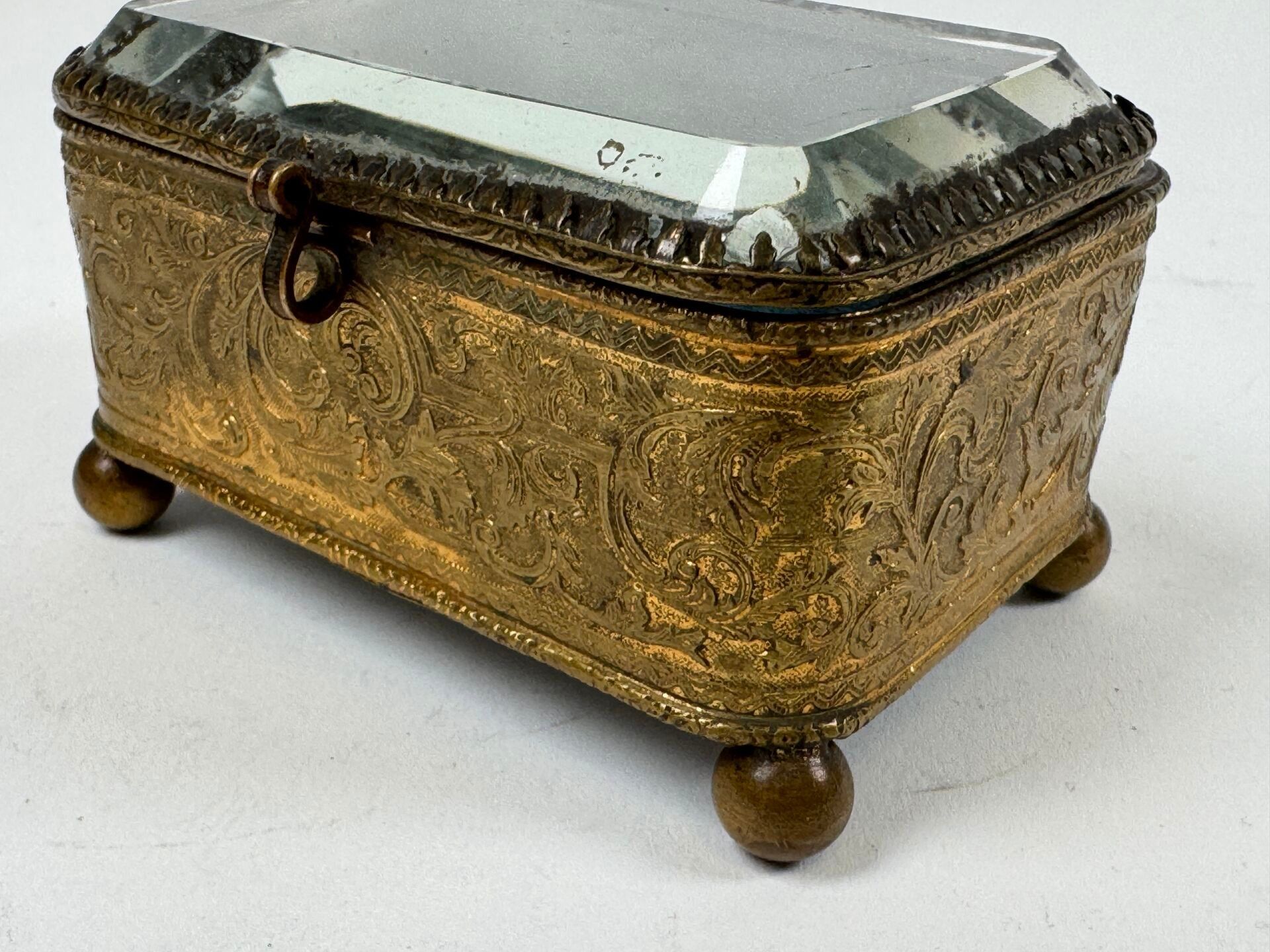 Rectangular chased brass jewellery box, bevelled glass lid, …