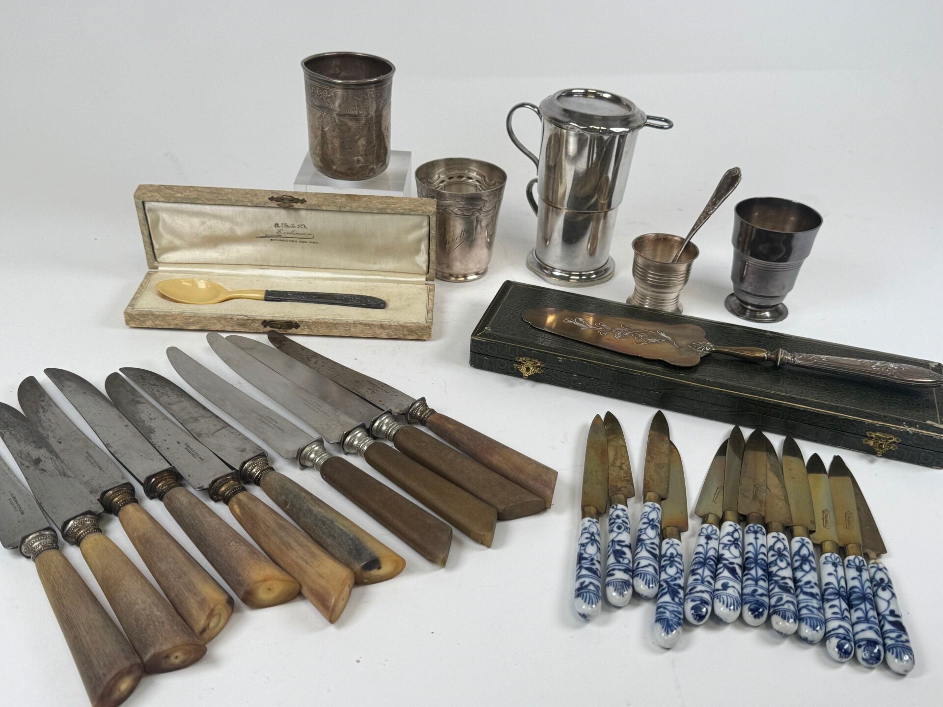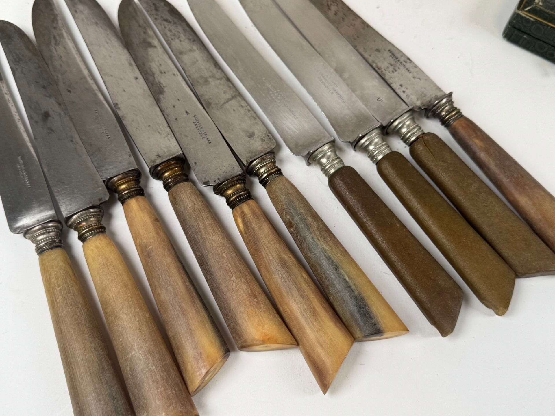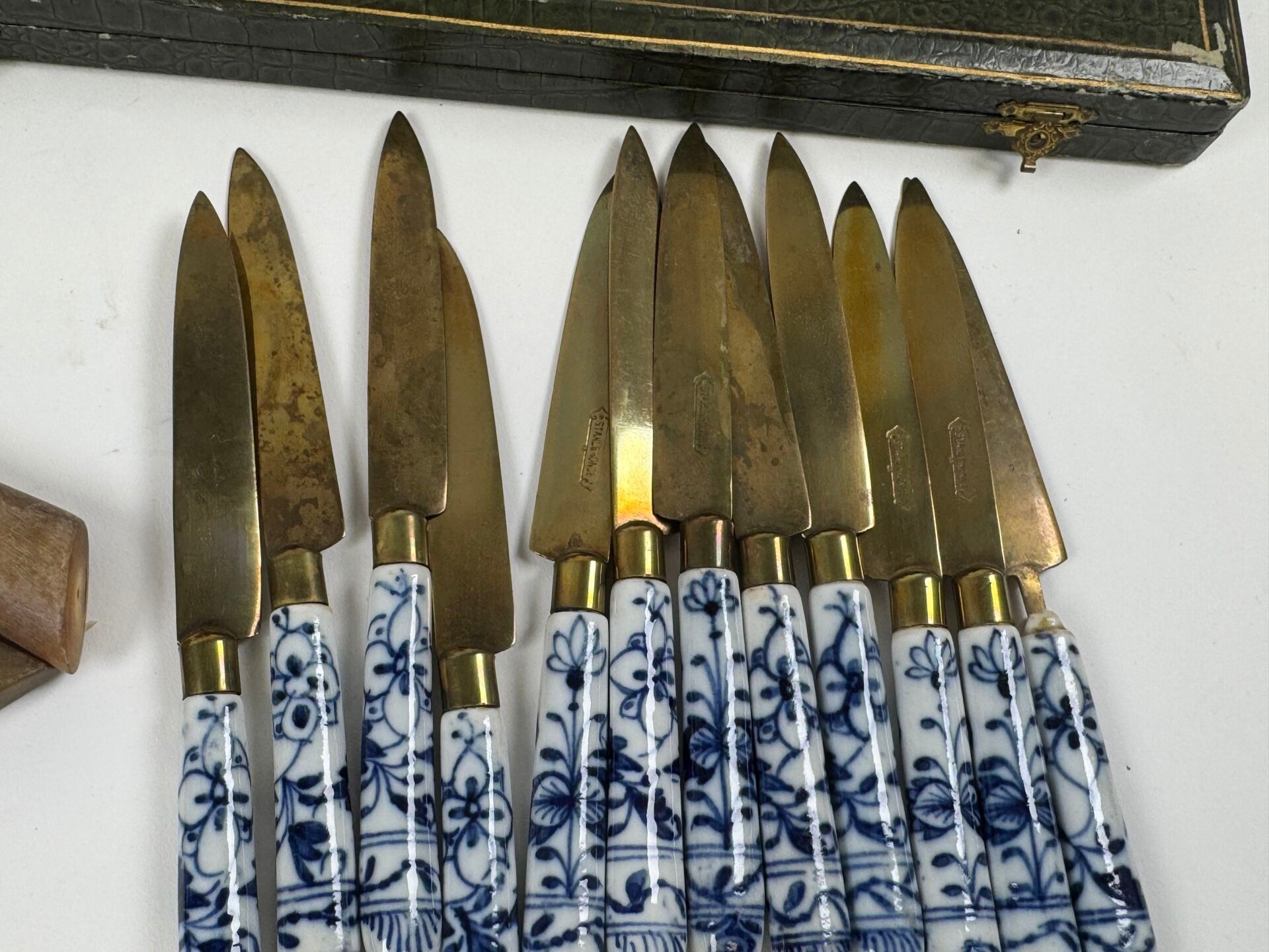 - Set of twelve small blue and white porcelain knives, the blades in gilt metal.