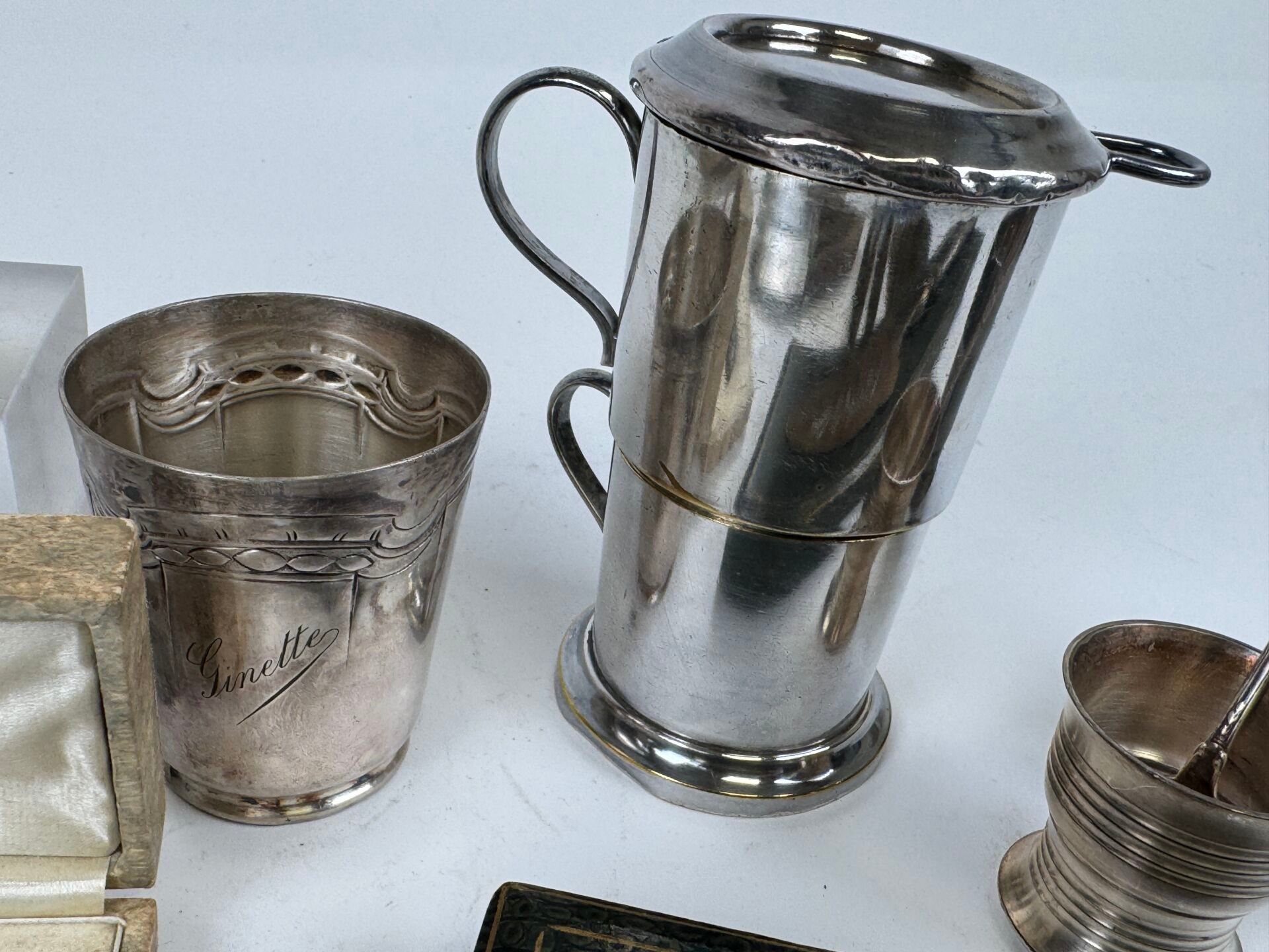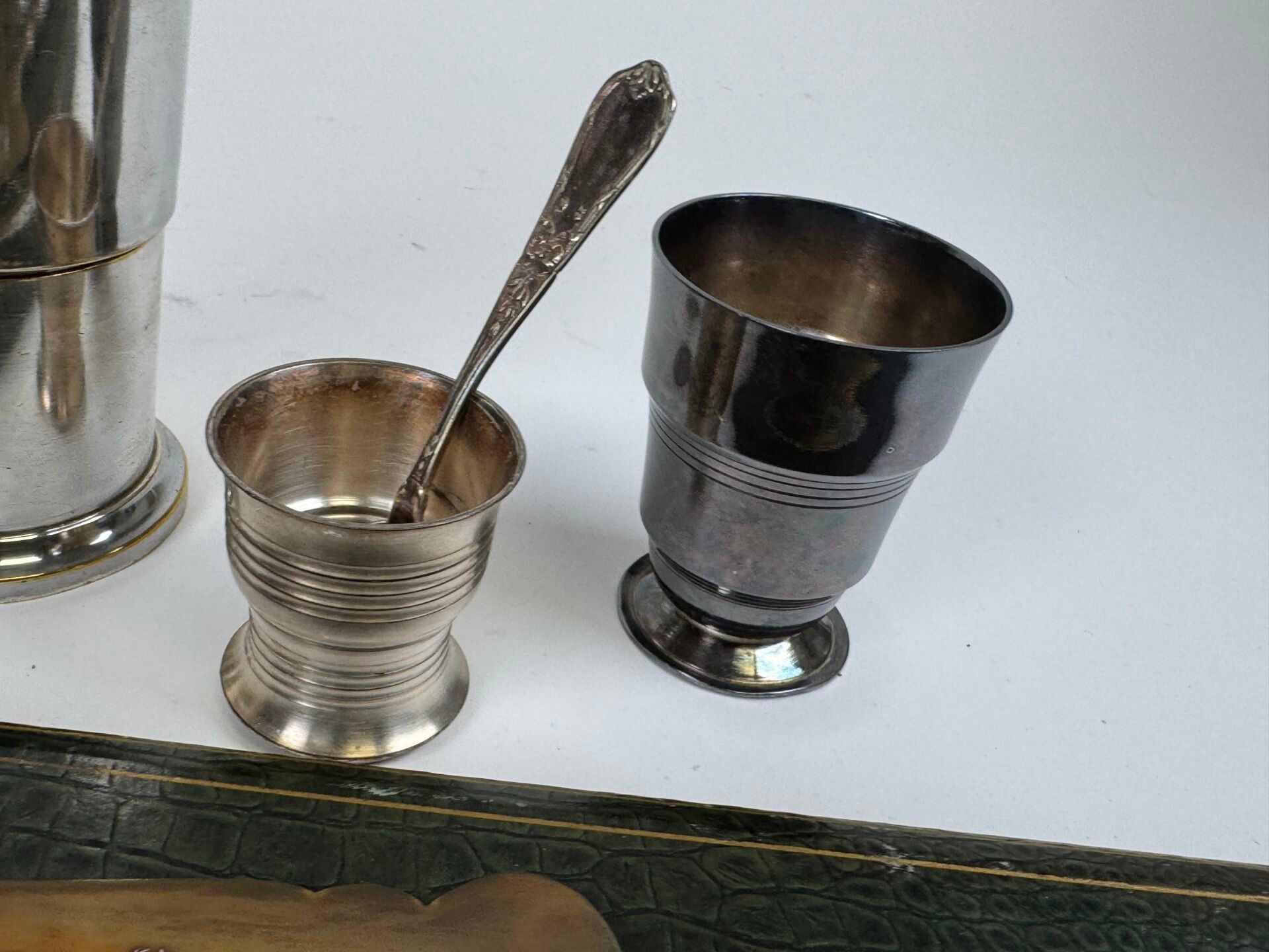 Lot including : - A 950/1000 silver tumbler with foliate dec…