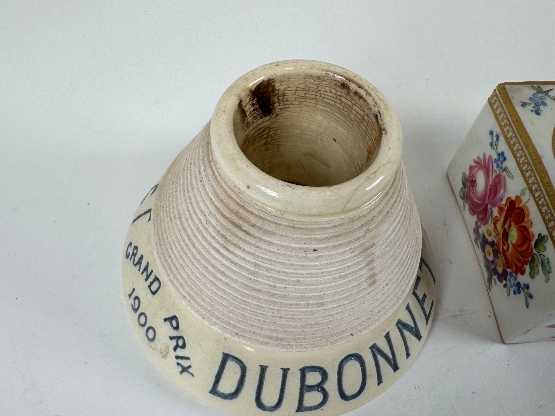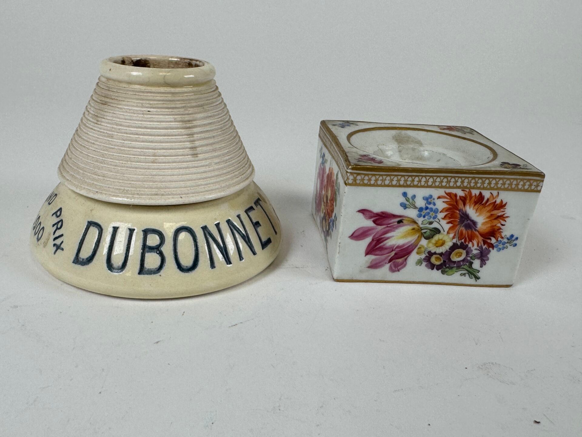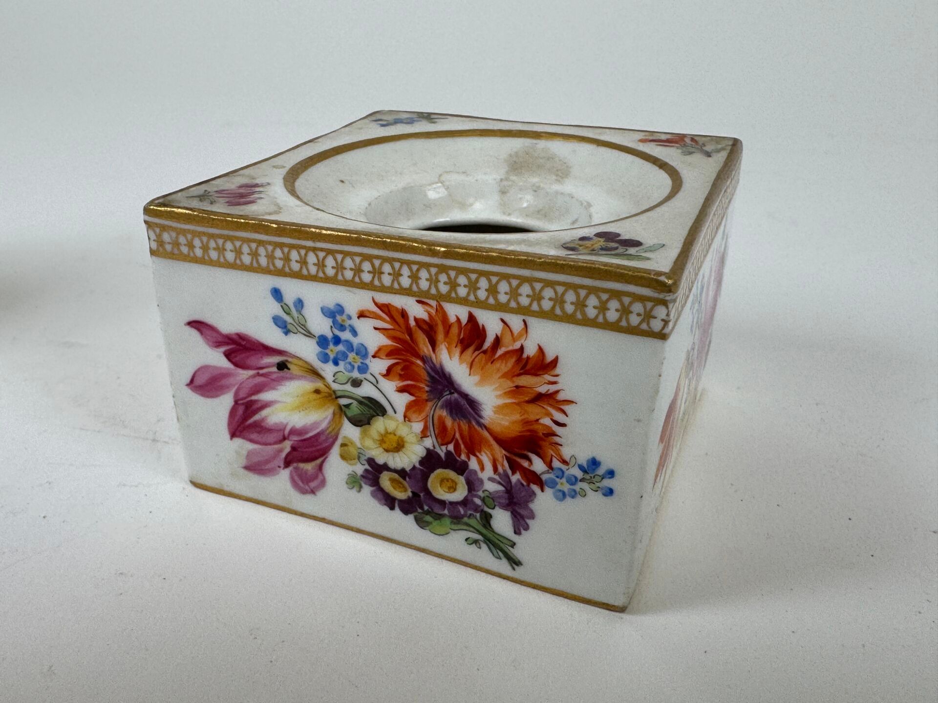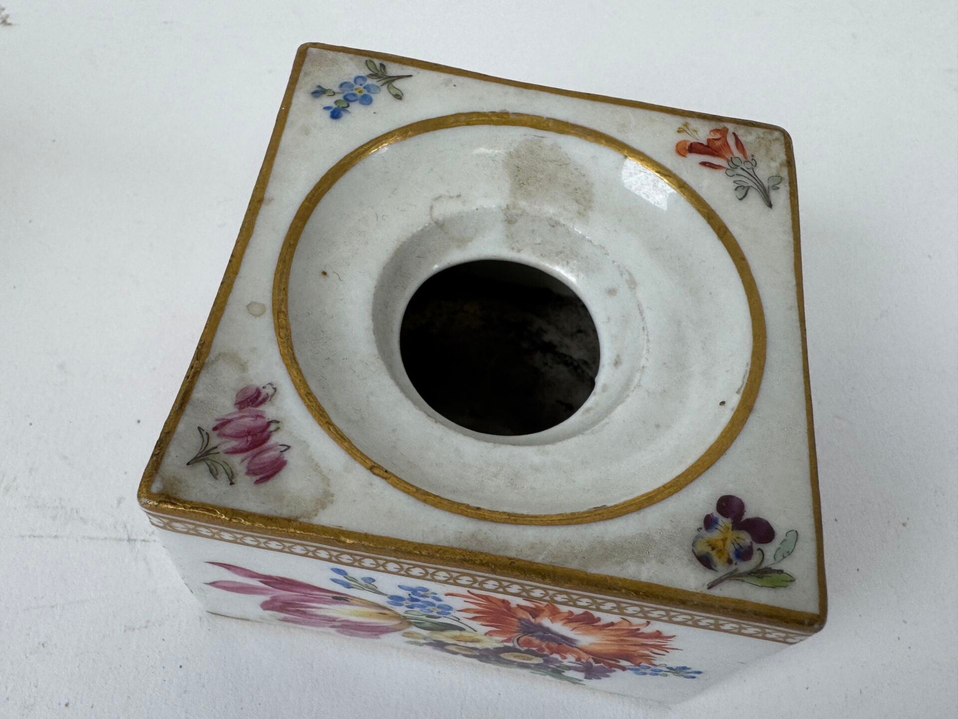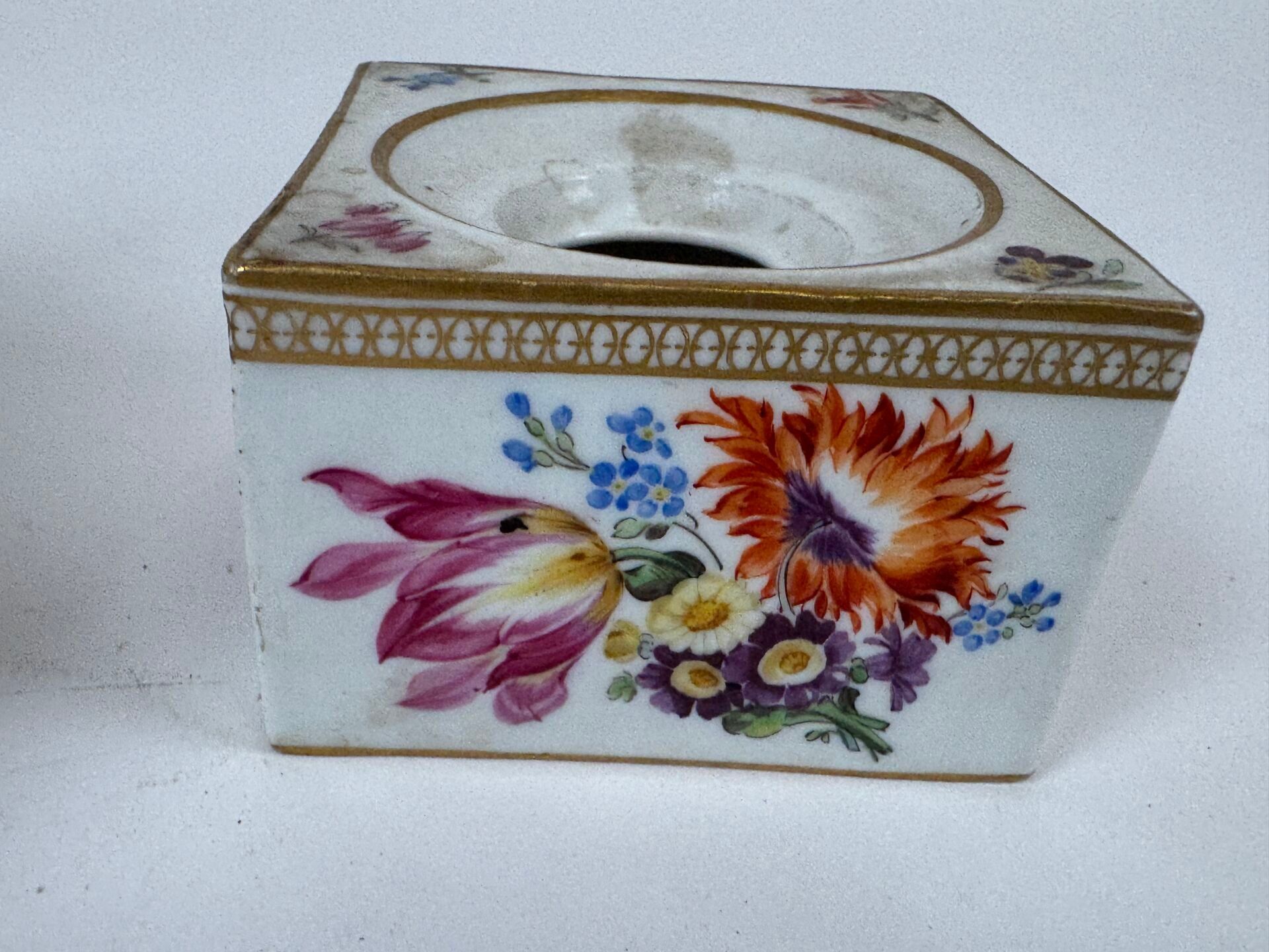- Desk inkwell in polychrome and gold porcelain decorated with flowers.