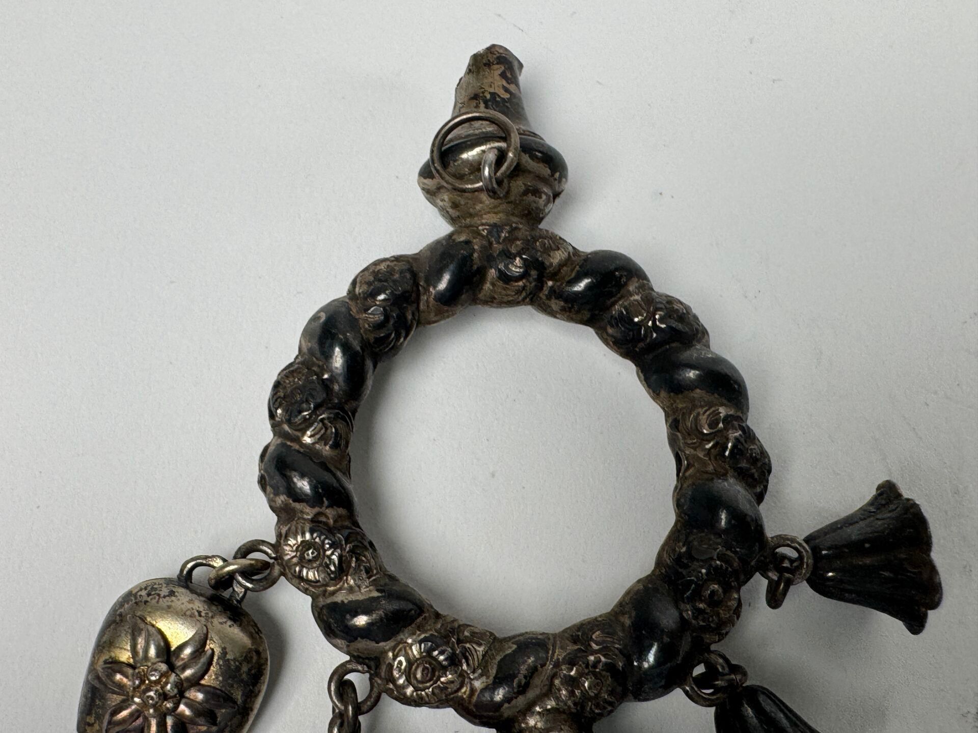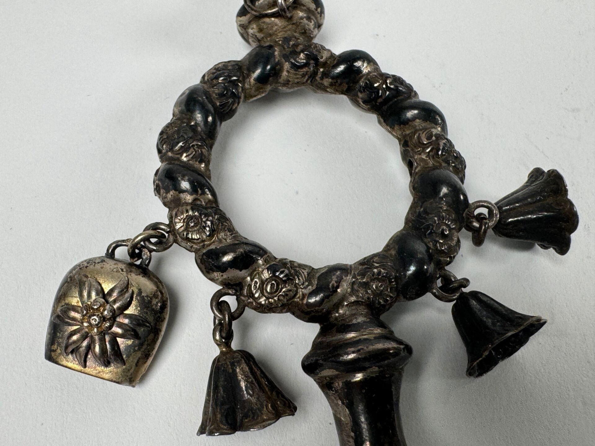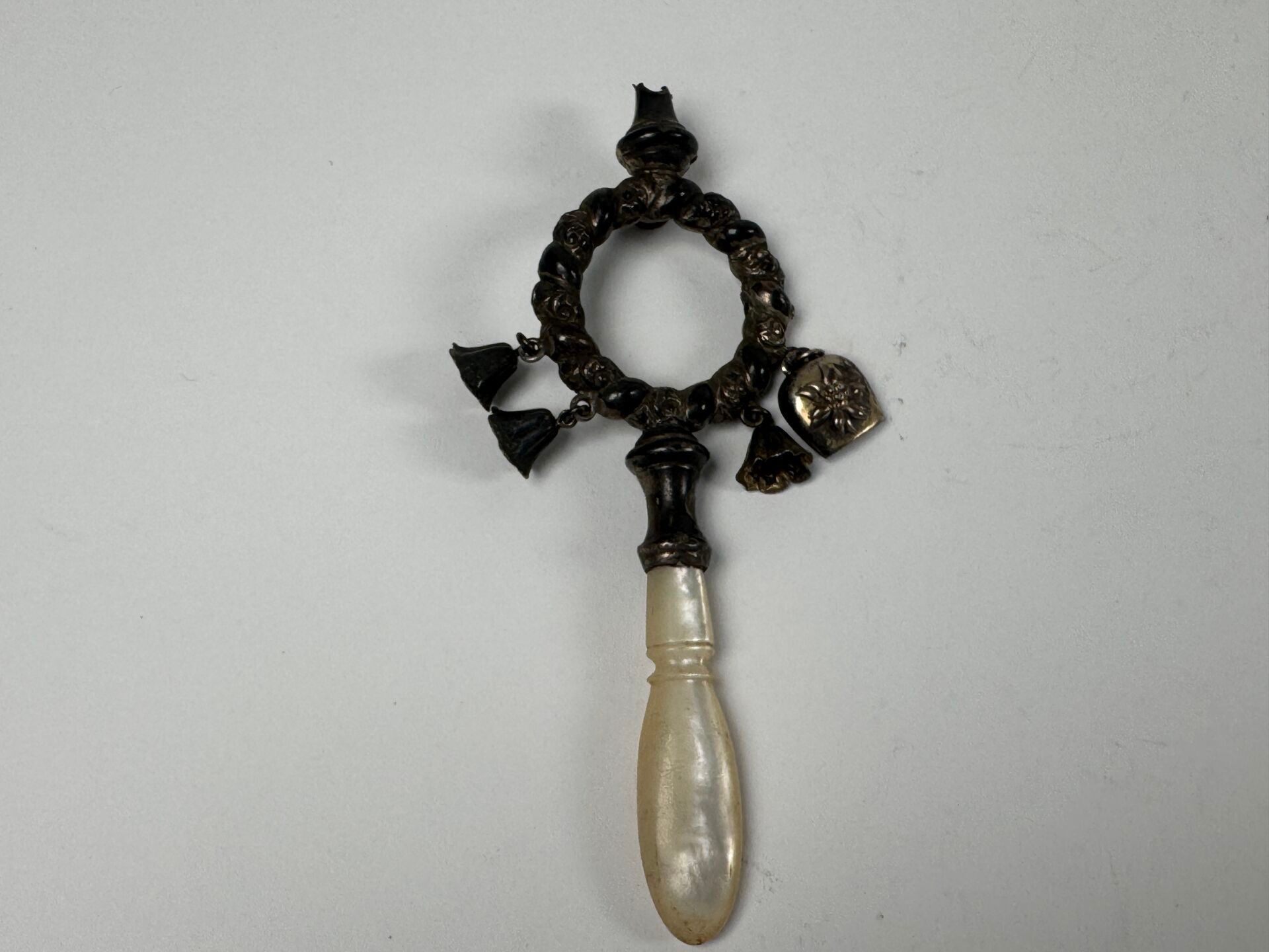 Silver whistle rattle with mother-of-pearl handle engraved w…