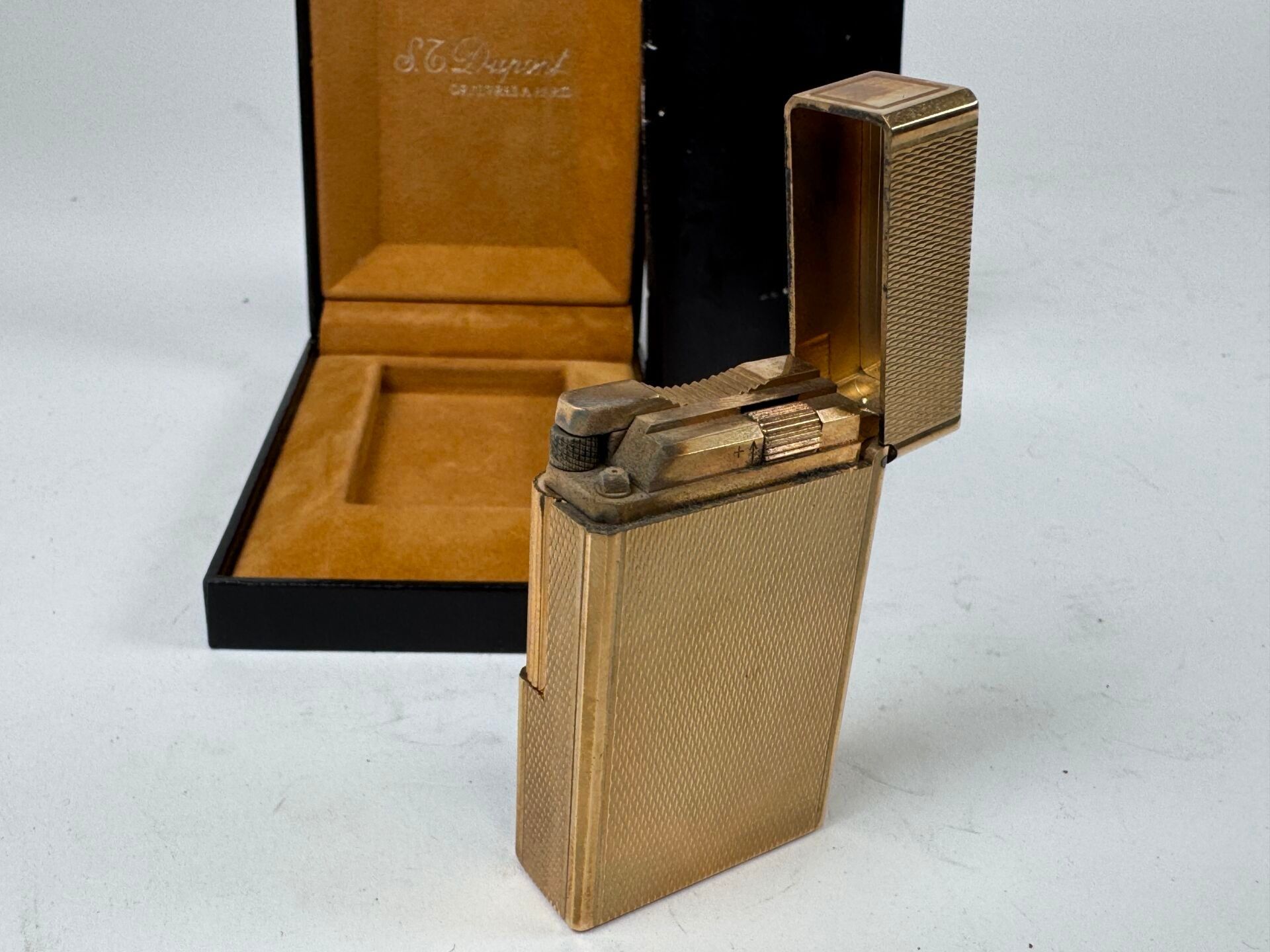 ST DUPONT in Paris. Gold-plated metal lighter with guilloche…