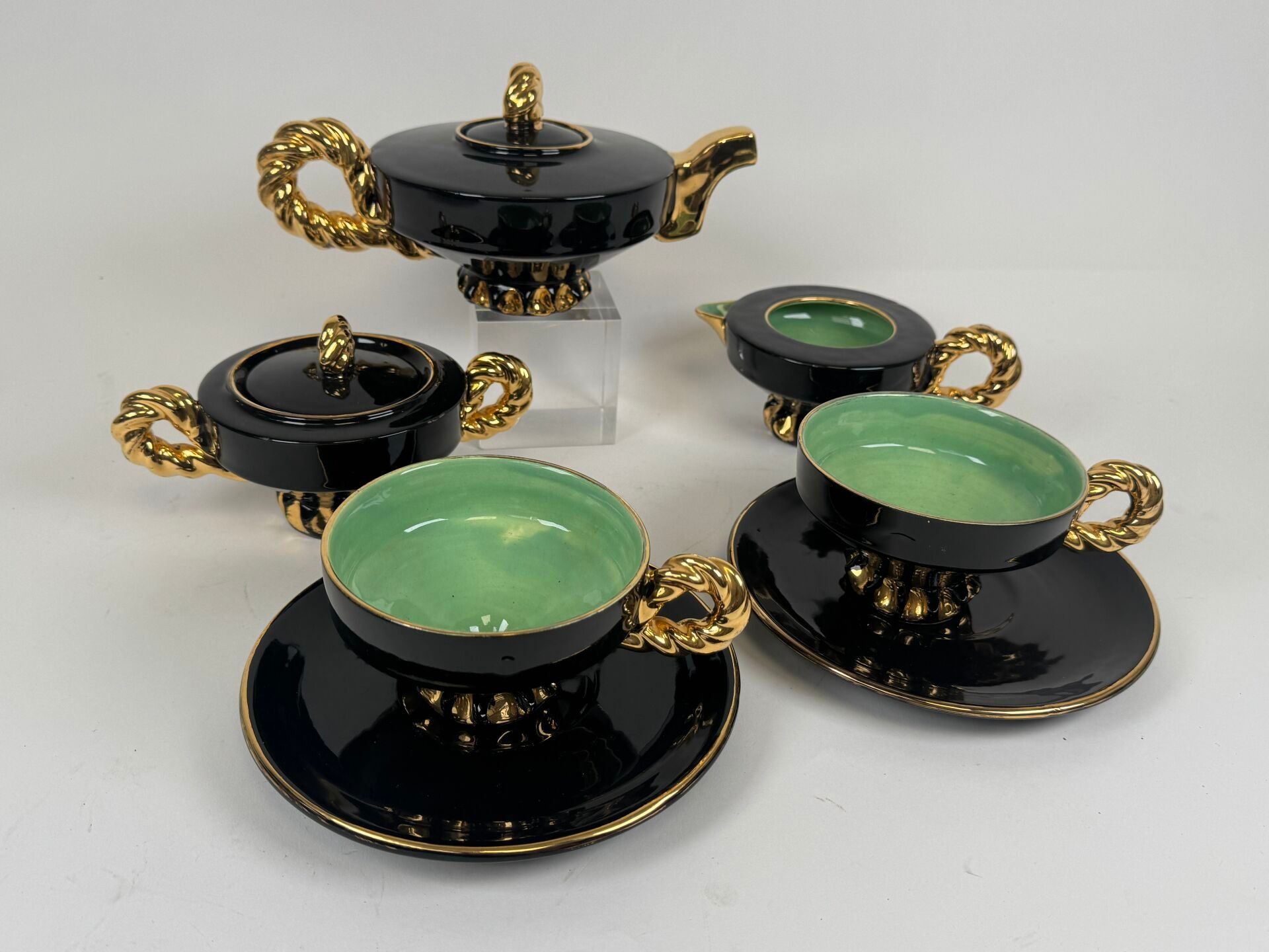 VALLAURIS. Polychrome ceramic head to head set comprising a …