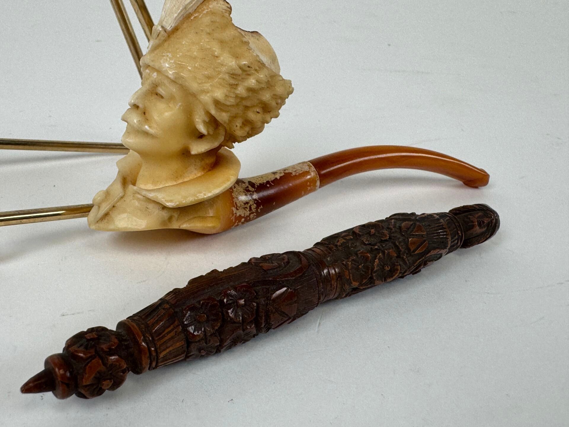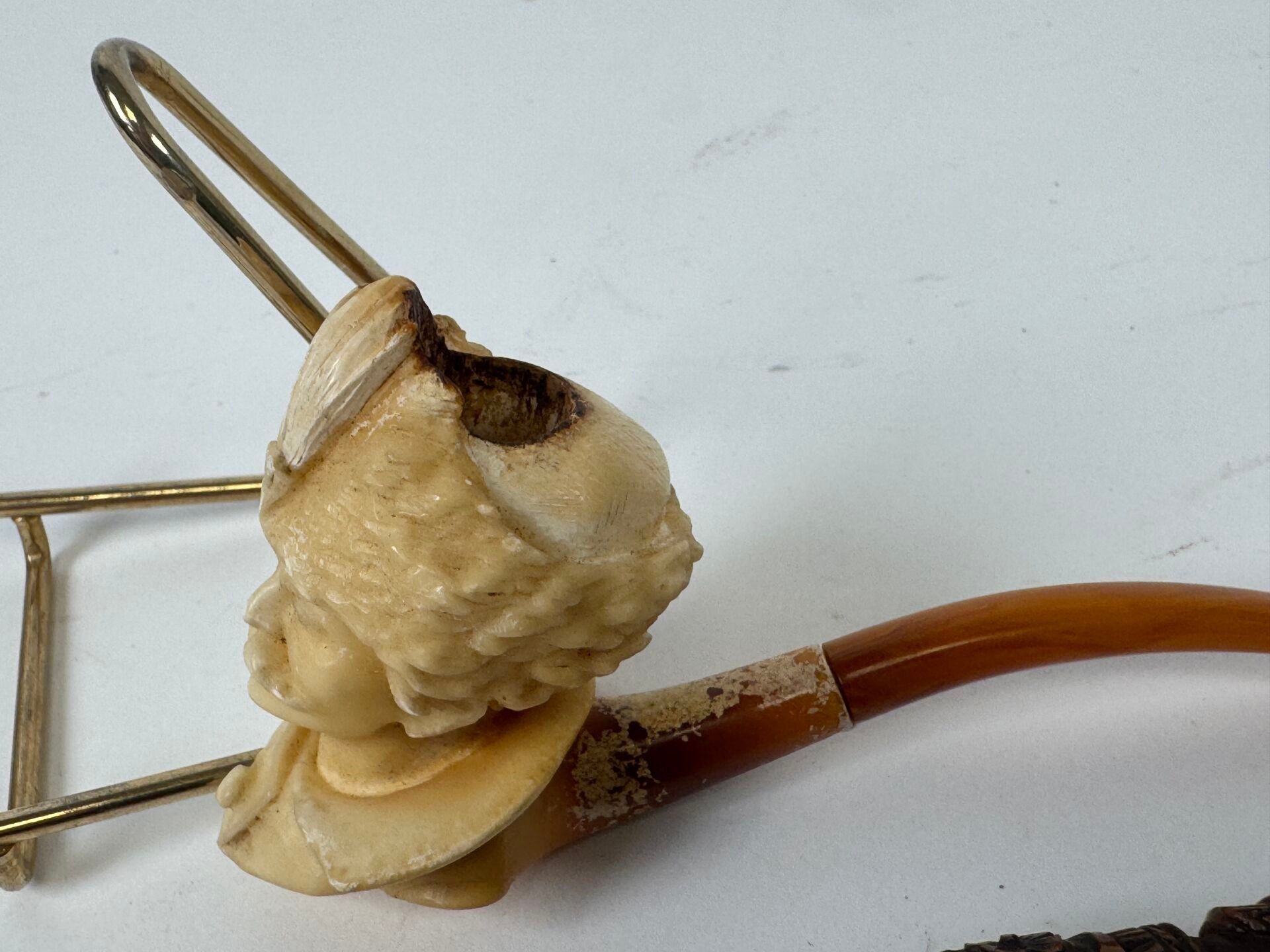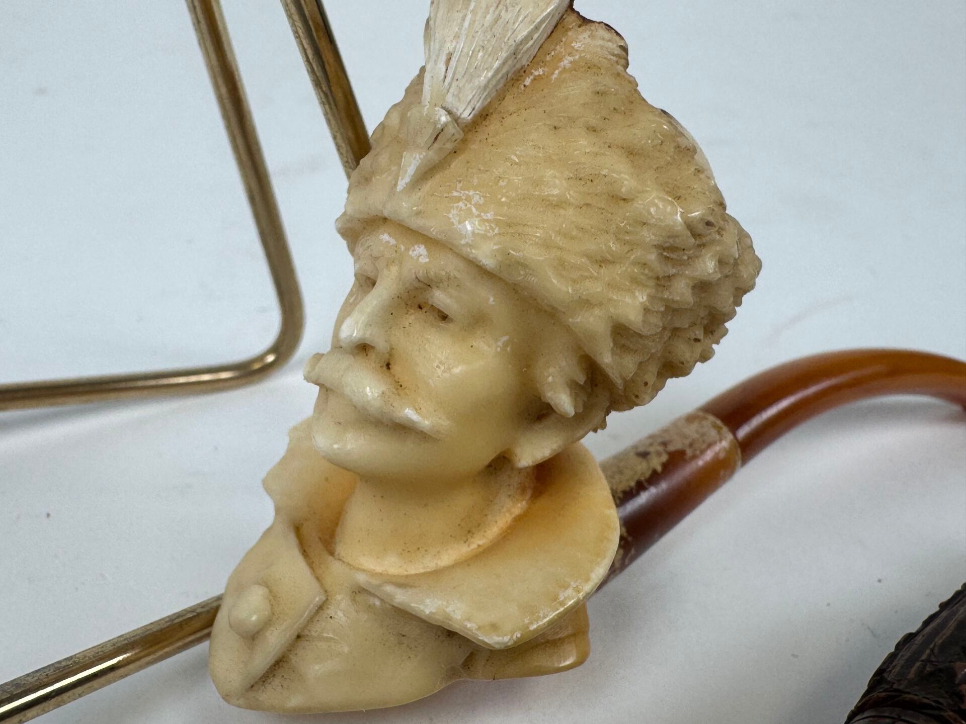 Lot including : - A meerschaum pipe decorated with a moustac…