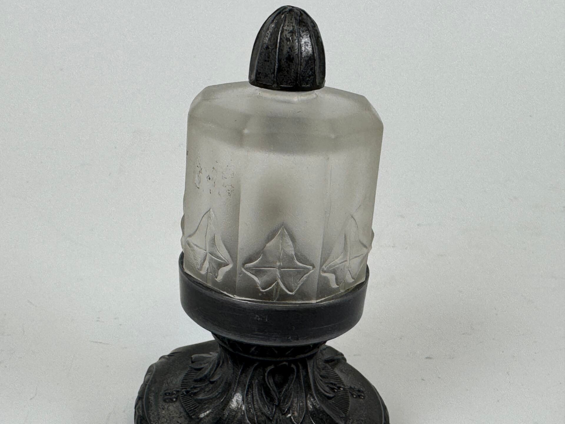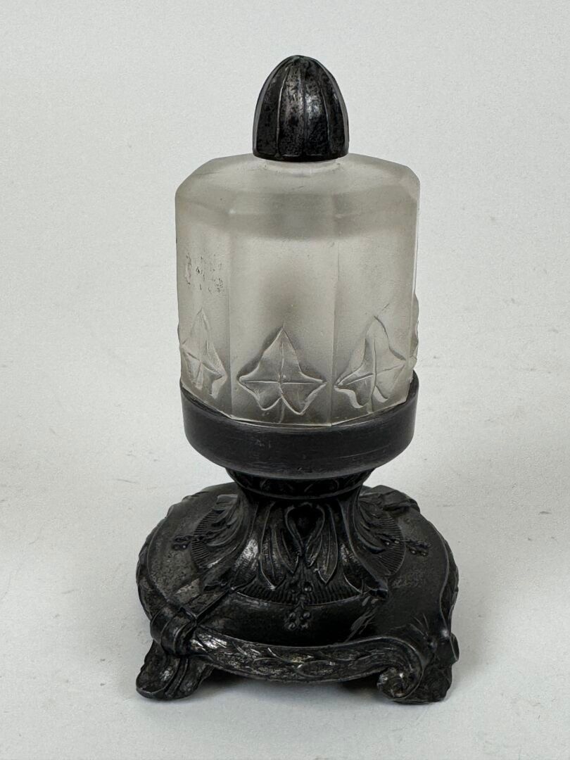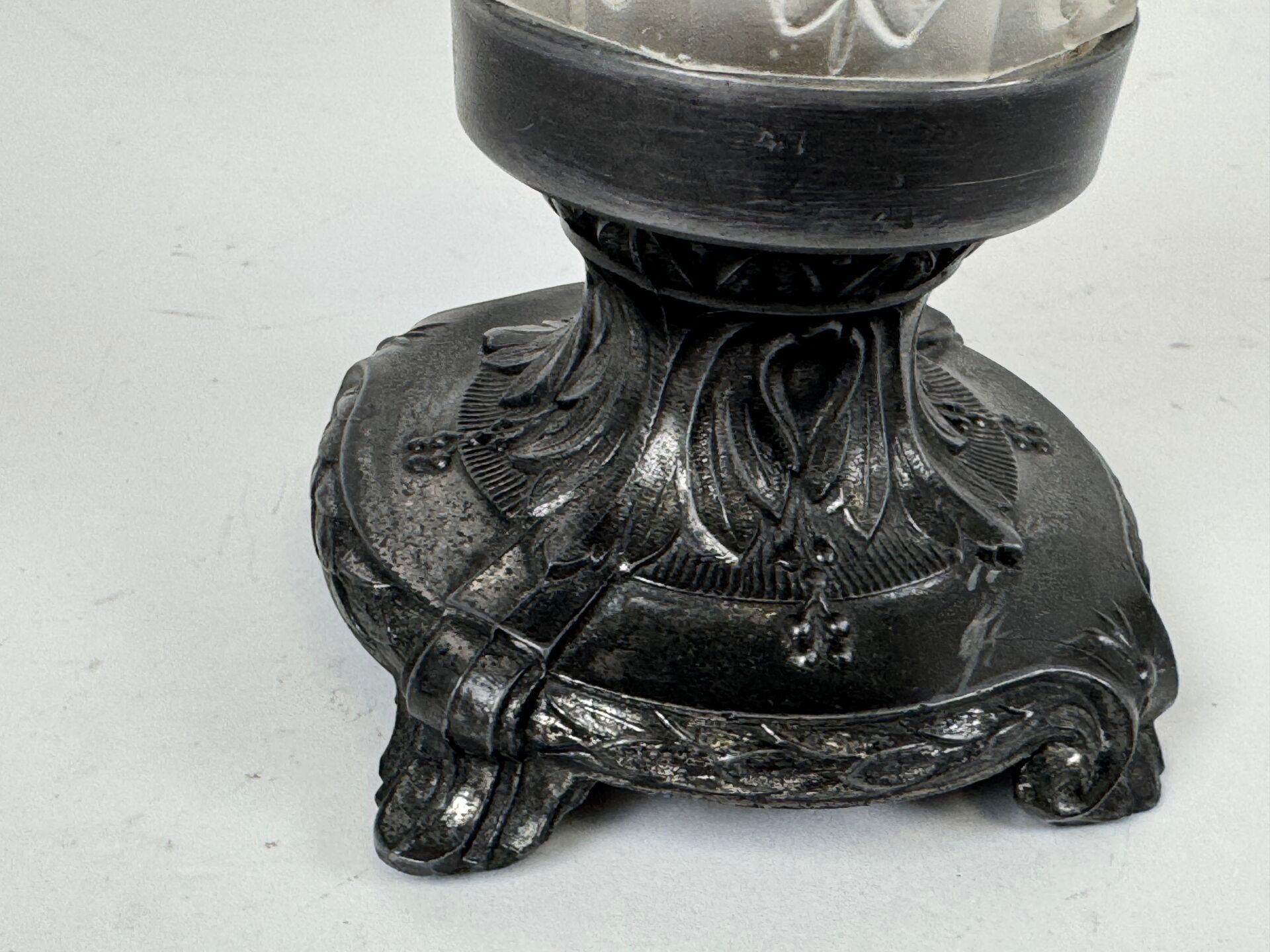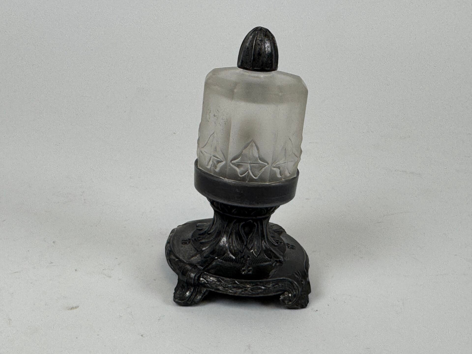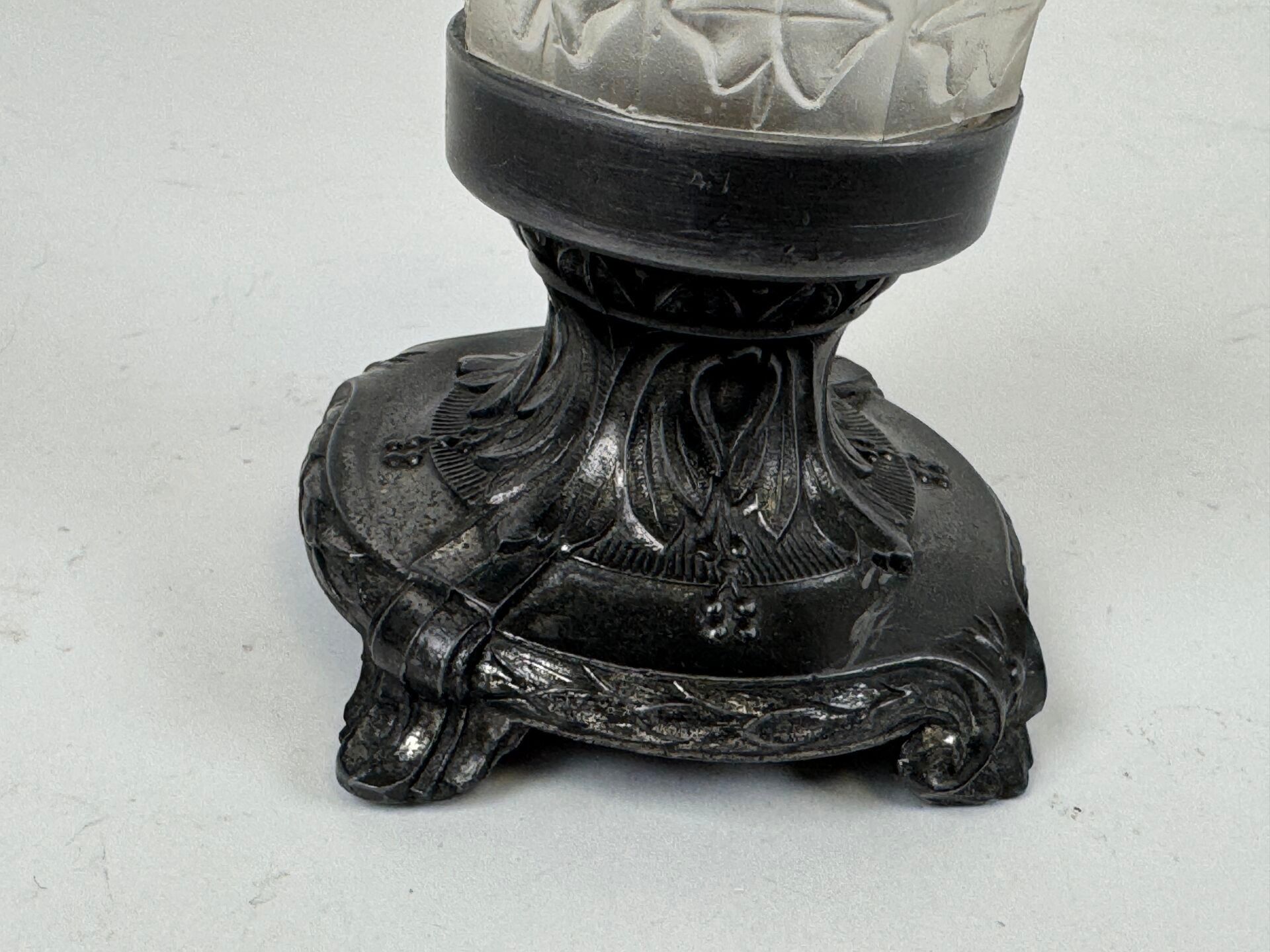 Moulded and pressed glass nightlight with silver patina regule frame.