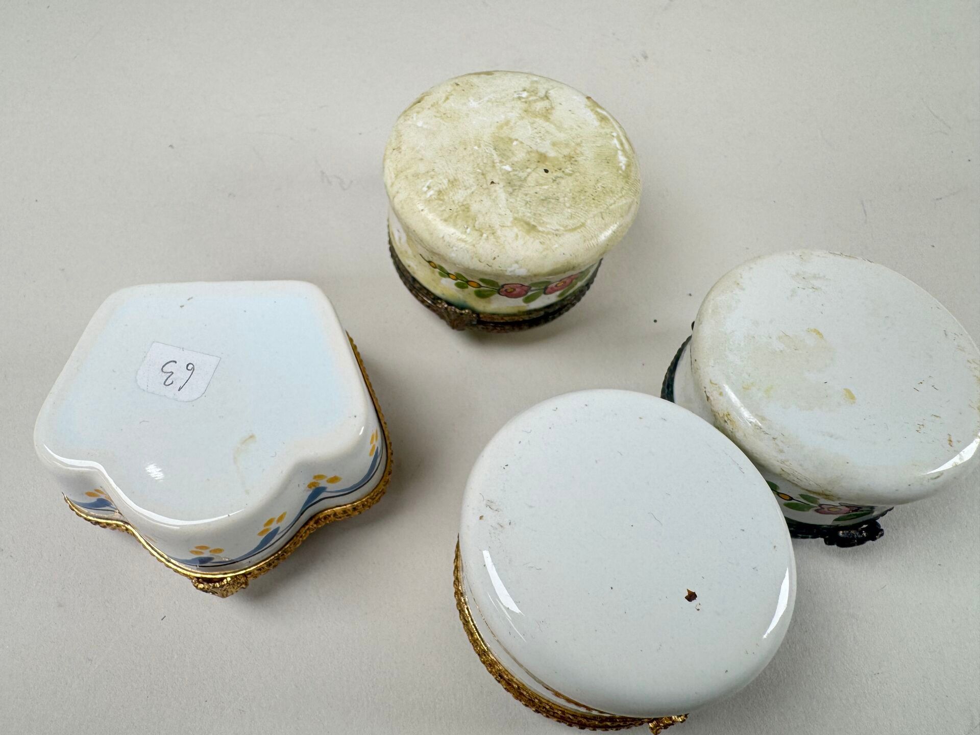 Four small polychrome ceramic boxes or pillboxes decorated w…