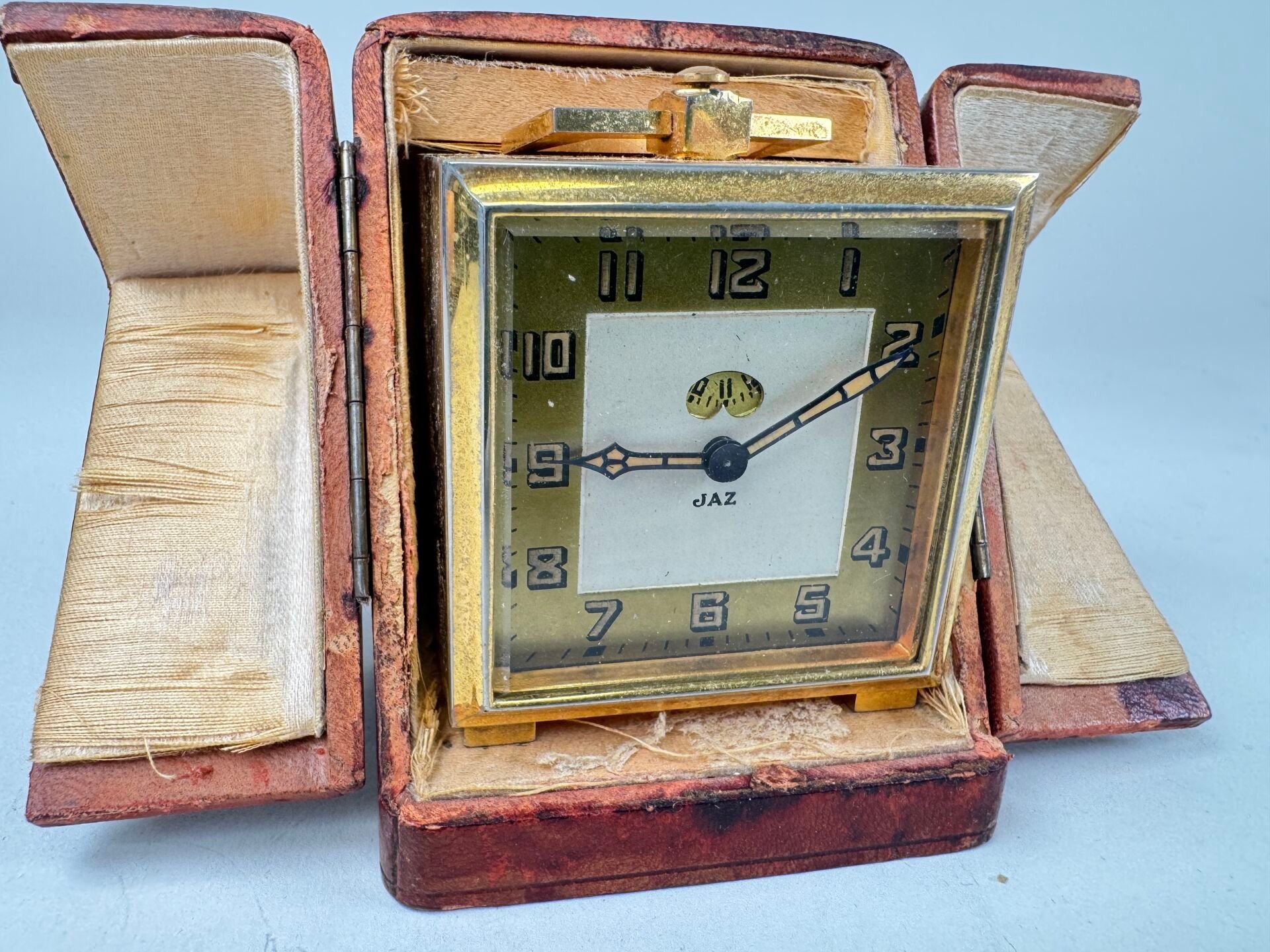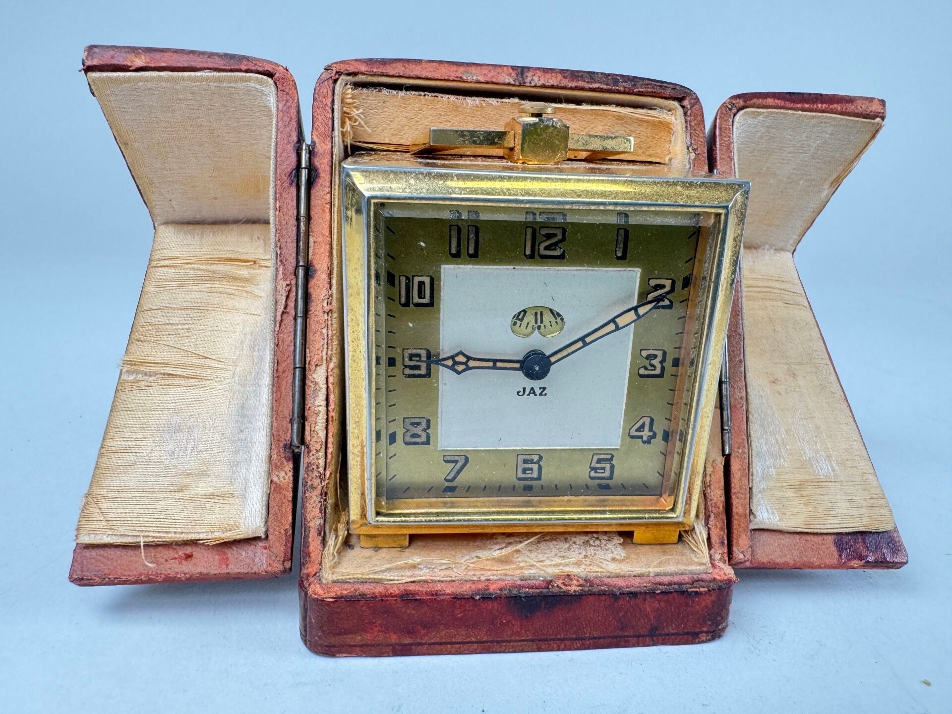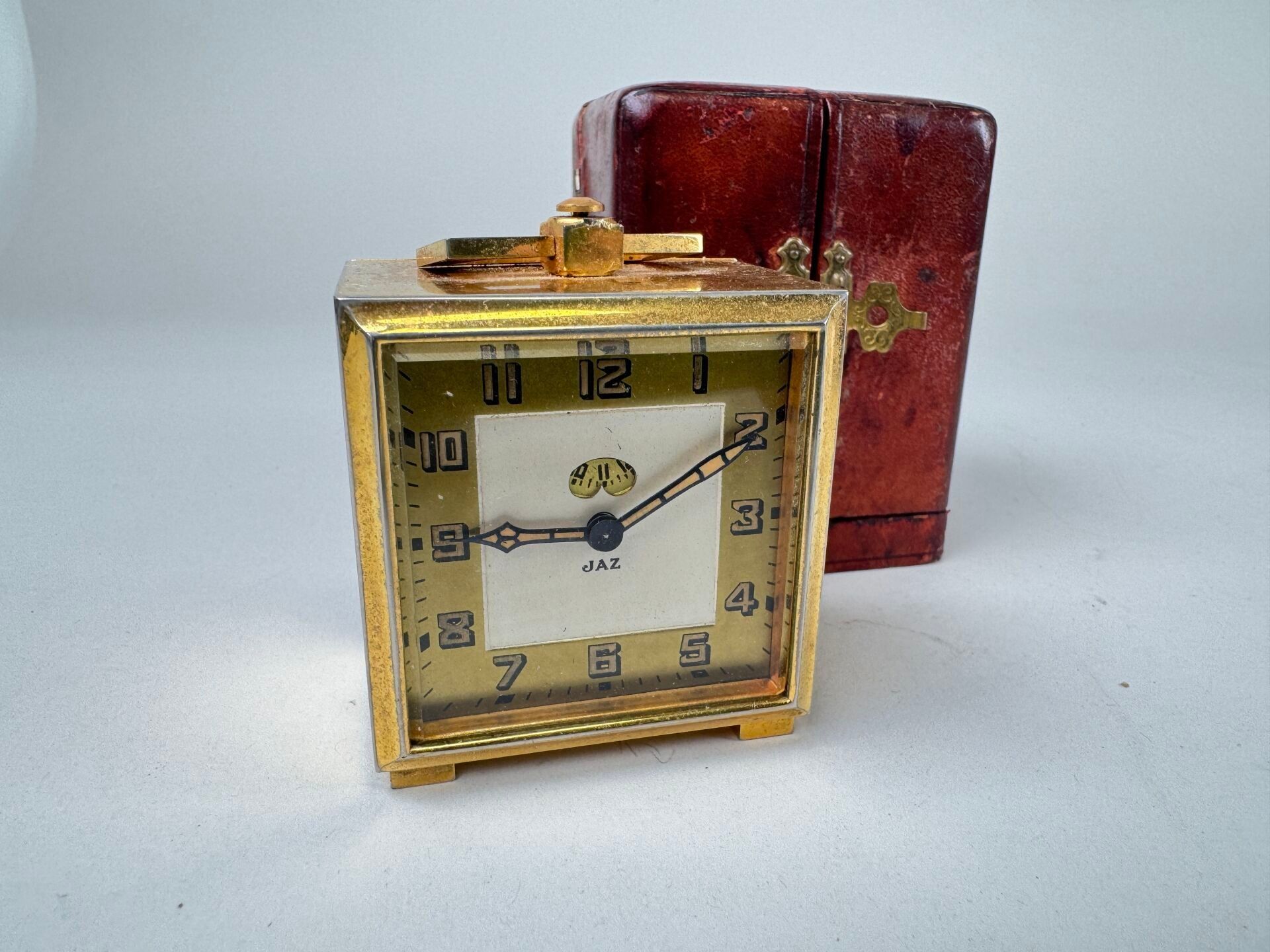 JAZ. Small clock or alarm clock in brass and bevelled glass.