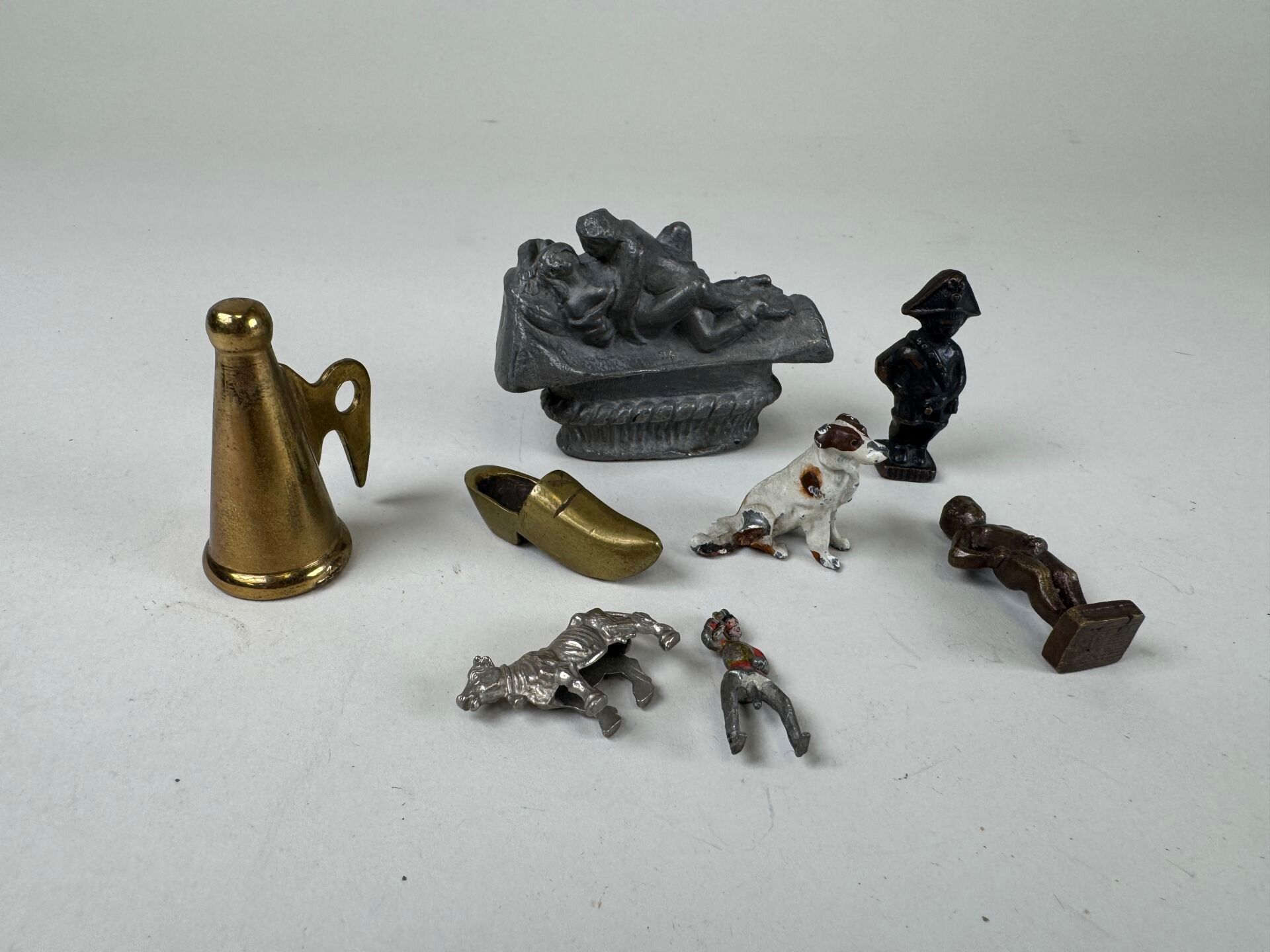 Batch of various objects, various materials of which extinguisher, erotic subject, small bronze dog of Vienna.