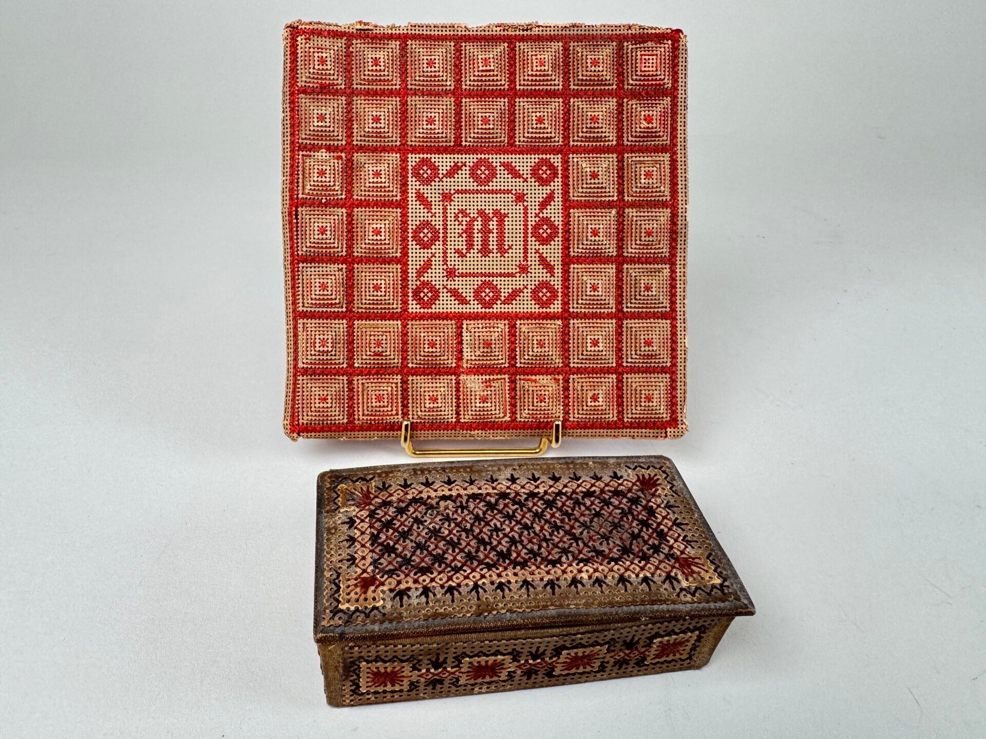 Small rectangular box and square plate (13.5 x 13.5 cm).
