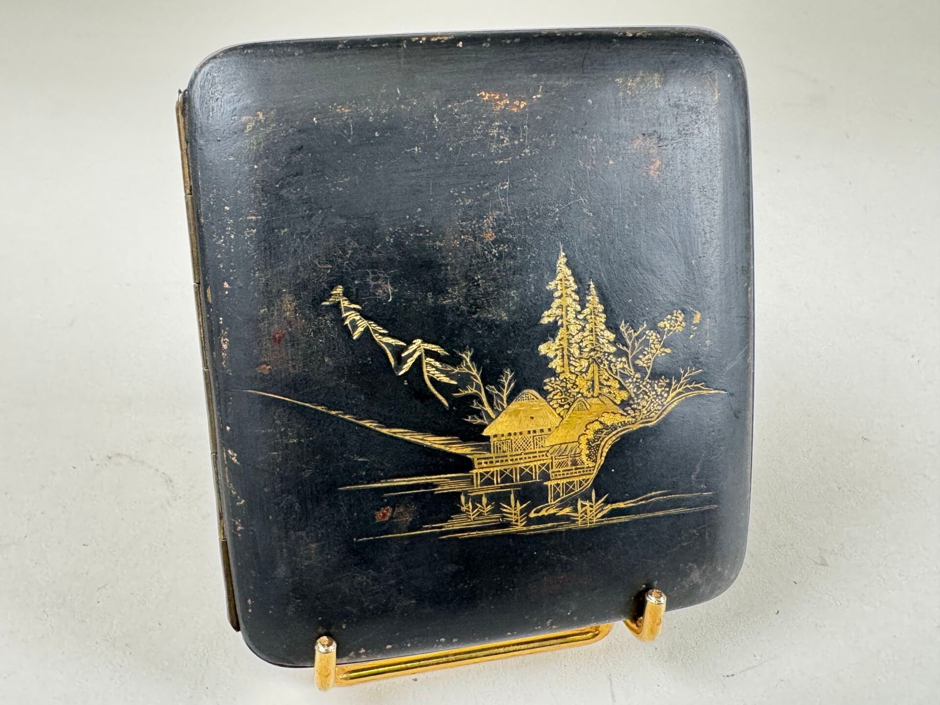 Black and gold patina shakudo cigarette case decorated with …