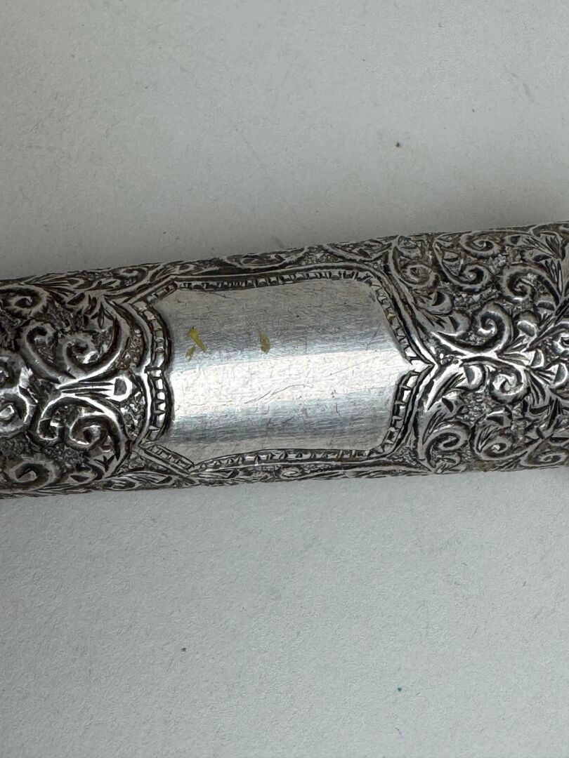 Chased silver cane knob, probably Freemasonic (?), decorated…