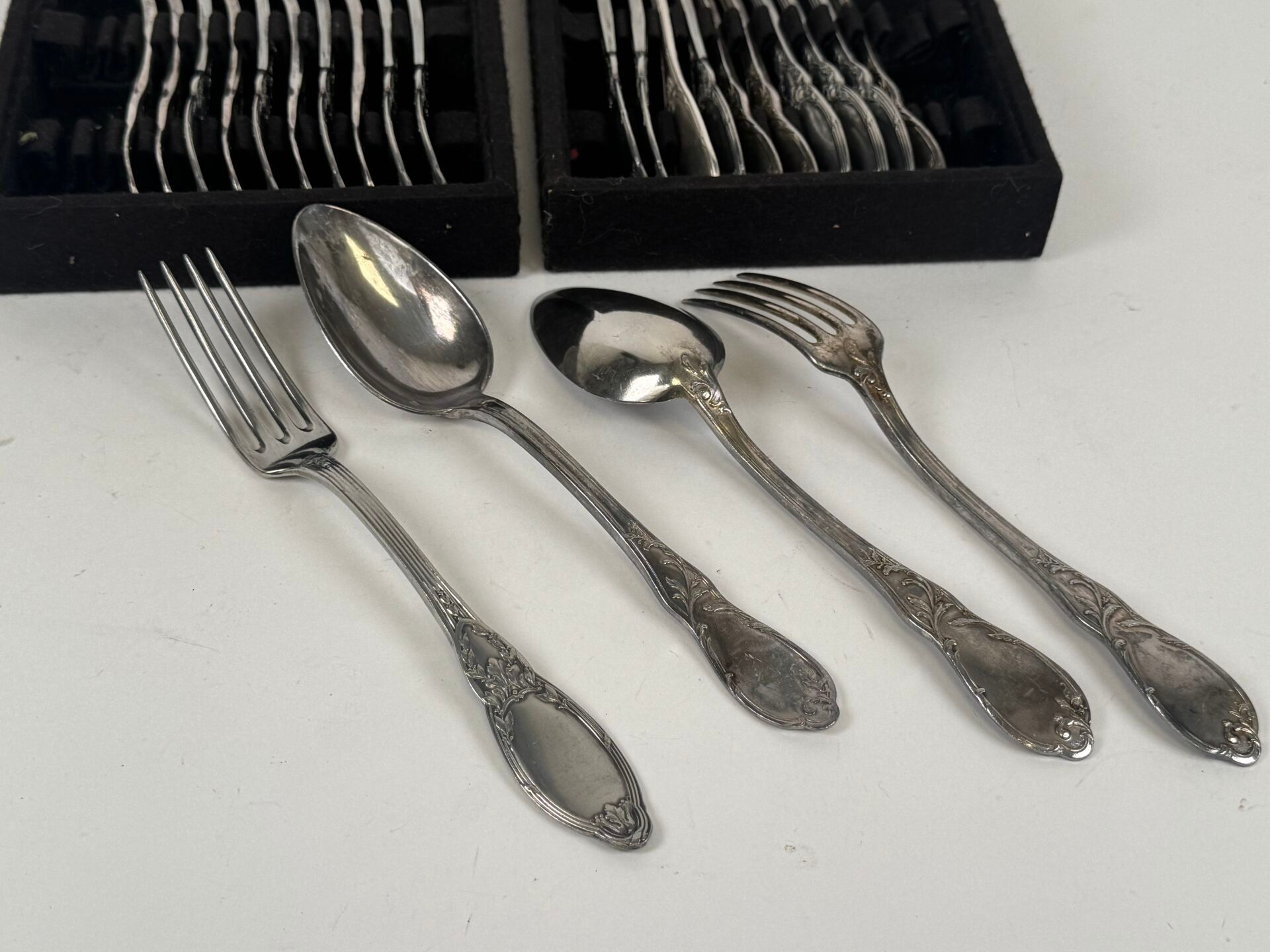 Set of 12 Rocaille-style silver-plated flatware.