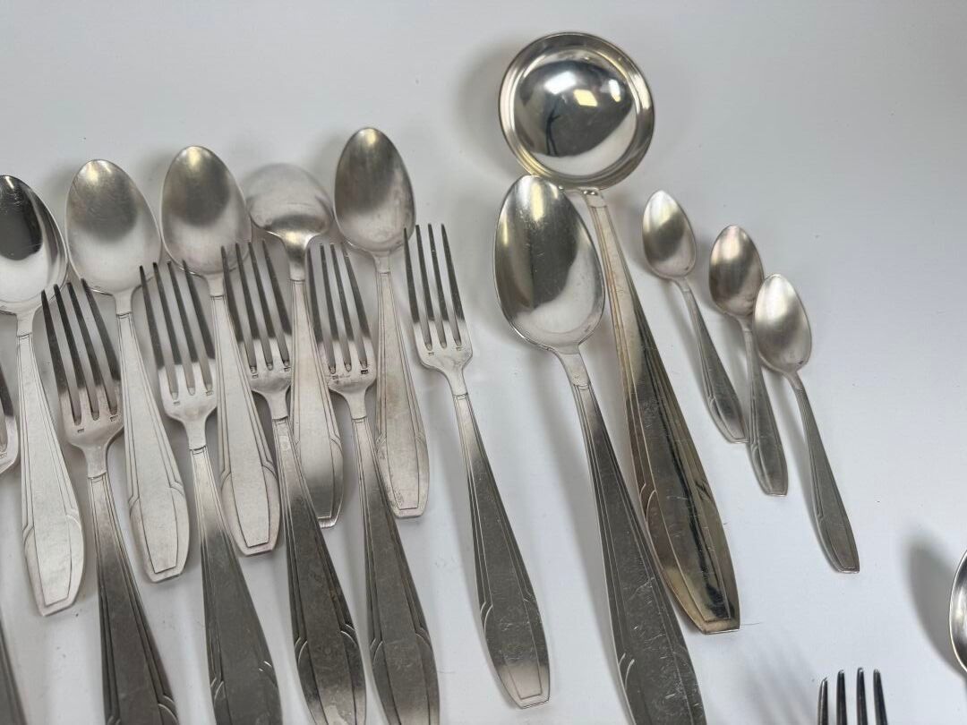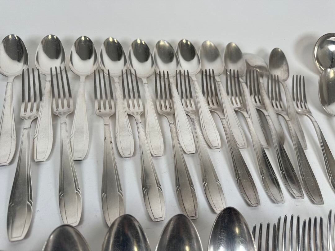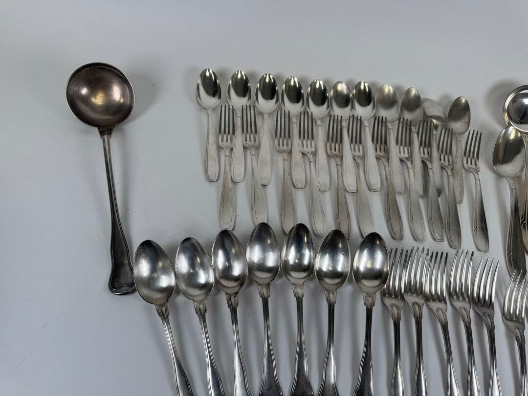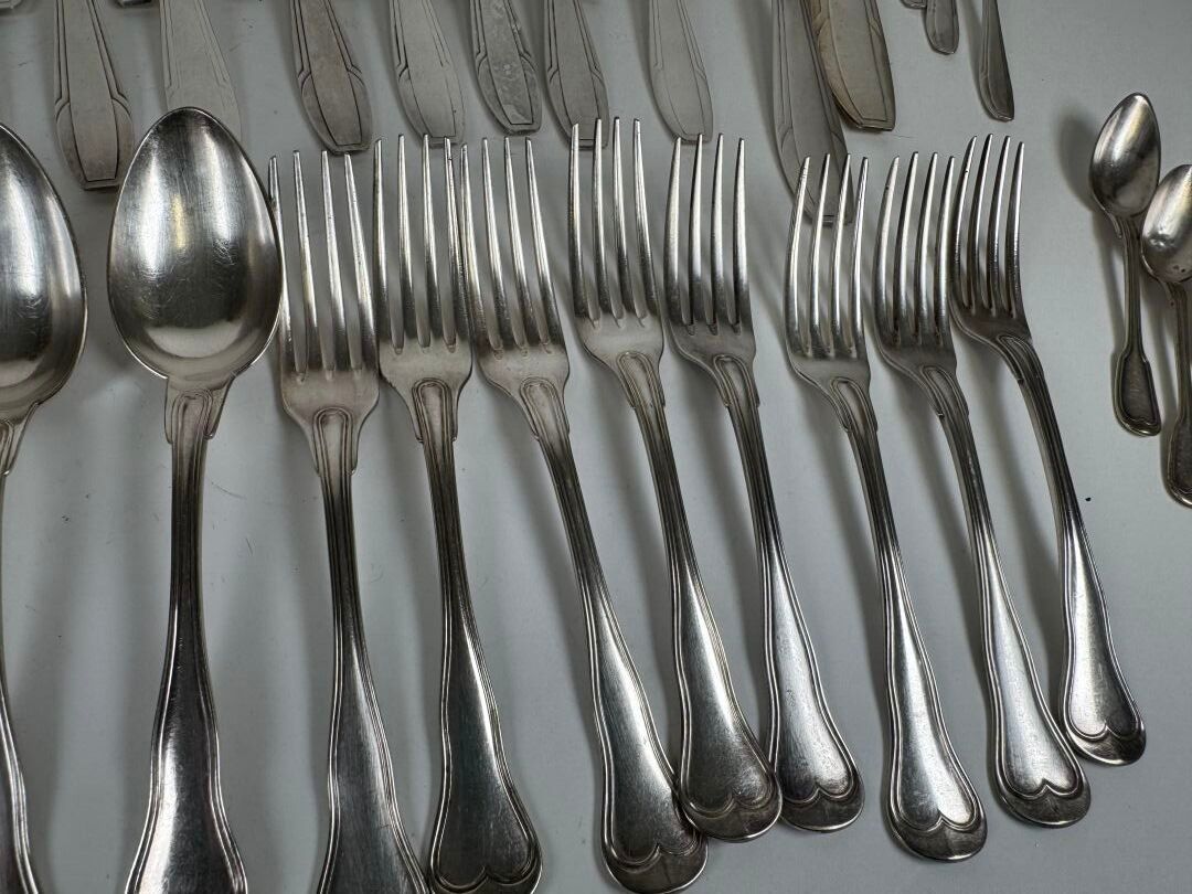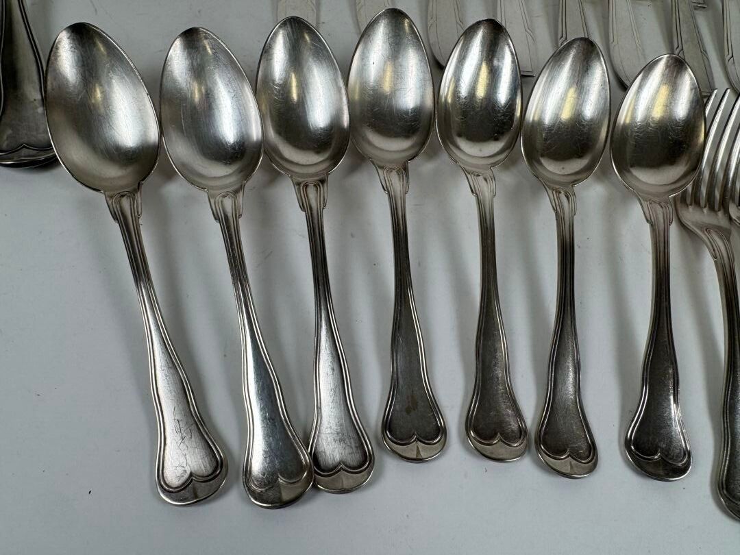 Two sets of silver-plated cutlery, one of which is decorated with CHRISTOFLE fillets, including tableware, teaspoons and ladles.