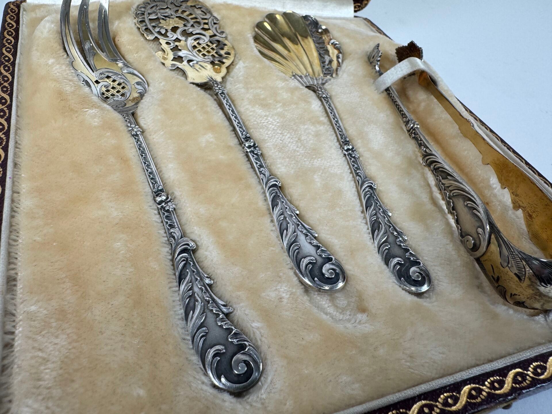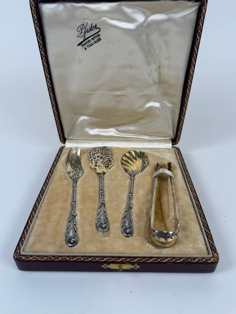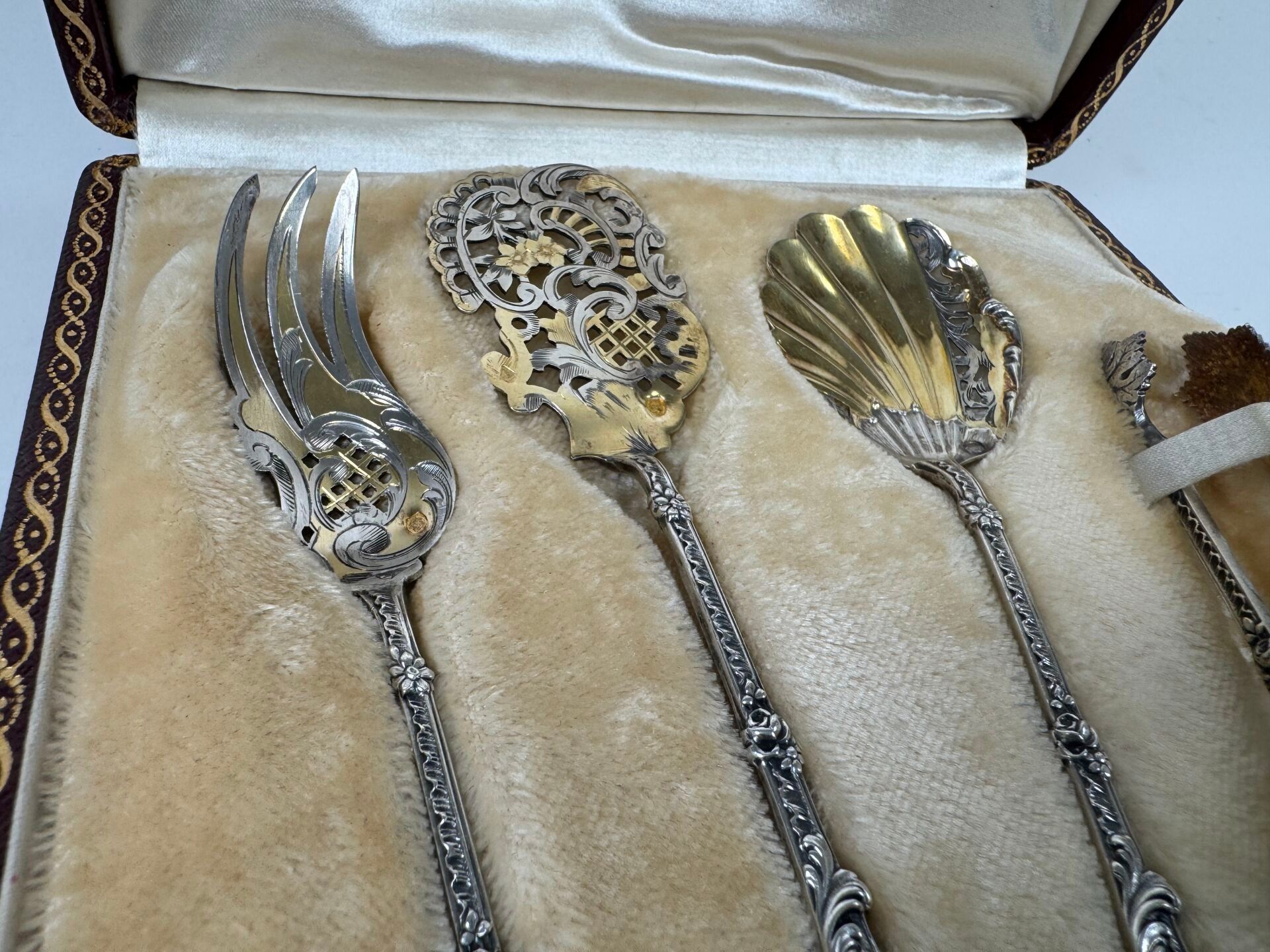 A silver and vermeil mignardise service with rocailles decoration comprising four pieces.