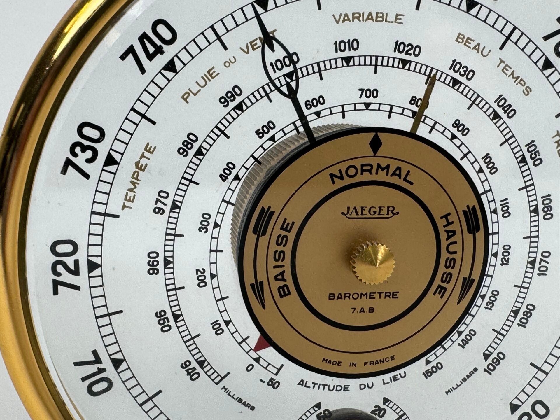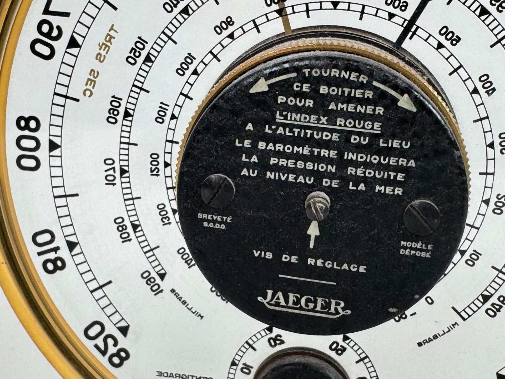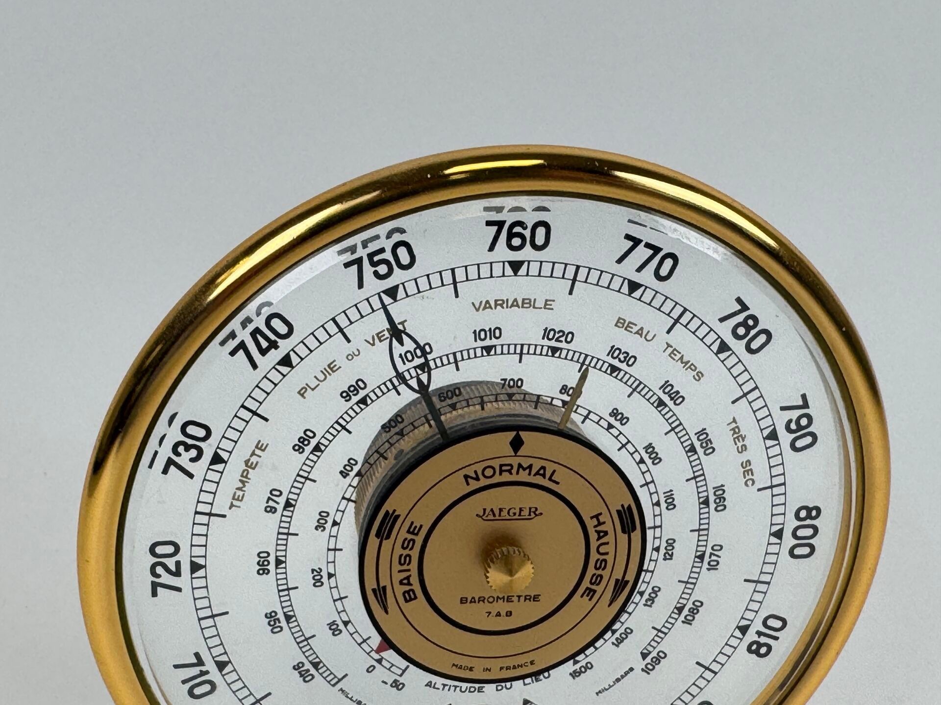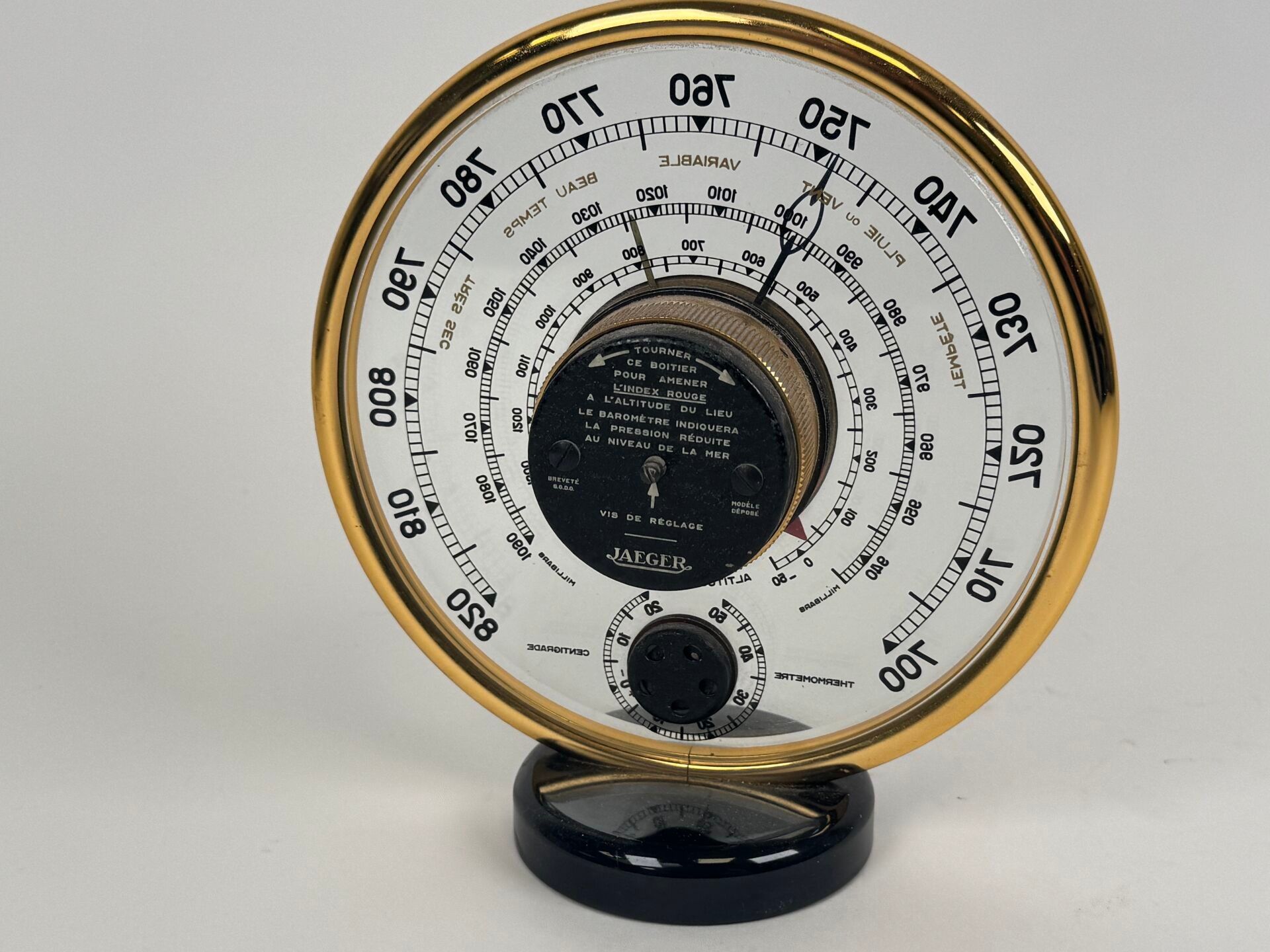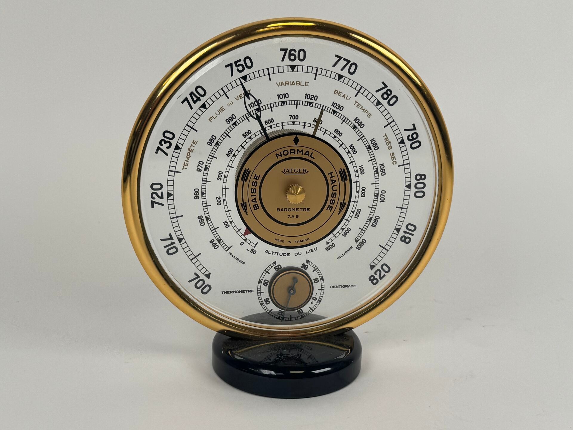 JAEGER. Barometer-thermometer in glass and gilt metal, circu…