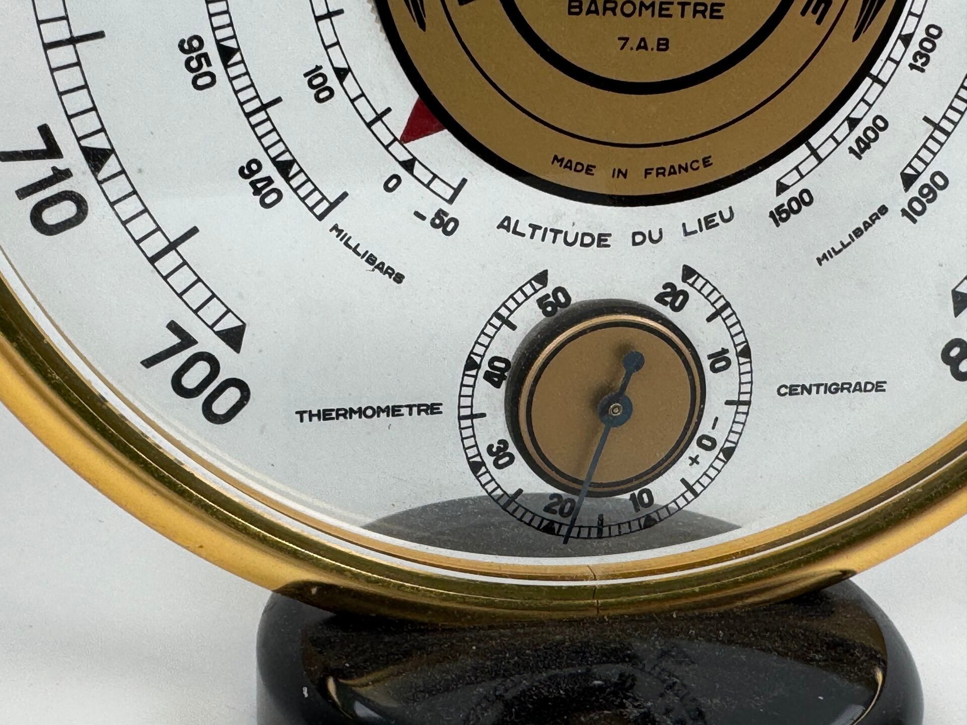 Barometer-thermometer in glass and gilt metal, circular dial.