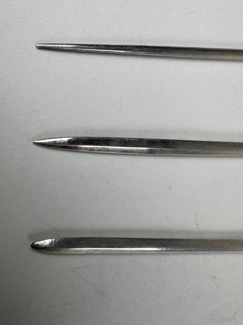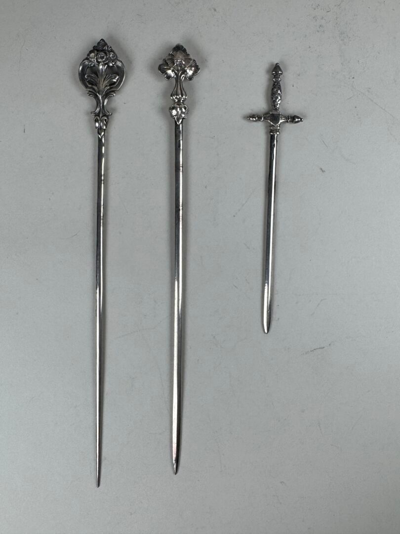 CHRISTOFLE. Three silver plated picks decorated with foliage…