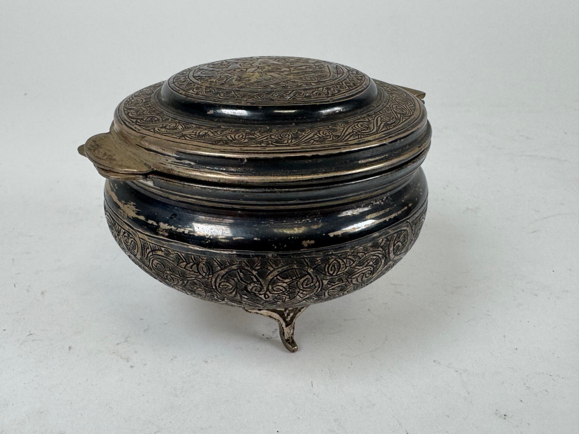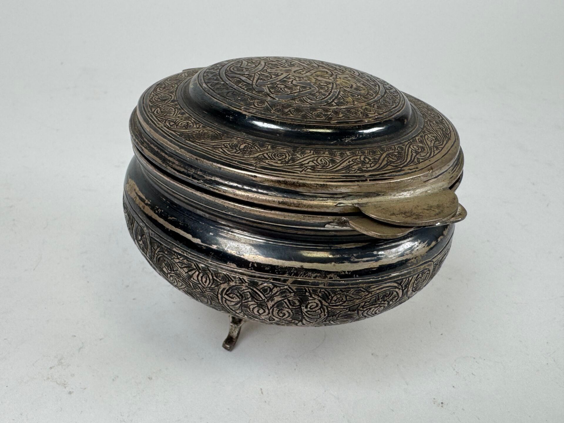 Bonbonnière on tripod legs in silver 900/1000 with chased de…