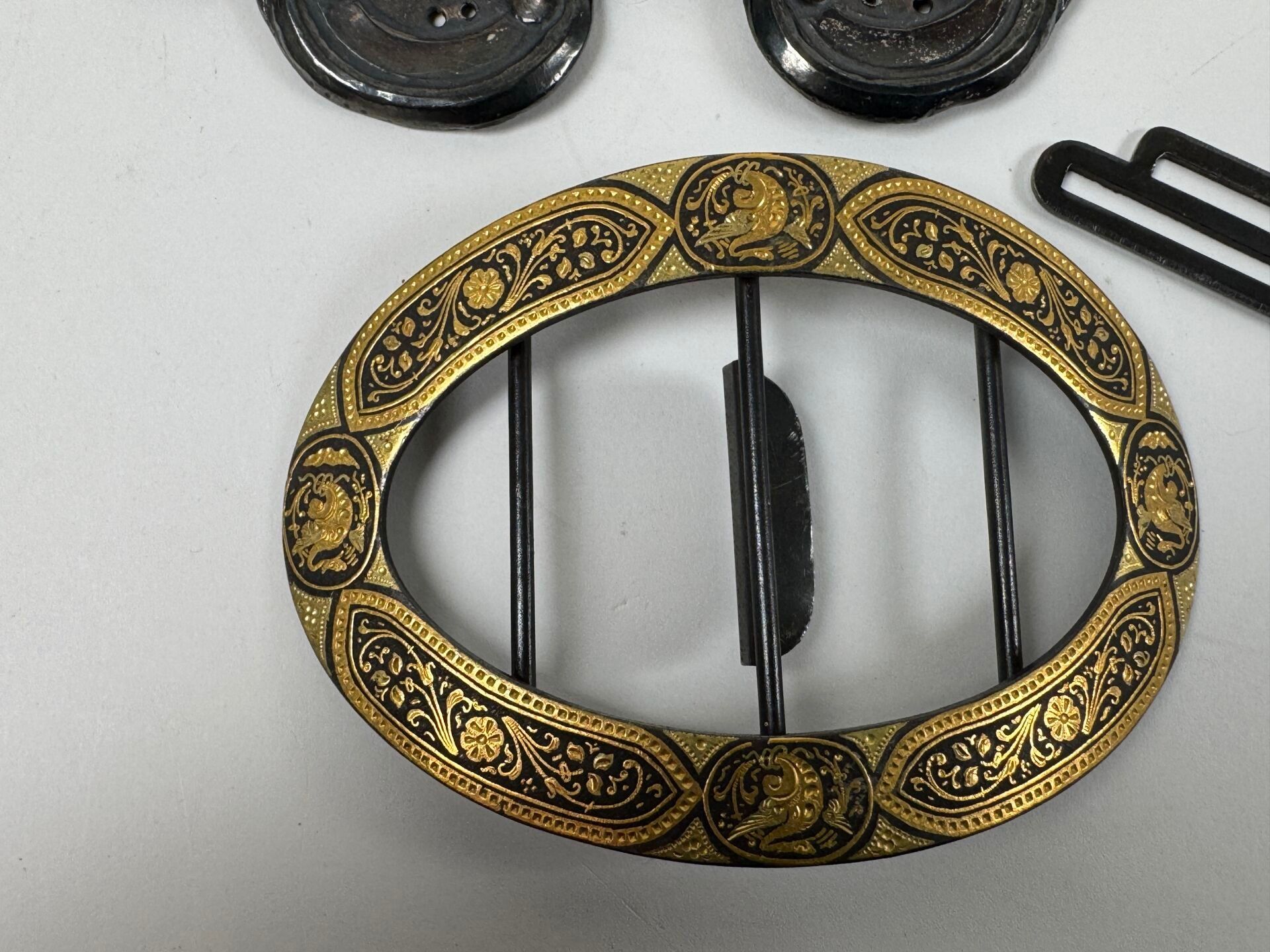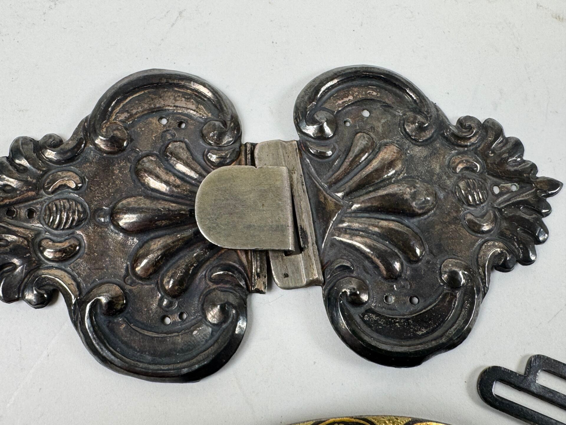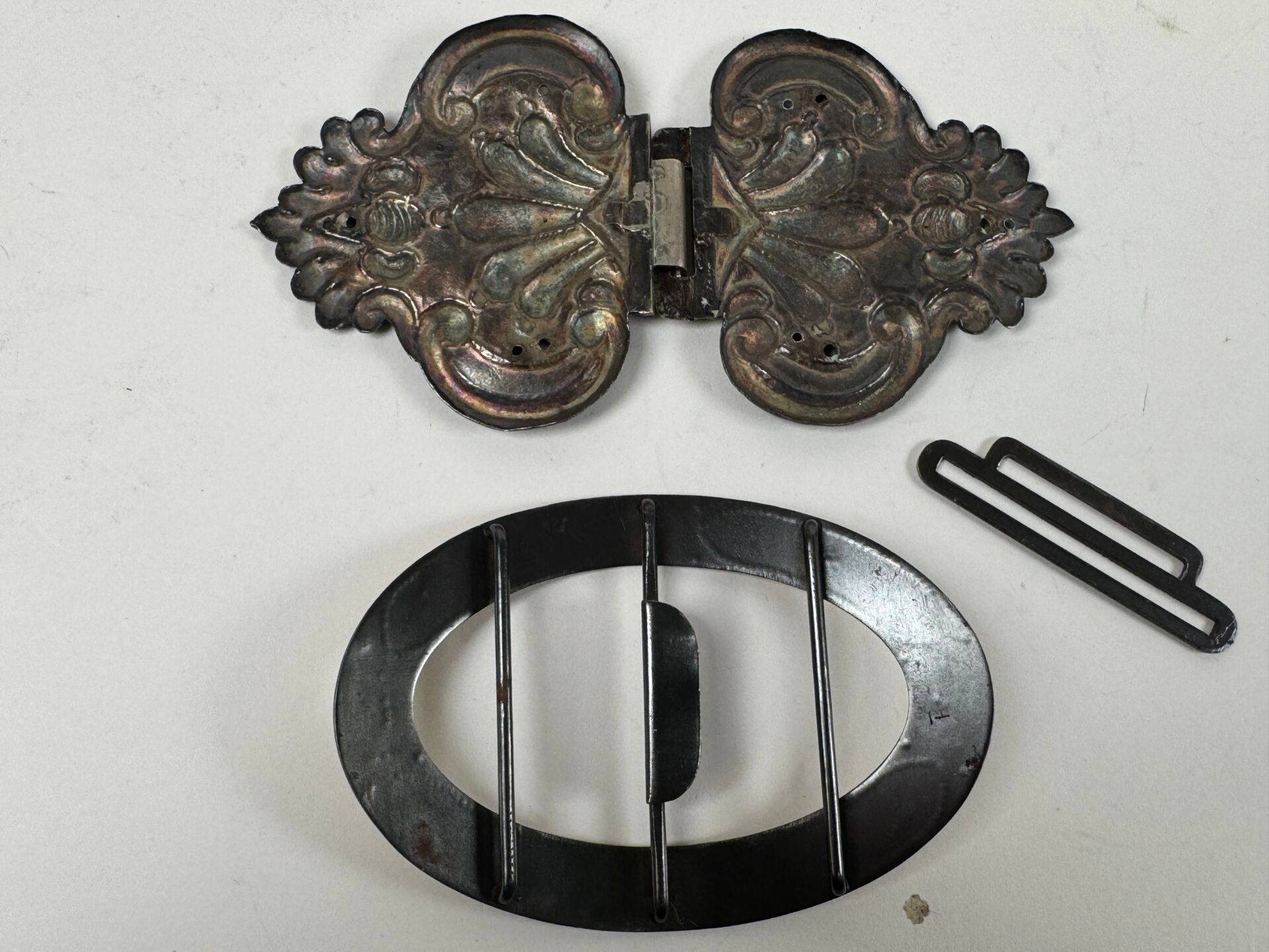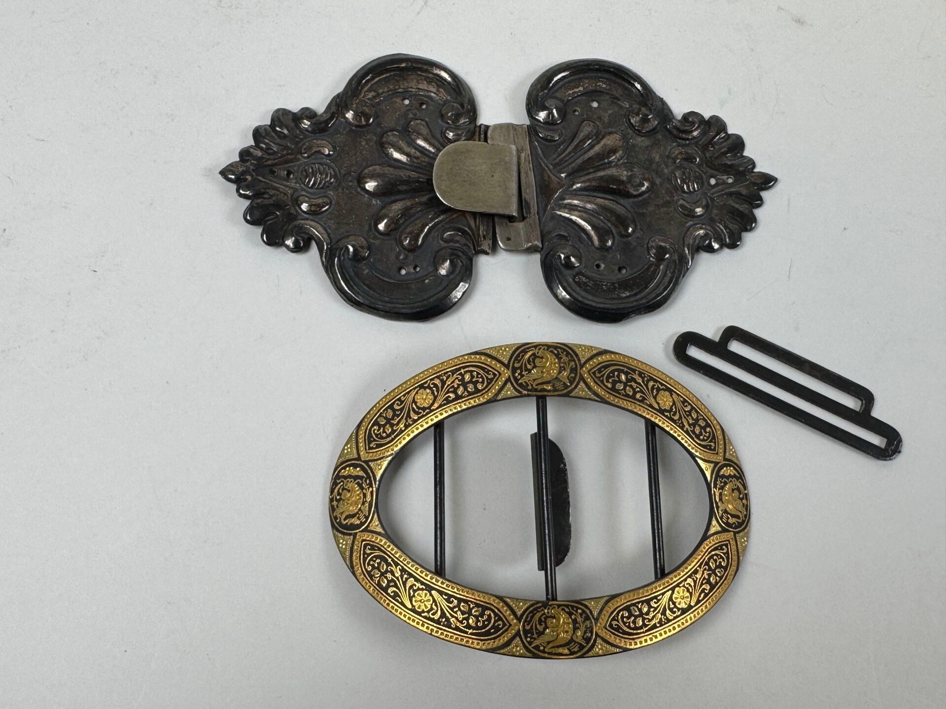 Cloak buckle and shoe buckle, one probably in silver with st…