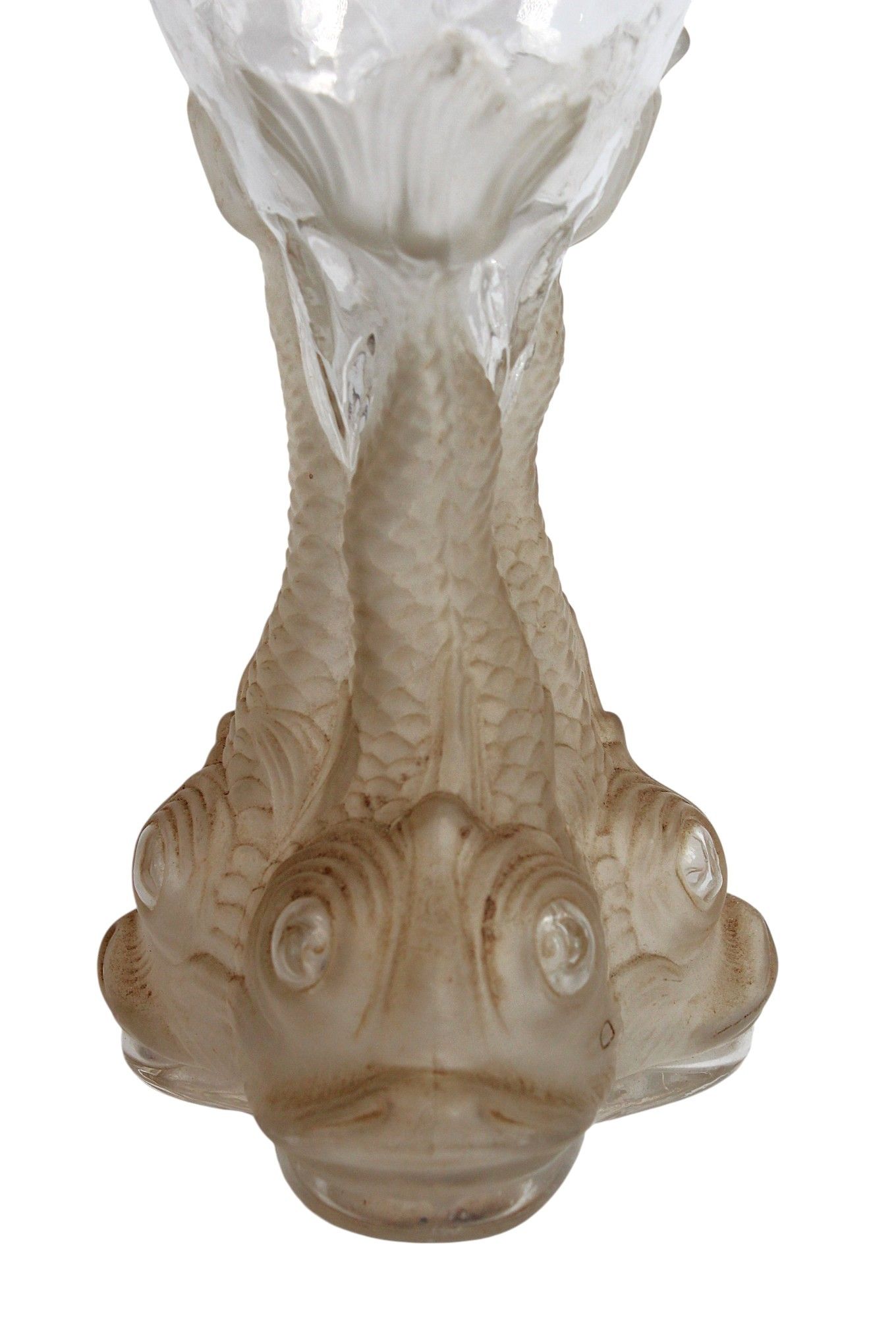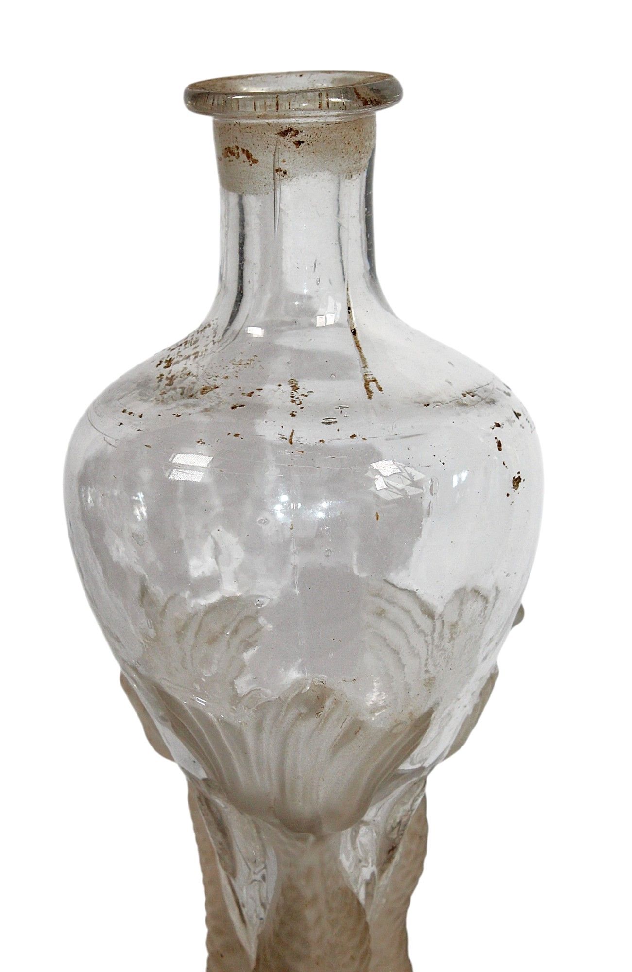 LEGRAS, Saint Denis glassworks, late 19th century, early 20th century, attributed to - A blown, moulded and partially frosted glass BOTTLE featuring three sea monsters, 26 cm high. No stopper.