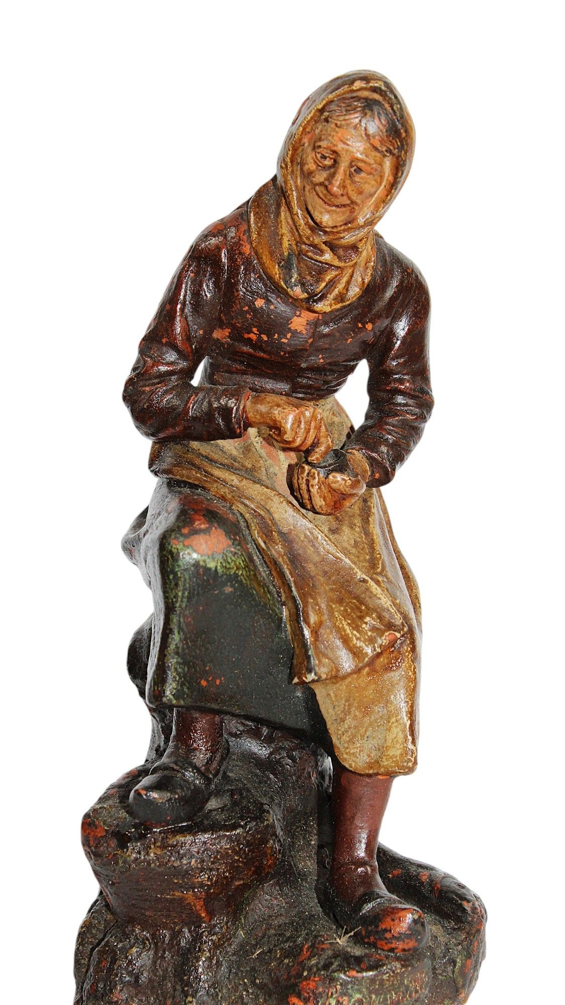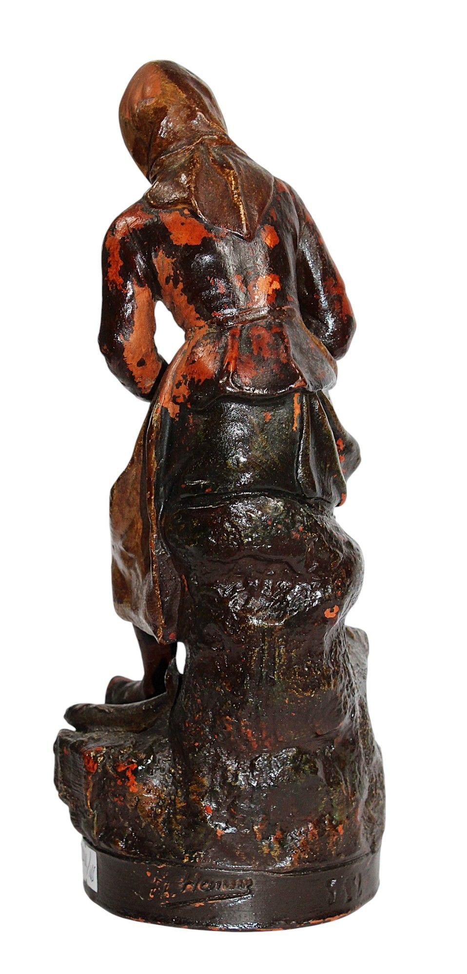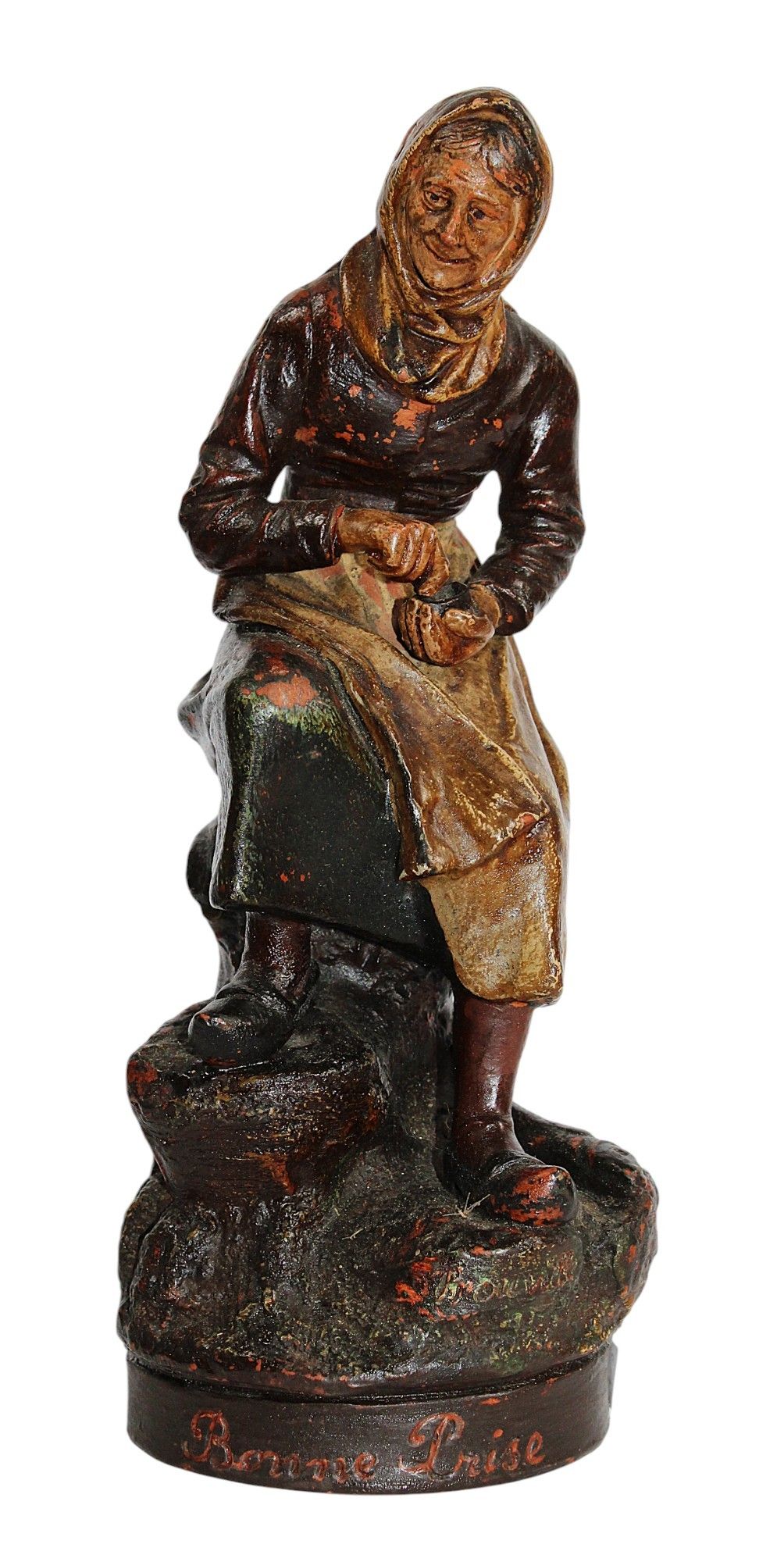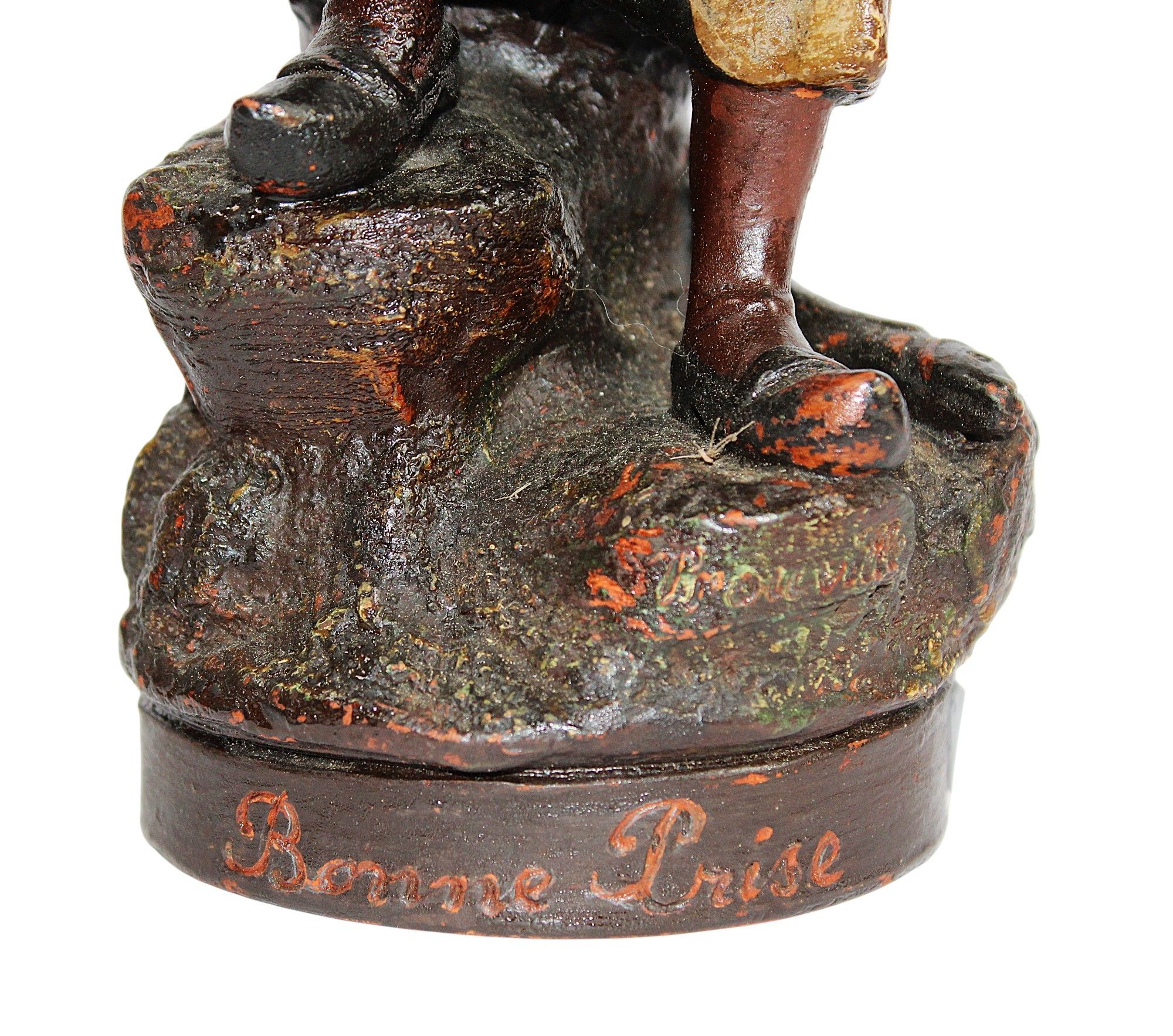 Alfonse Louis HANNE (c.1890-1908), l'Isle Adam, "Bonne prise", polychrome terracotta subject, souvenir of the seaside "trouville",