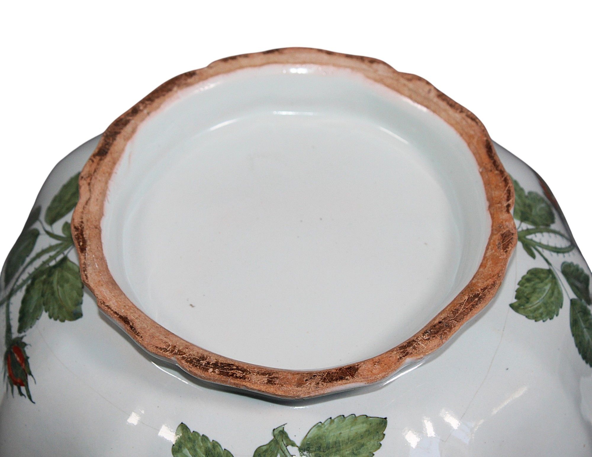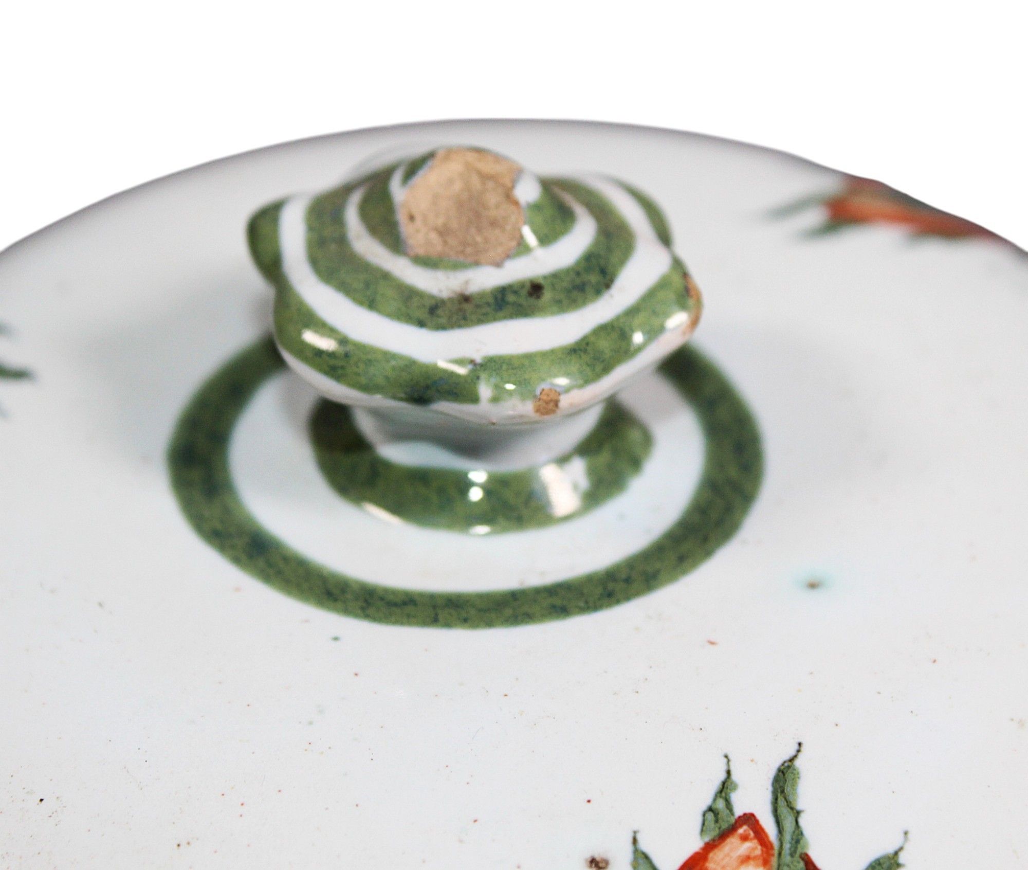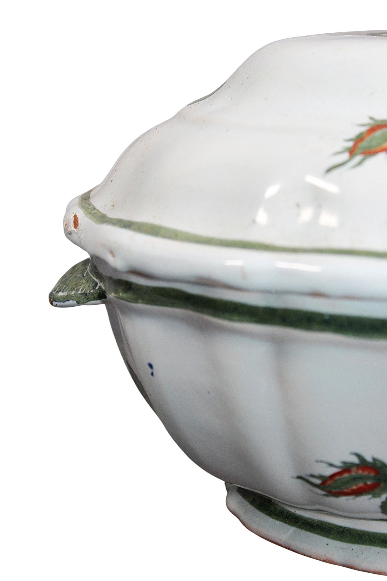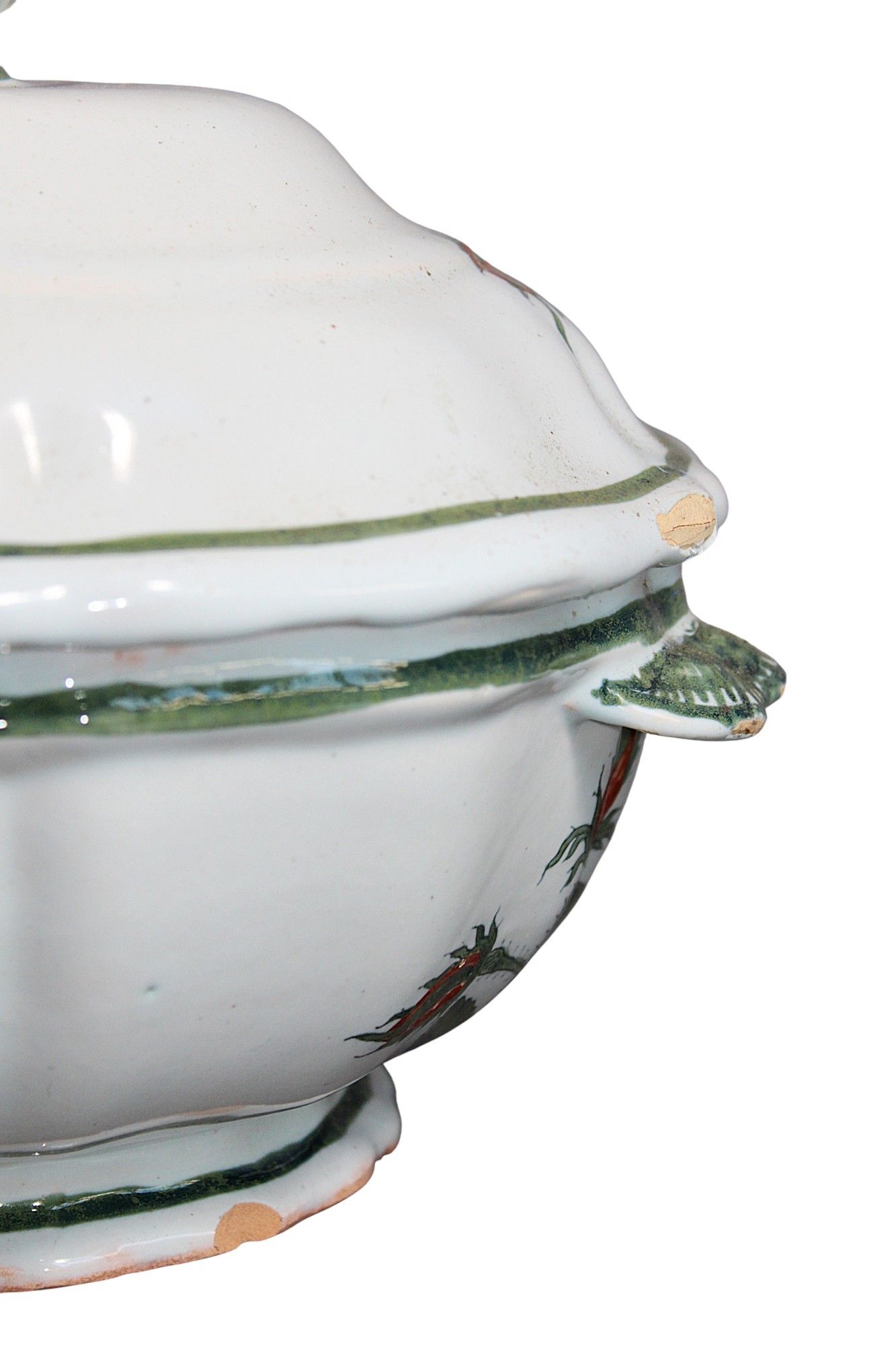 Probably SOUTH WEST 18th C. - Earthenware TERRINE or soup tureen with mossy rose decoration, height: 20 cm, diameter: 24 cm. Firing defects and a few small chips from use.