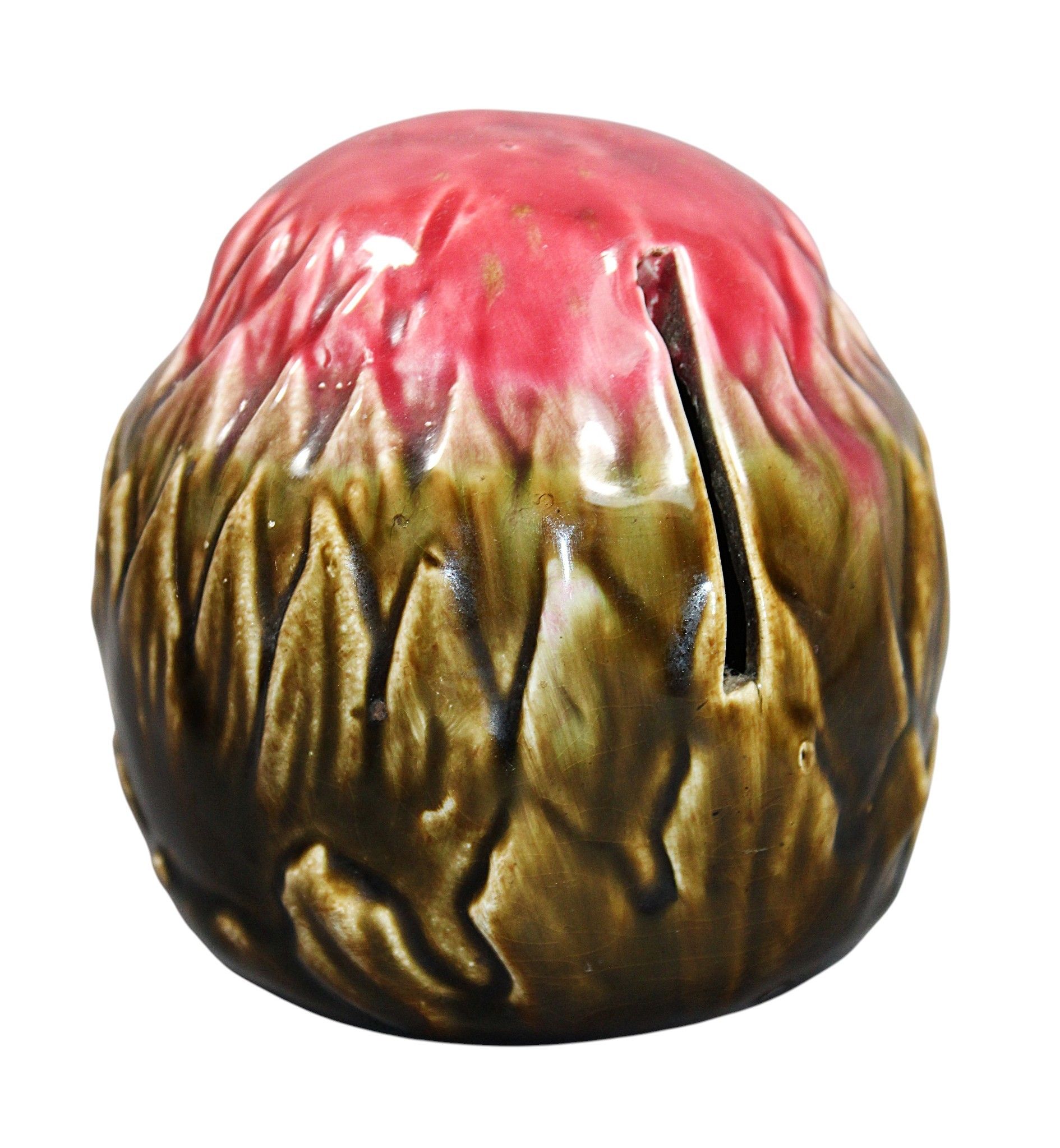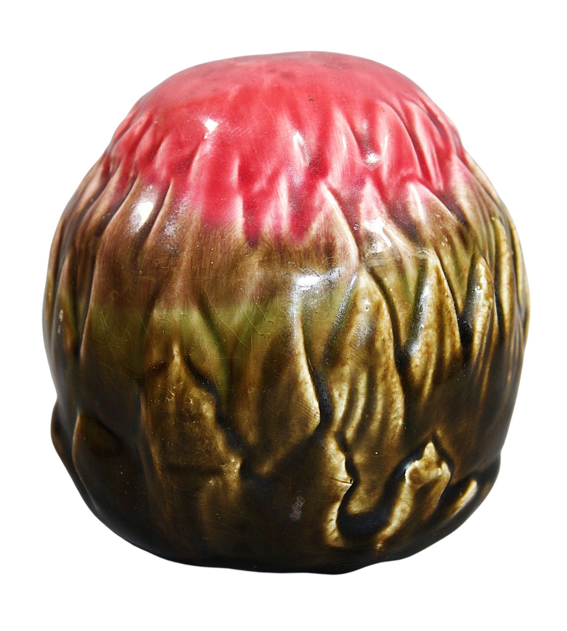 An artichoke-head-shaped slipware teapot, early 20th century, height: 9.5 cm.