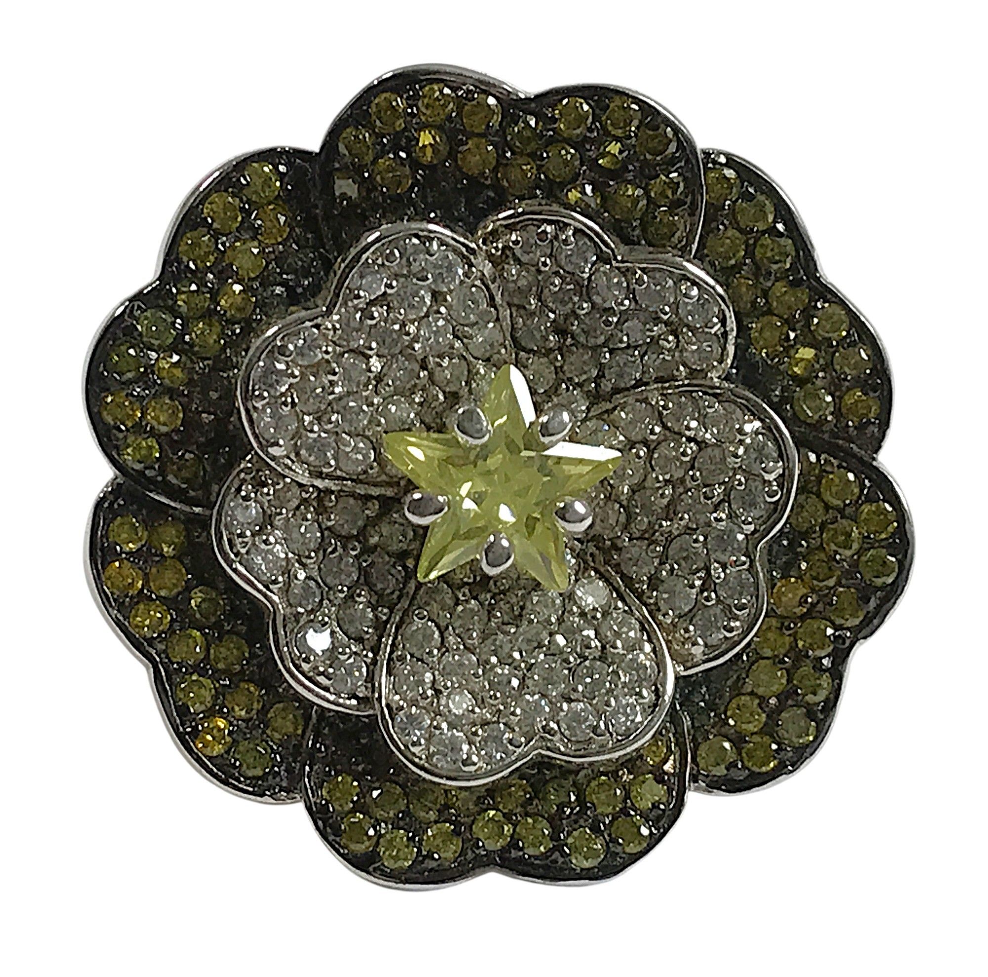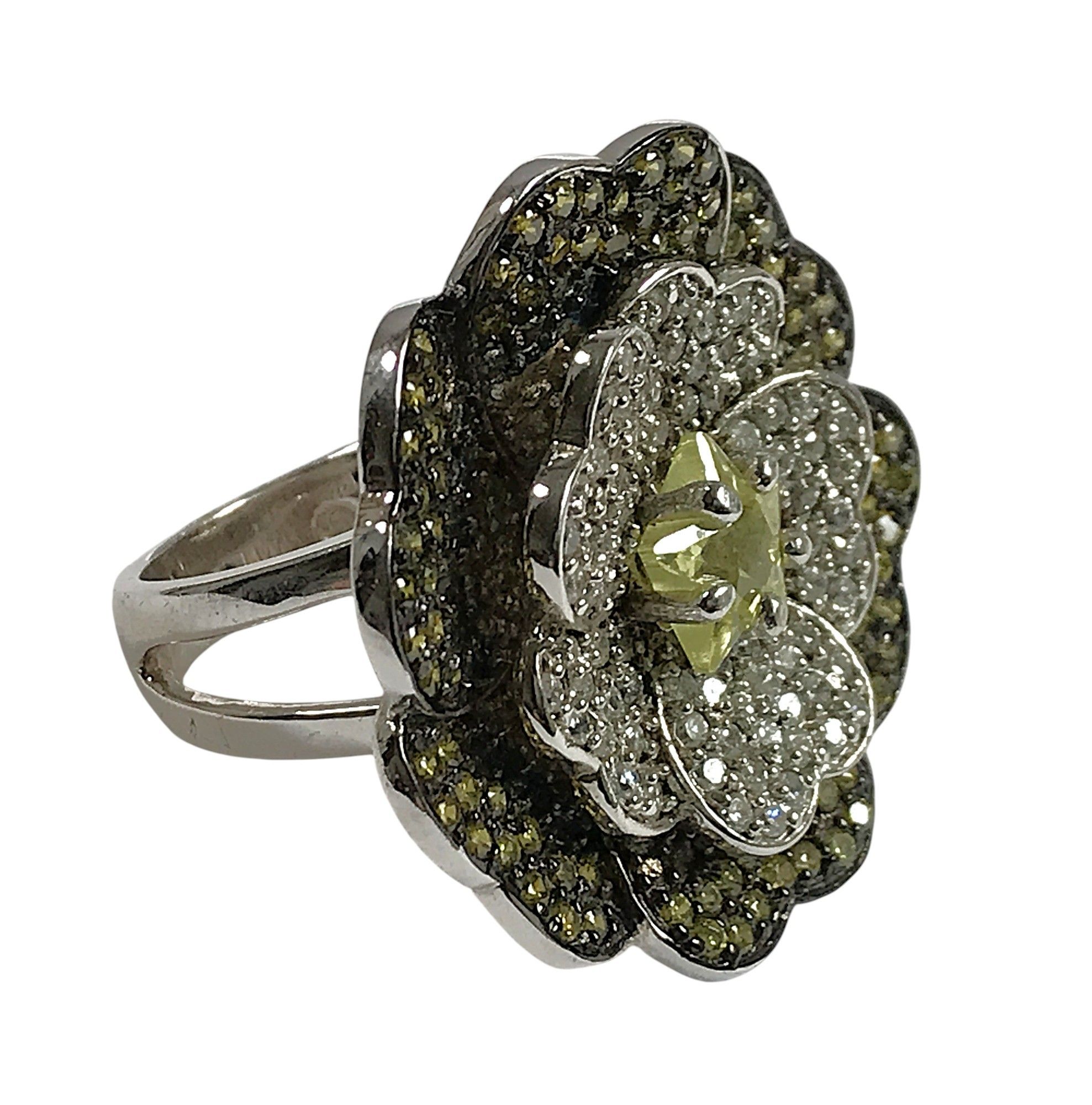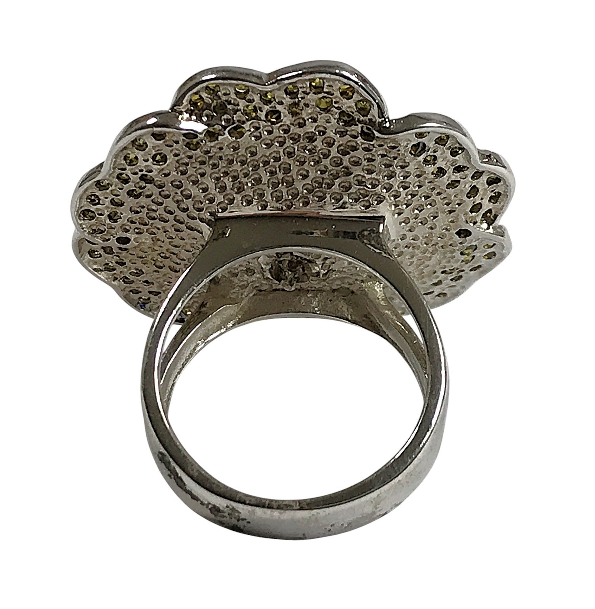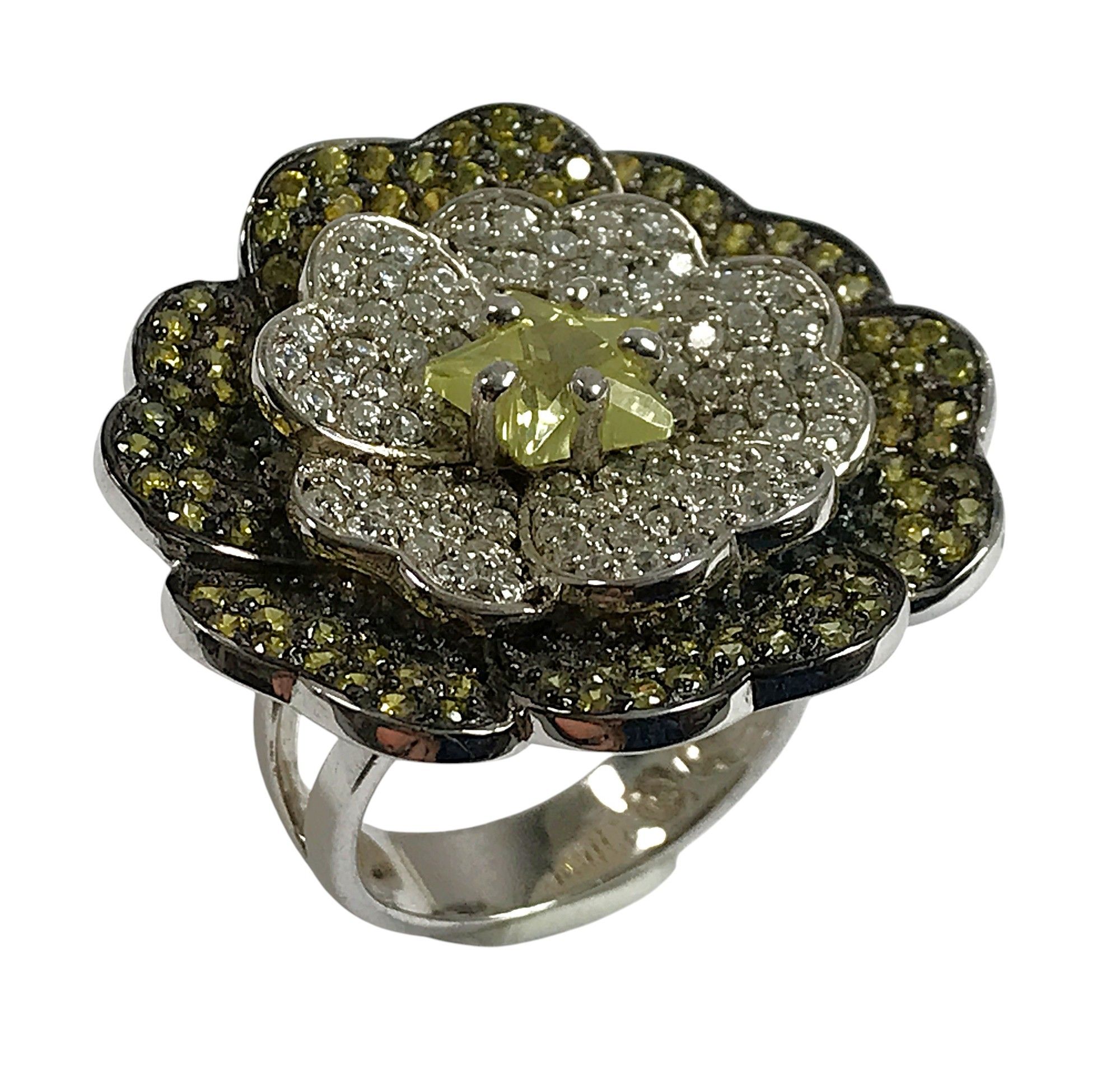 925/1000 silver "flower" ring, petals set with crystals, siz…