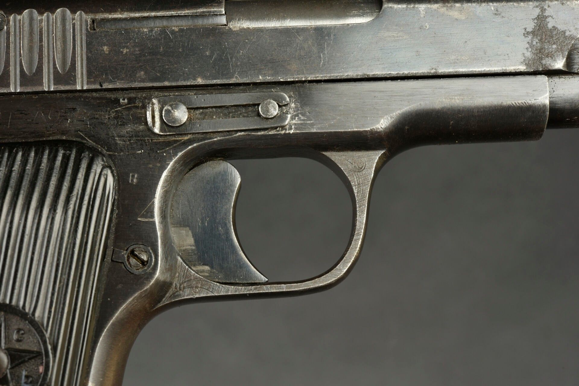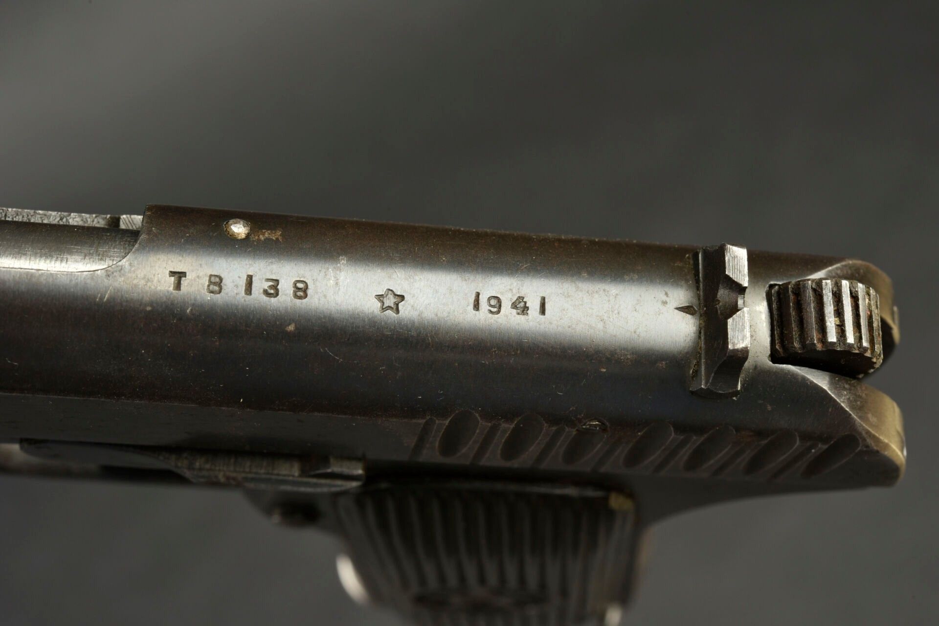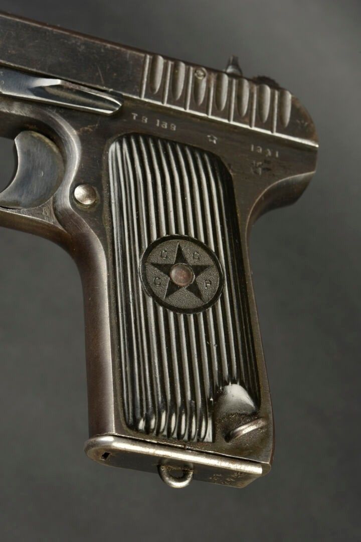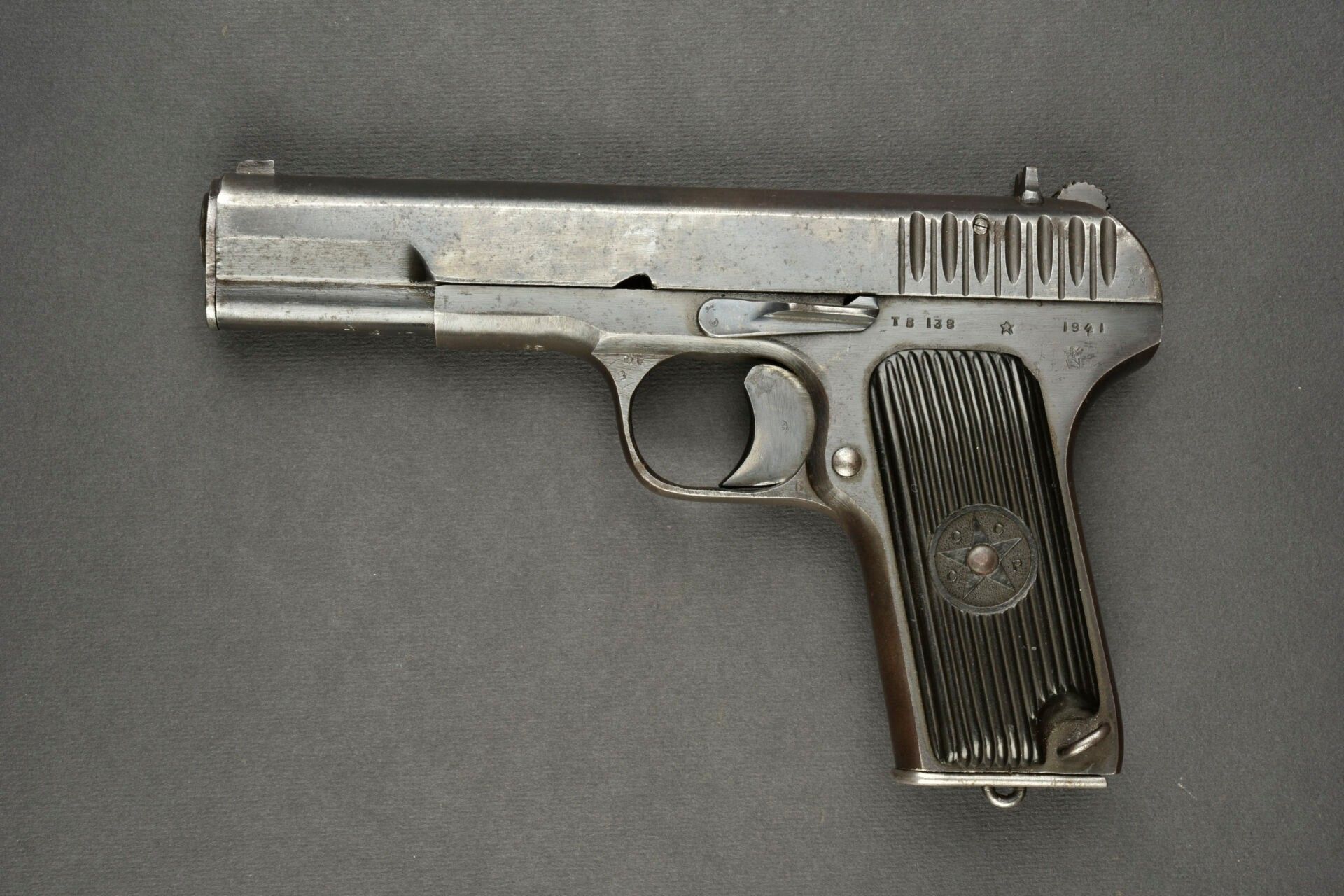 TT33 gun. 80% tanning. Black bakelite cap. Magazine blocked by neutralisation. Breech made mobile by neutralisation +. Dated 1941. TB number 138. Some wear and patina to be noted. Condition II+. 2+ C9 category weapon. Firearms deactivated EU 2017. At the time of purchase, the purchaser must present a valid identity document (CNI or passport) and according to the case, either an original medical certificate of less than 1 month + account SIA-holder, or a copy of both sides of the hunting licence accompanied by validation for the current year or year n-1 and the SIA-holder's account, or the sports shooting licence for the current year (licence + licence certificate downloaded from EDEN-ITAC + the sports shooter's SIA-holder's account). If the billing address is different from that shown on the identity document, proof of address less than 1 month old must be produced. The transaction will not take place until FINIADA has been consulted. The formalities and consultation of this file will be invoiced at €50 per weapon purchased (€25 inc. VAT for a professional buyer).